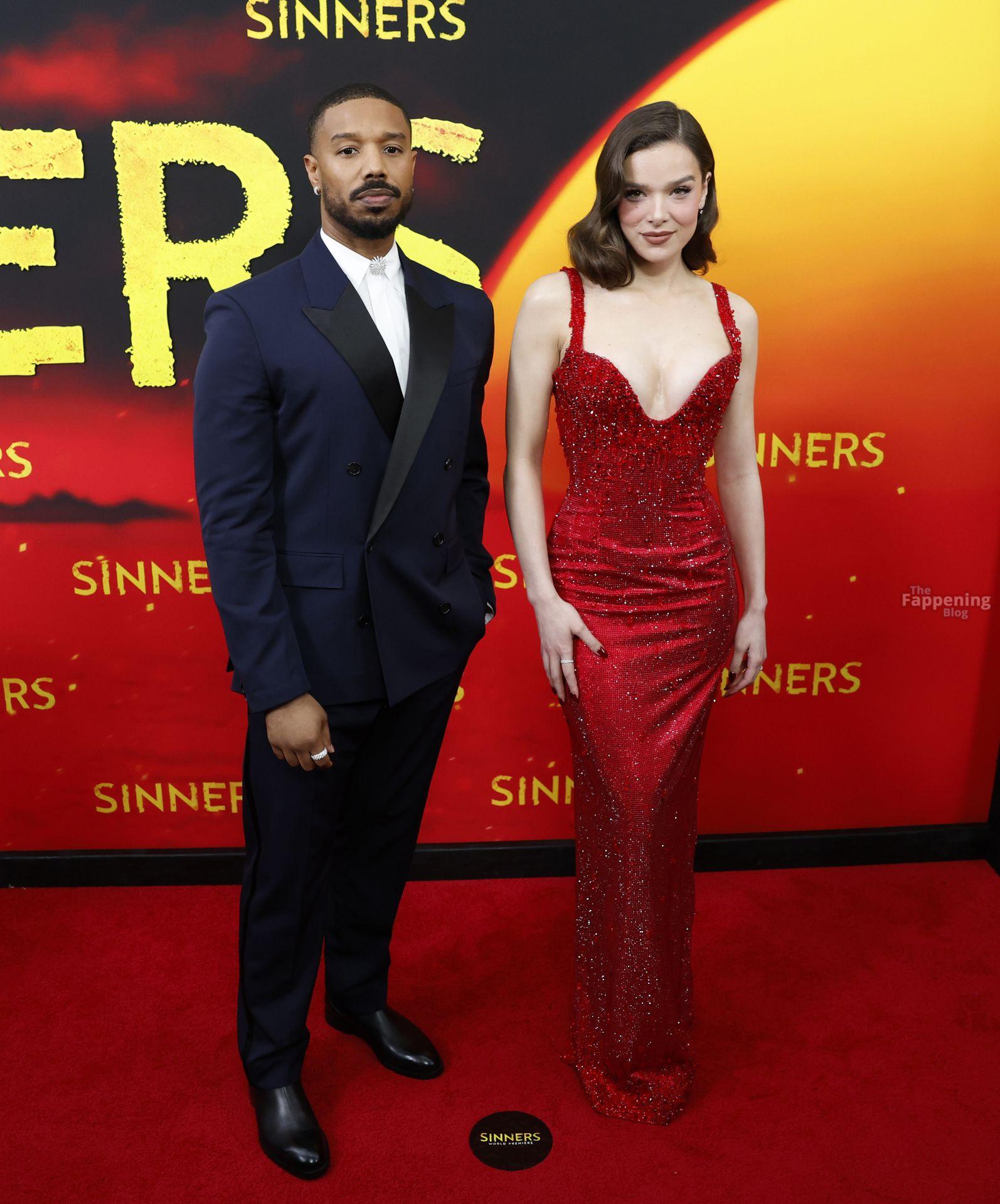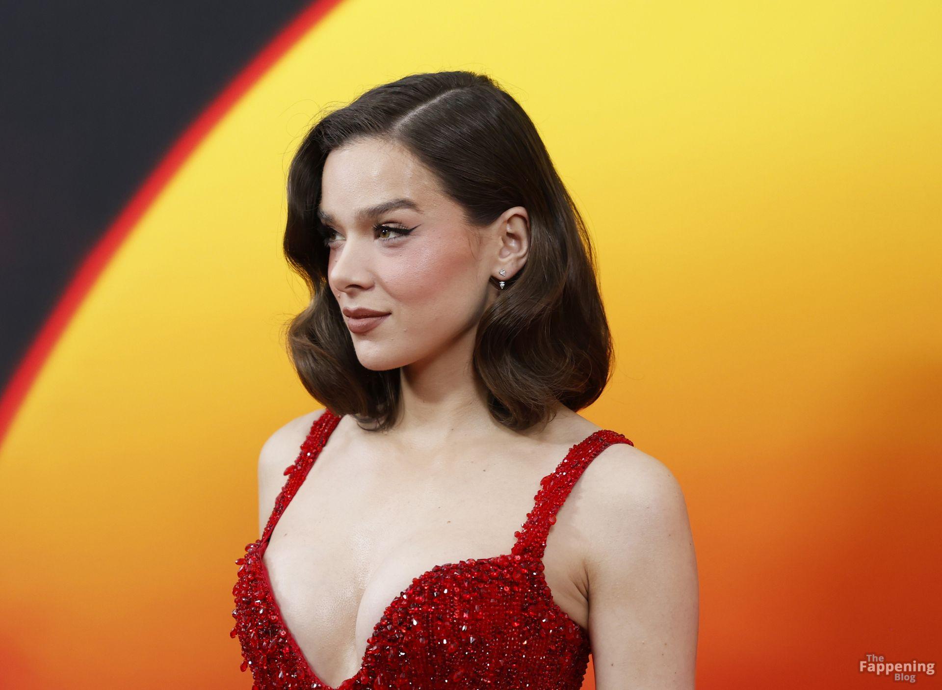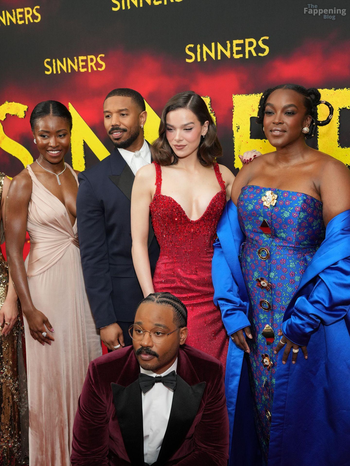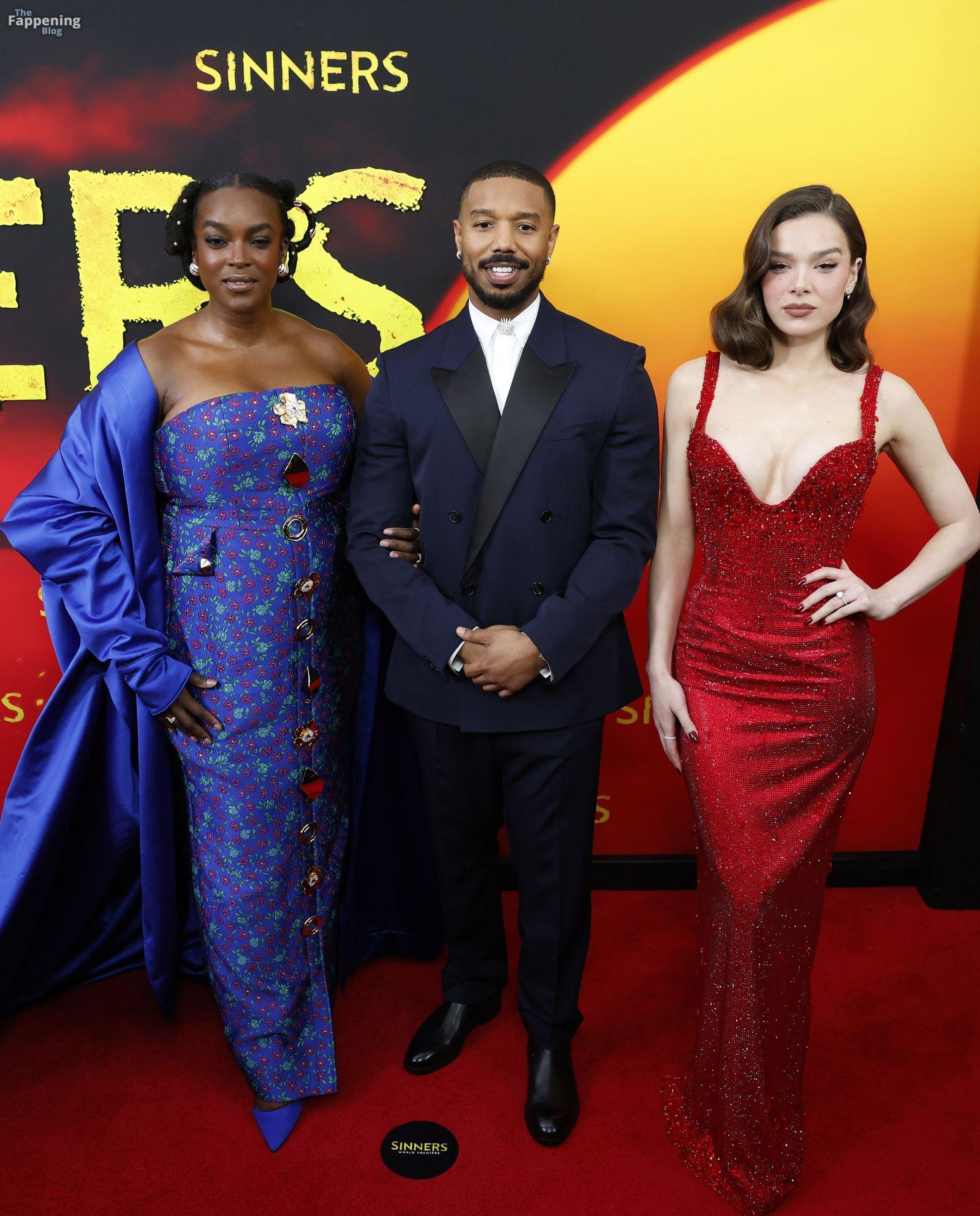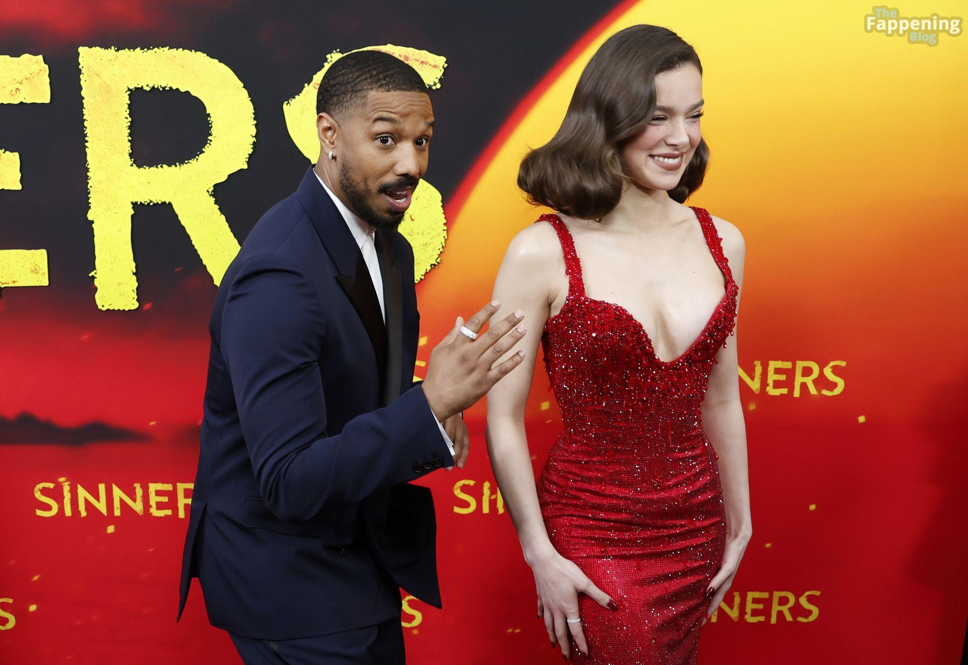 A atriz Hailee Steinfeld exibe seu decote e sua bela silhueta em um vestido vermelho na estreia de “Sinners” em Nova York.