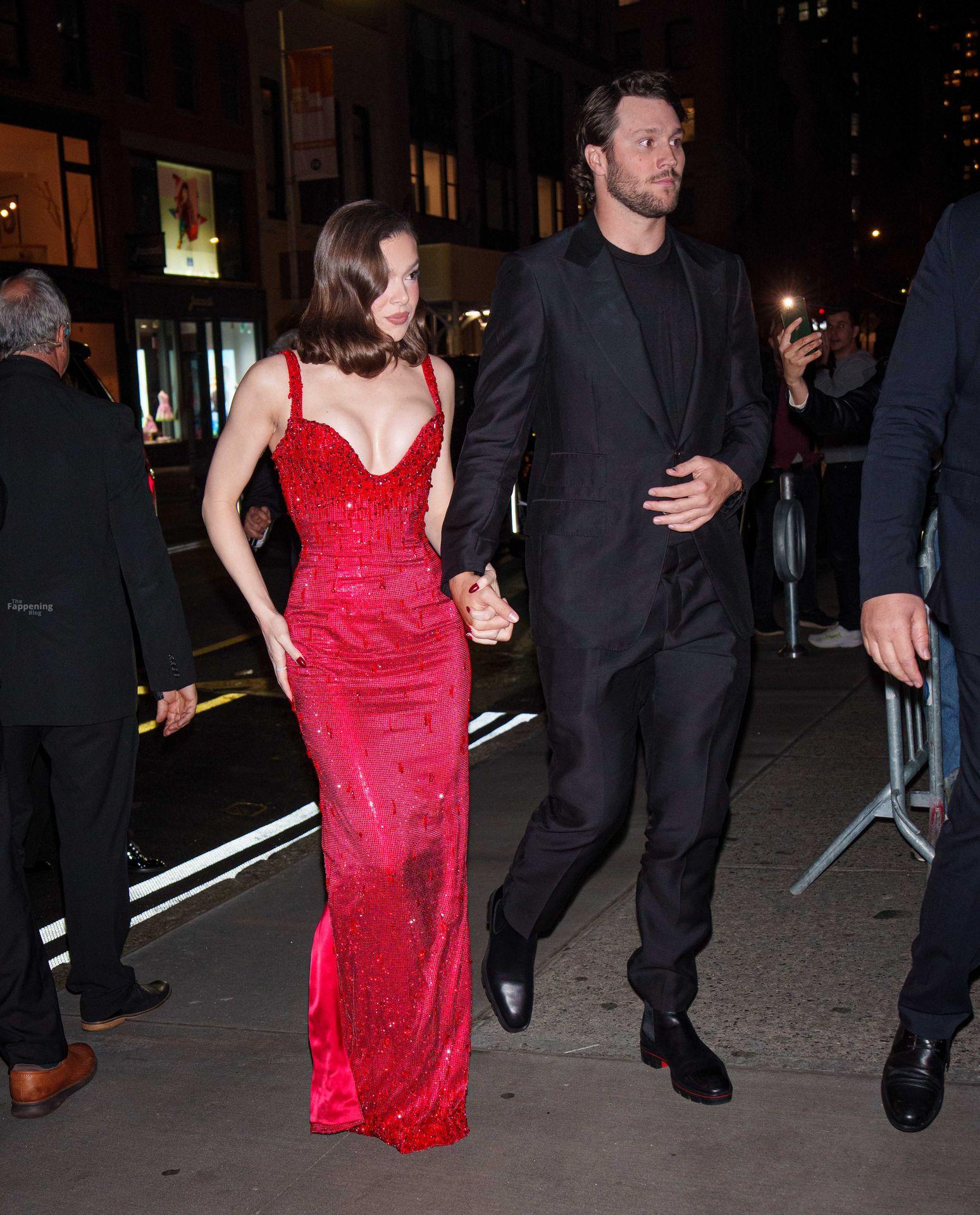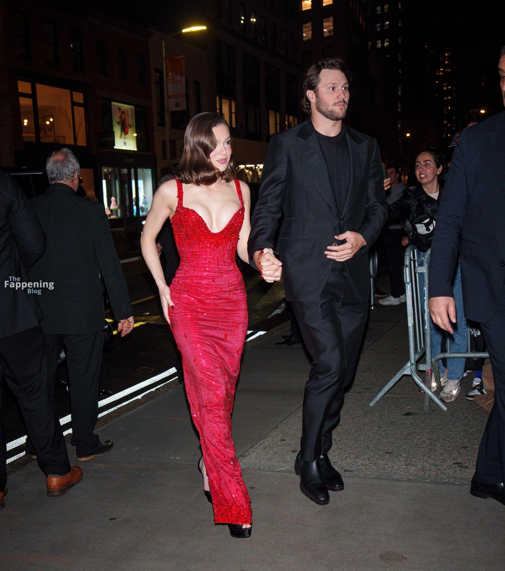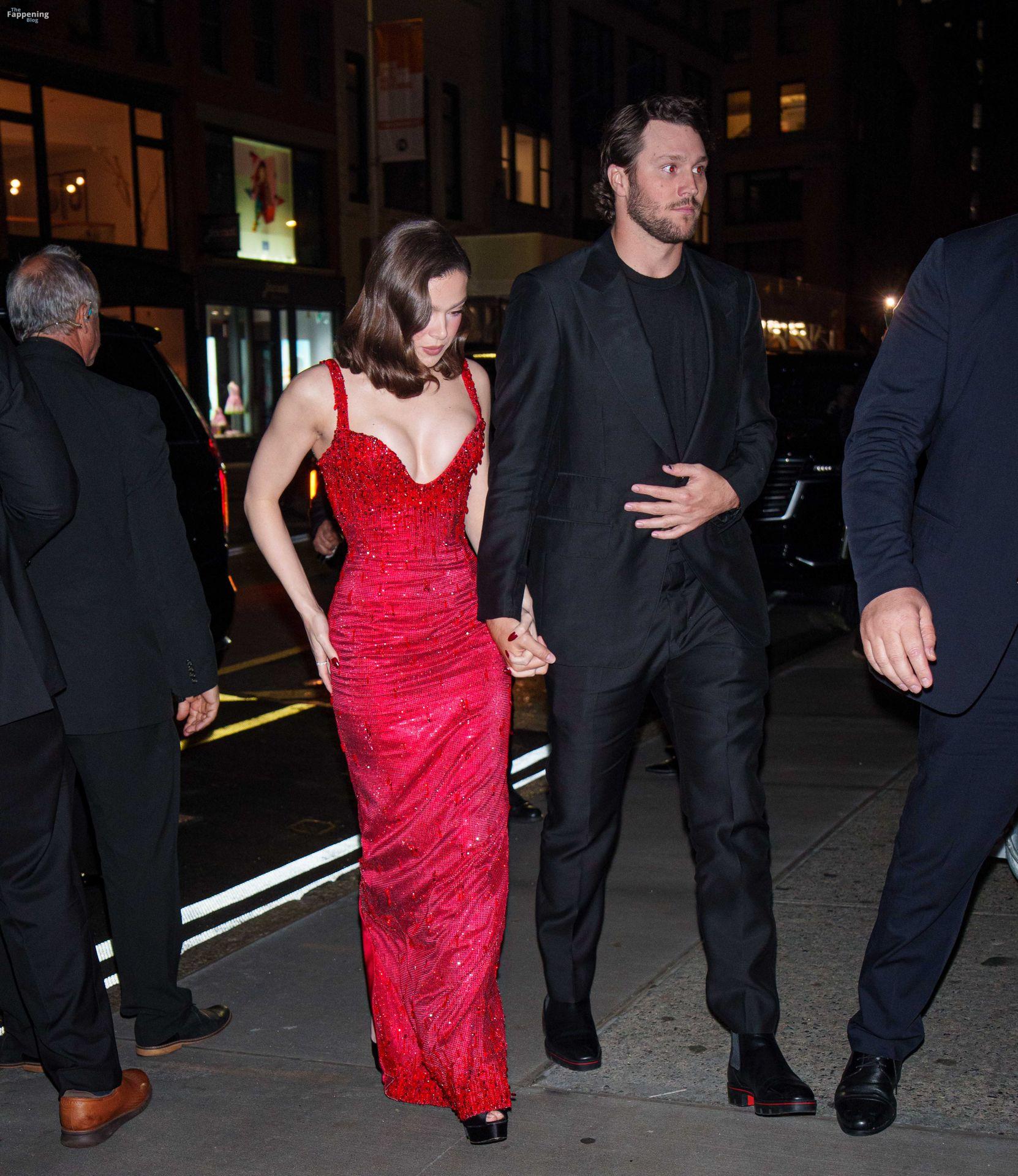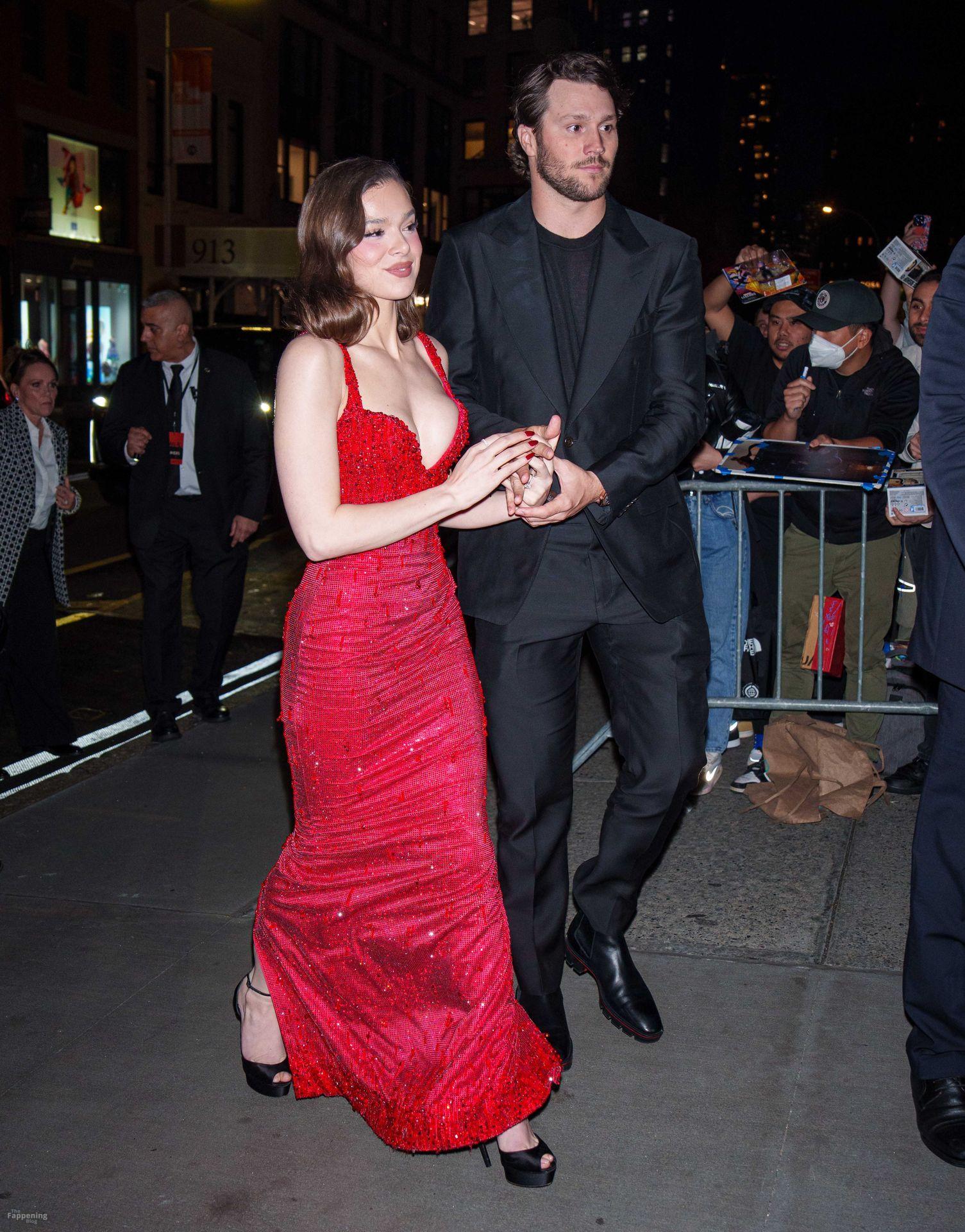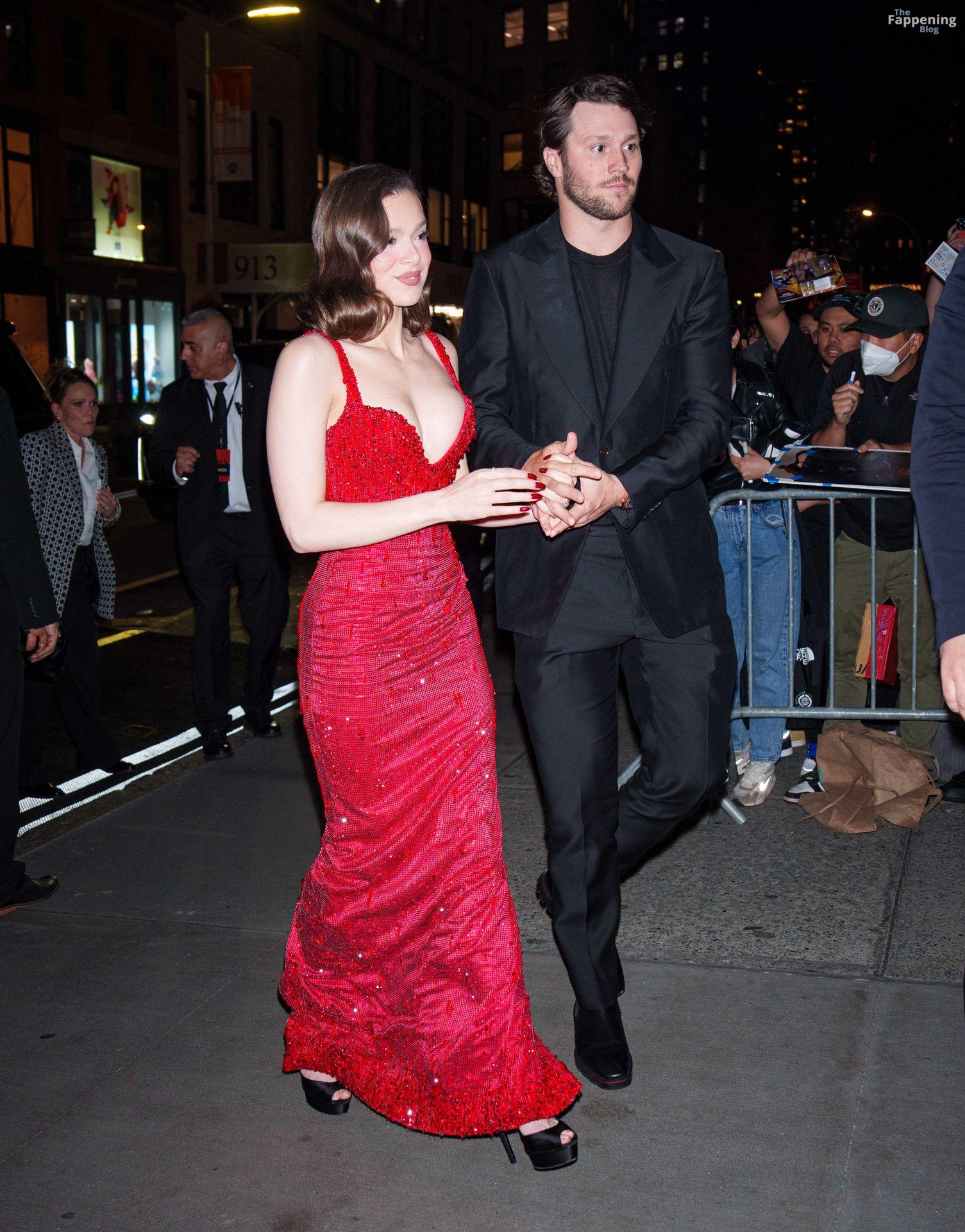 A atriz Hailee Steinfeld exibe seu decote e sua bela silhueta em um vestido vermelho na estreia de “Sinners” em Nova York.