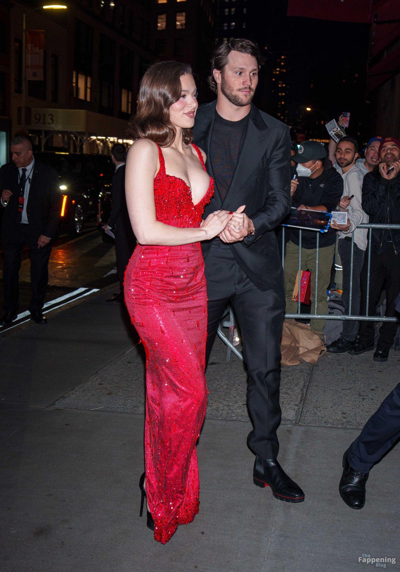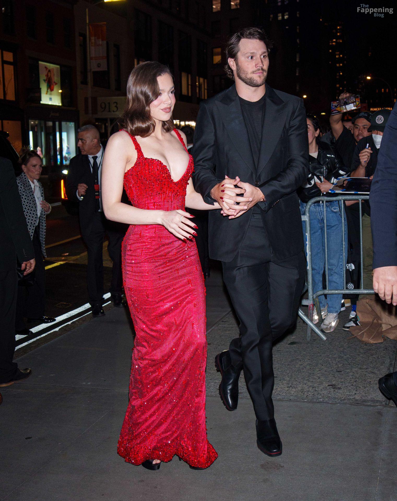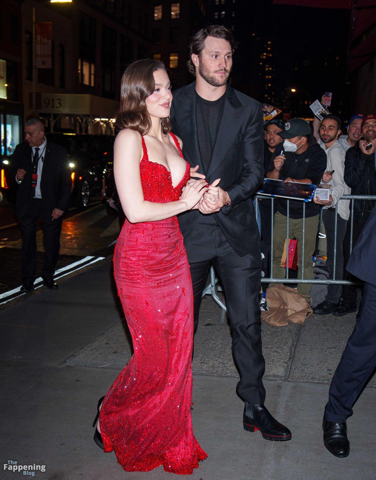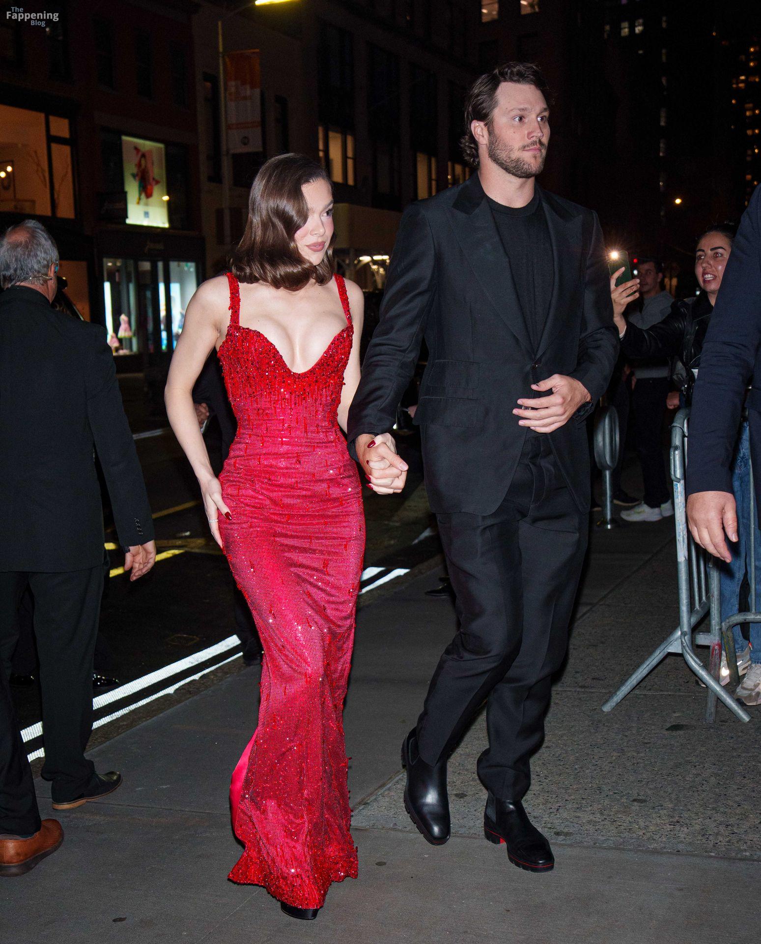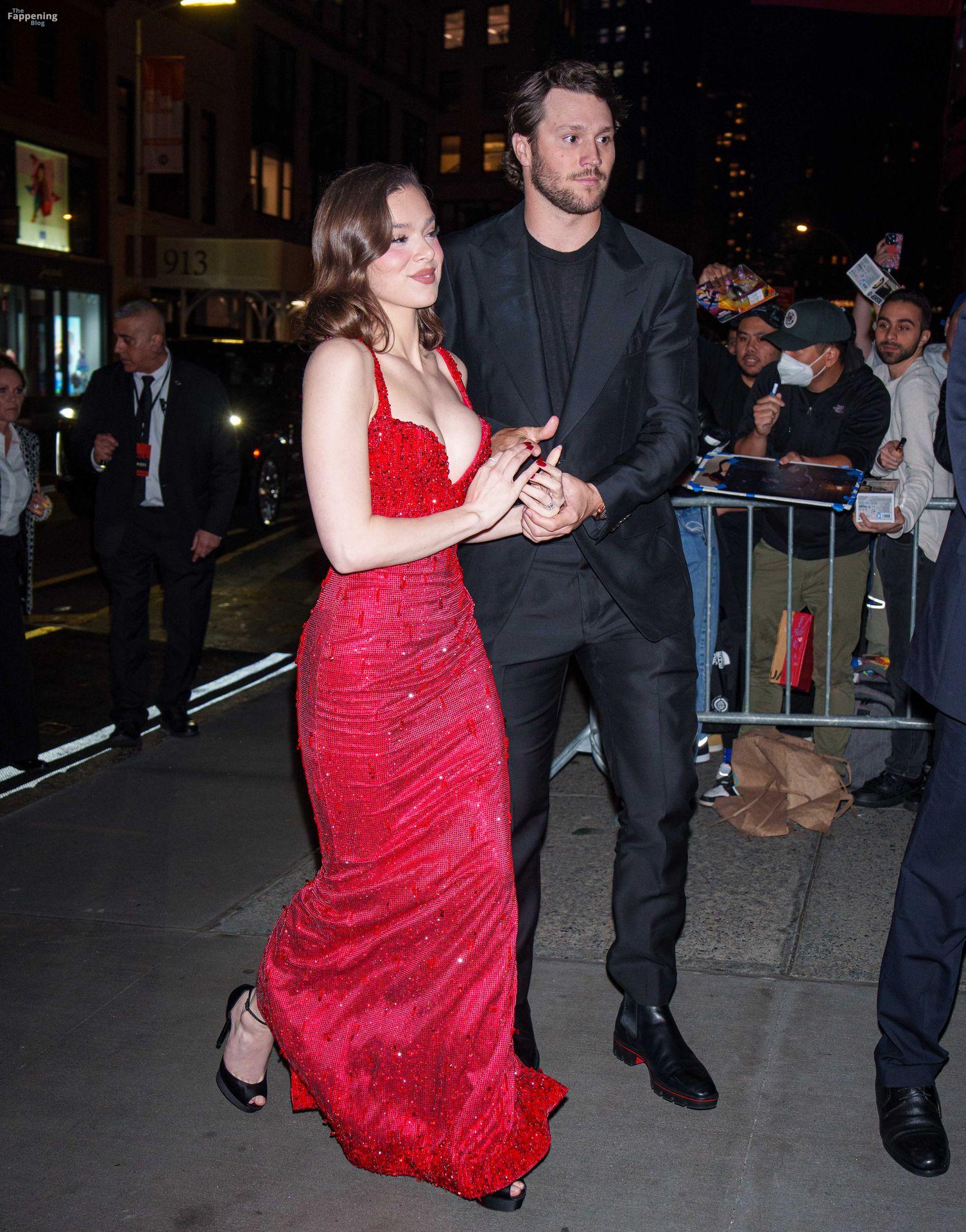 A atriz Hailee Steinfeld exibe seu decote e sua bela silhueta em um vestido vermelho na estreia de “Sinners” em Nova York.