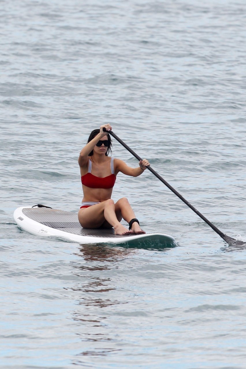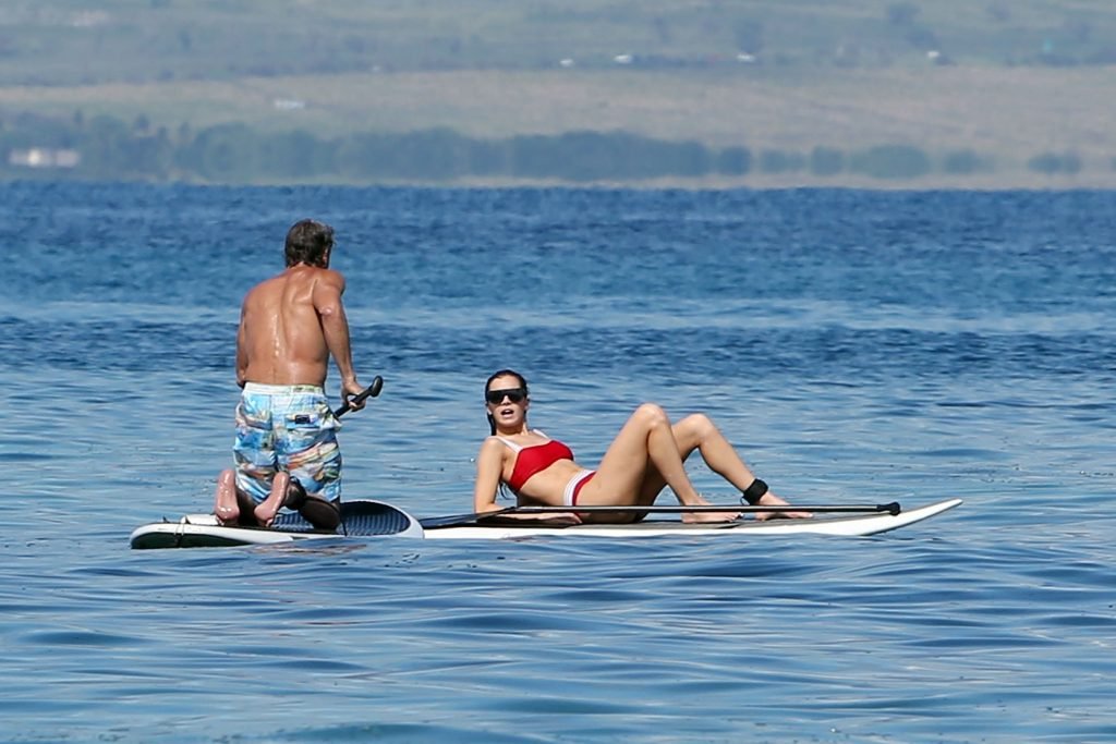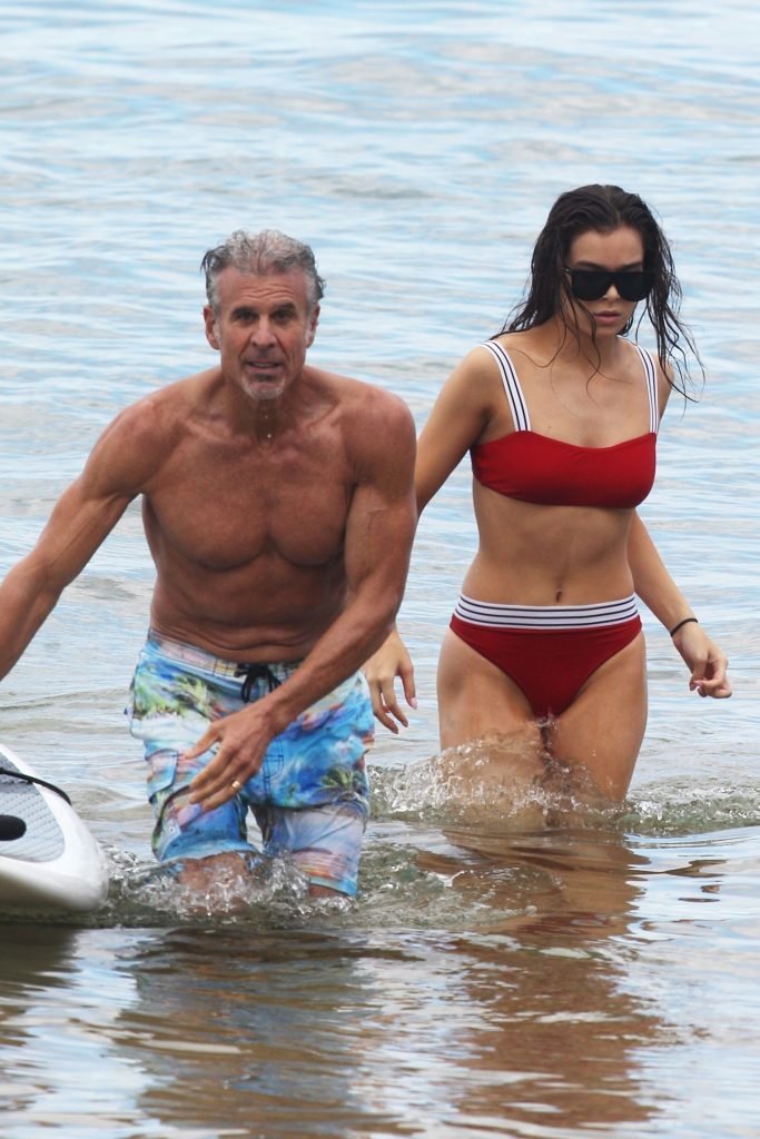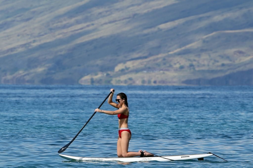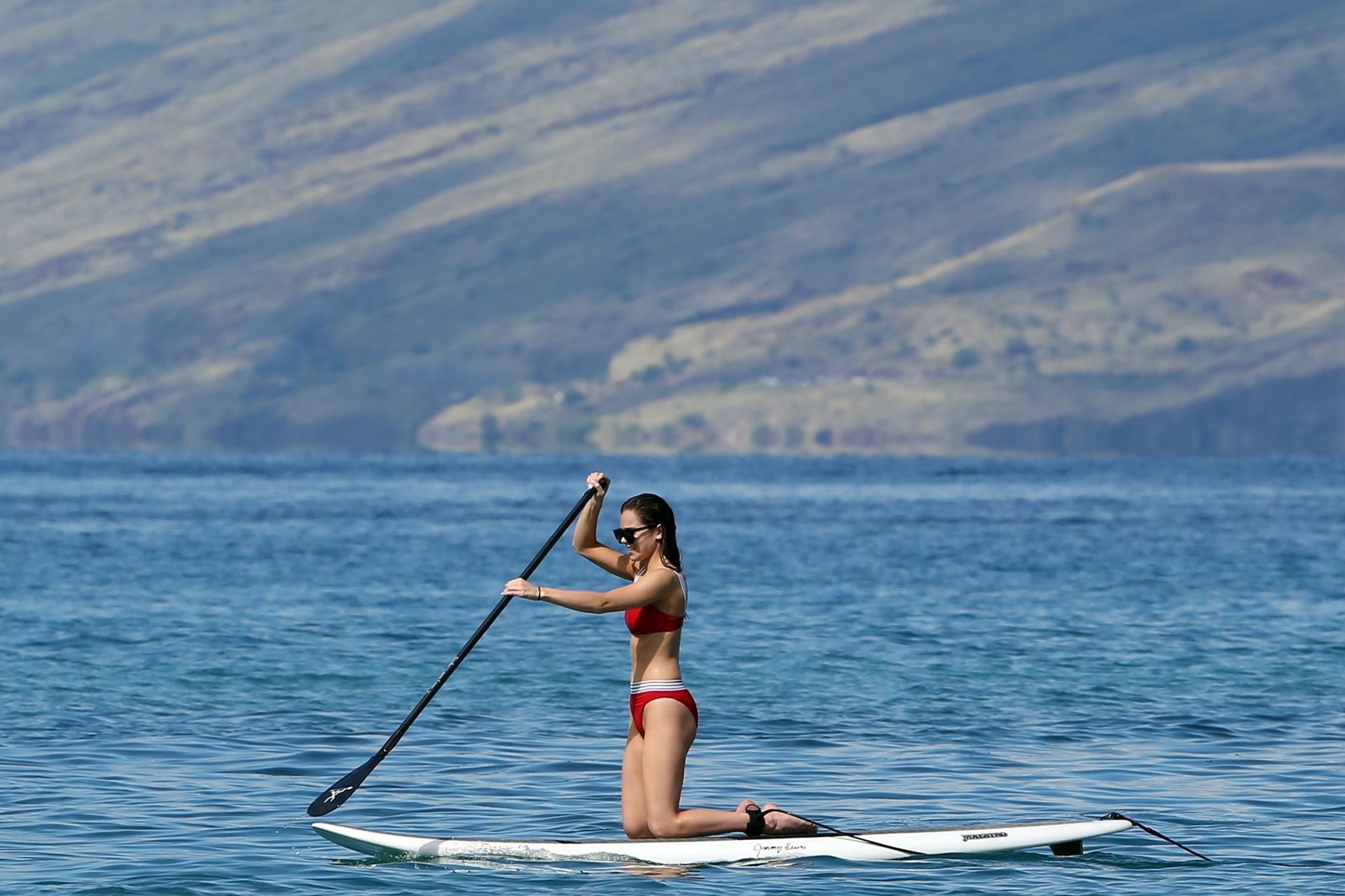 Hailee Steinfeld vai remar de stand up paddle com sua família no dia de Natal no Havaí, 25/12/2017. A morena de 21 anos exibe sua silhueta em um biquíni vermelho vibrante enquanto aproveita o tempo ao ar livre.