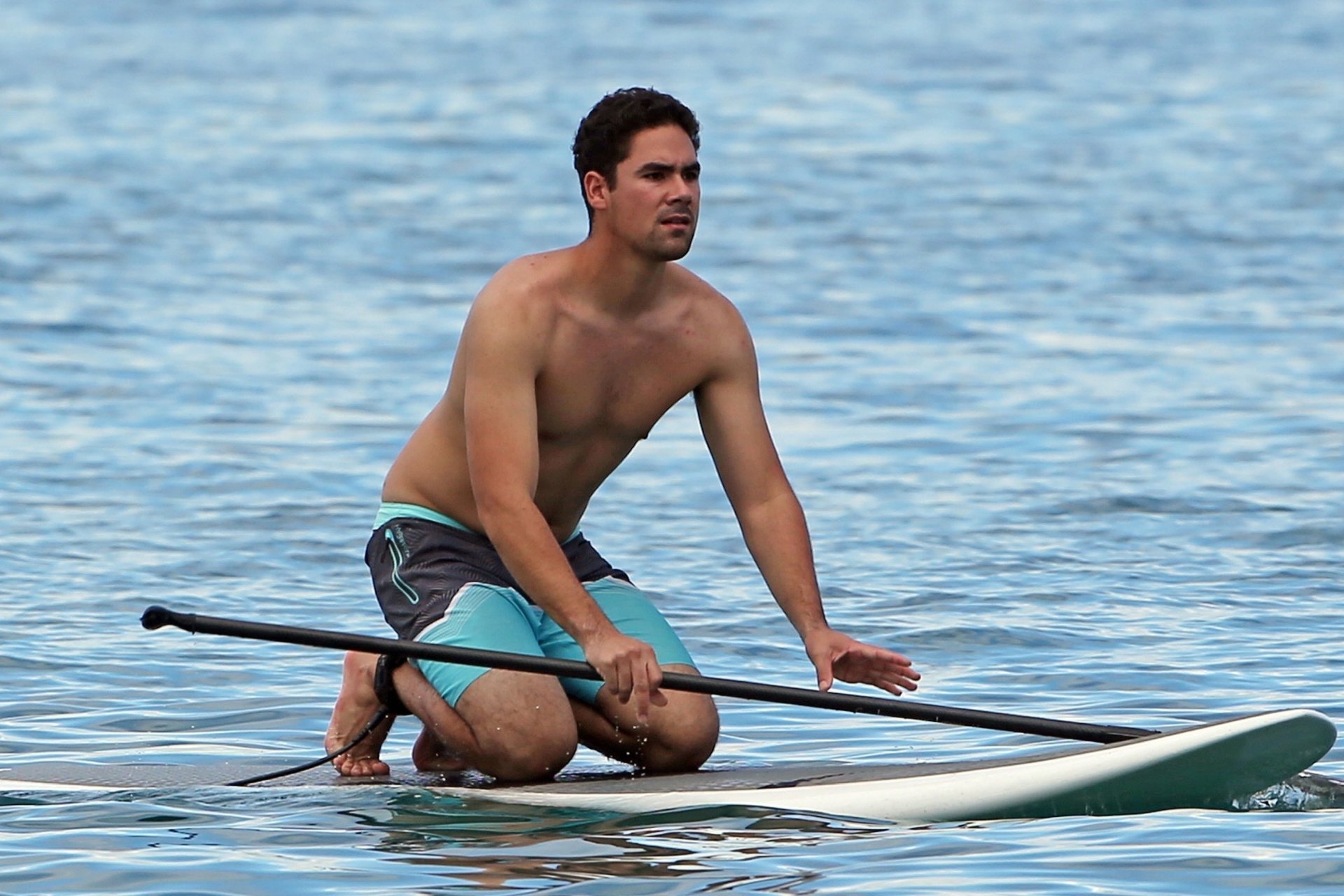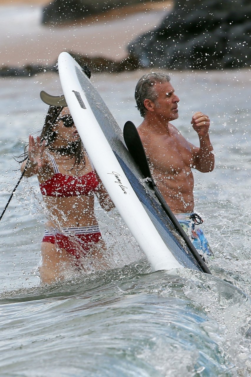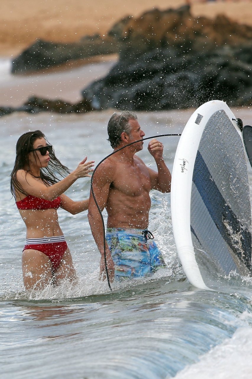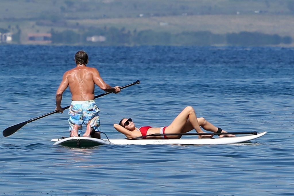 Hailee Steinfeld vai remar de stand up paddle com sua família no dia de Natal no Havaí, 25/12/2017. A morena de 21 anos exibe sua silhueta em um biquíni vermelho vibrante enquanto aproveita o tempo ao ar livre.