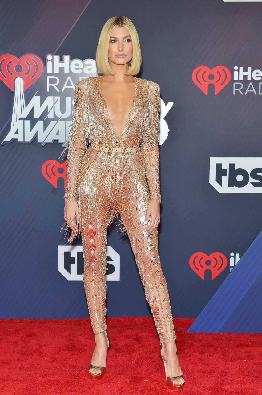 Hailey Baldwin participa do iHeartRadio Music Awards 2018 em Inglewood, 11/03/2018. Hailey Rhode Baldwin é uma modelo americana, atriz, estrela de TV. Idade – 21.