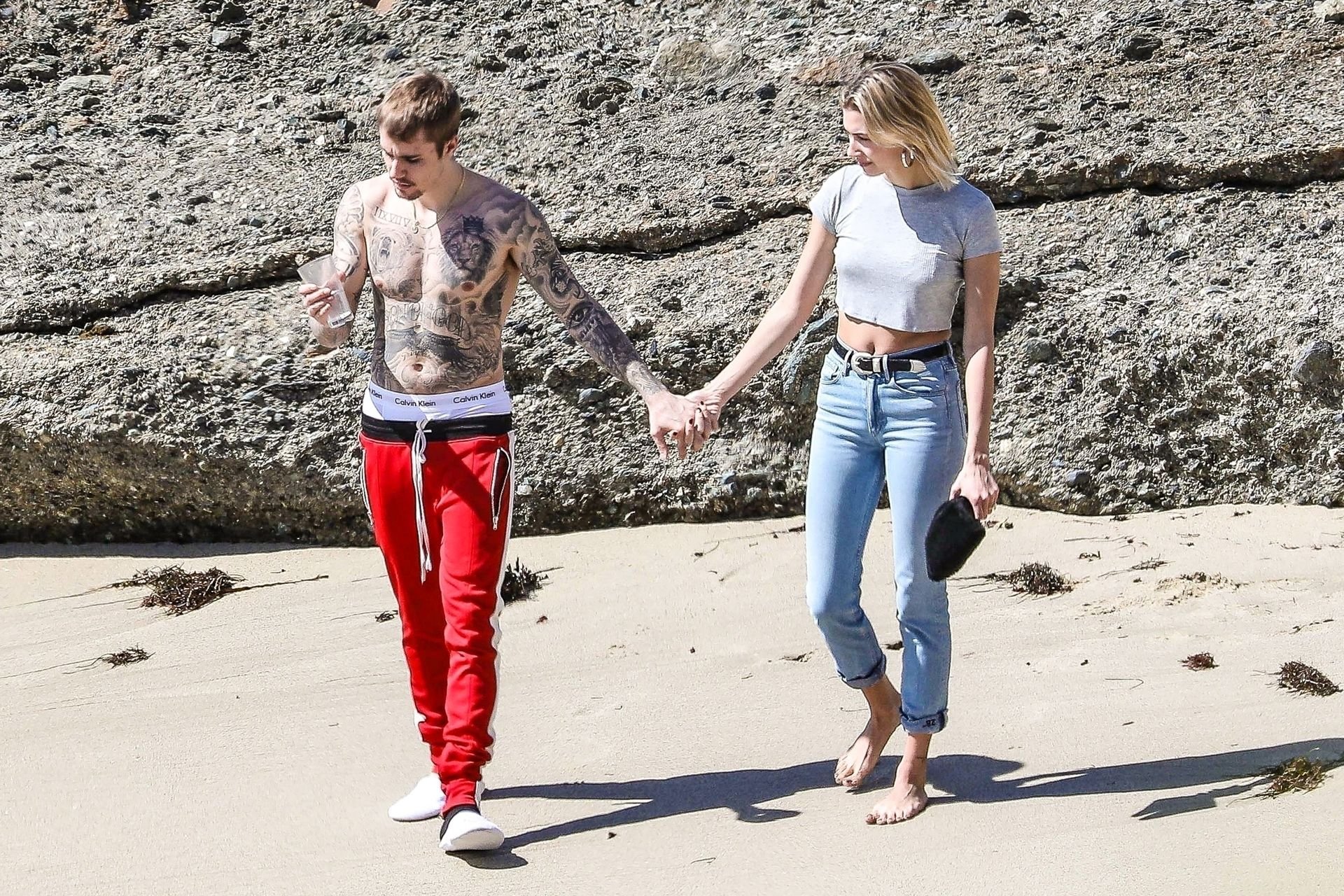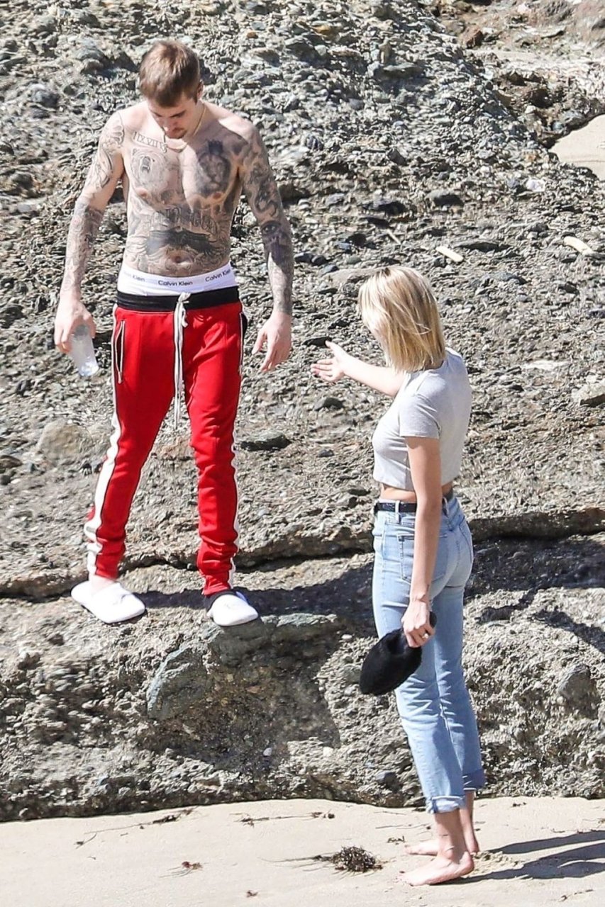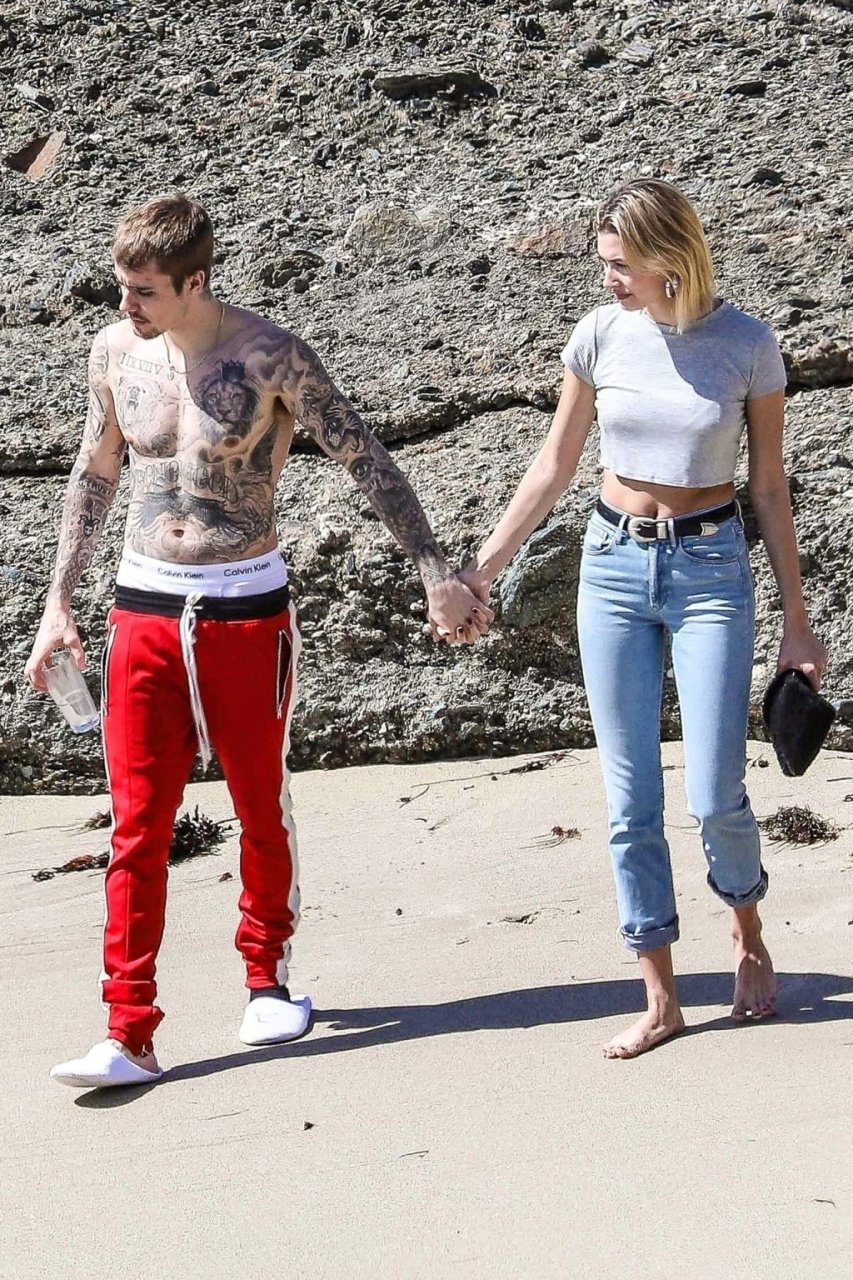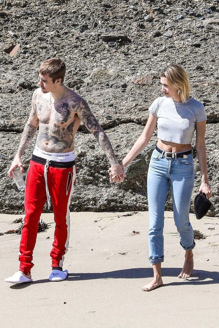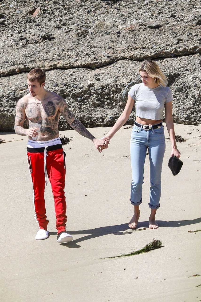 A dupla faz uma caminhada romântica pelas falésias e areia antes de encontrar fãs, que cumprimentam com sorrisos e selfies! Em um momento, Justin parece refletir enquanto está em uma pequena falésia olhando para as ondas quebrando, com a cabeça baixa. JB estava sem camisa durante toda a caminhada; enquanto isso, sua esposa Hailey usava um jeans claro e uma blusa cropped cinza.