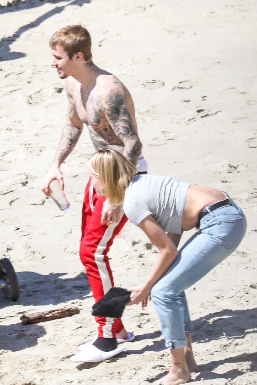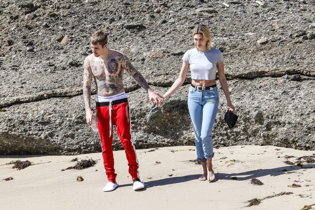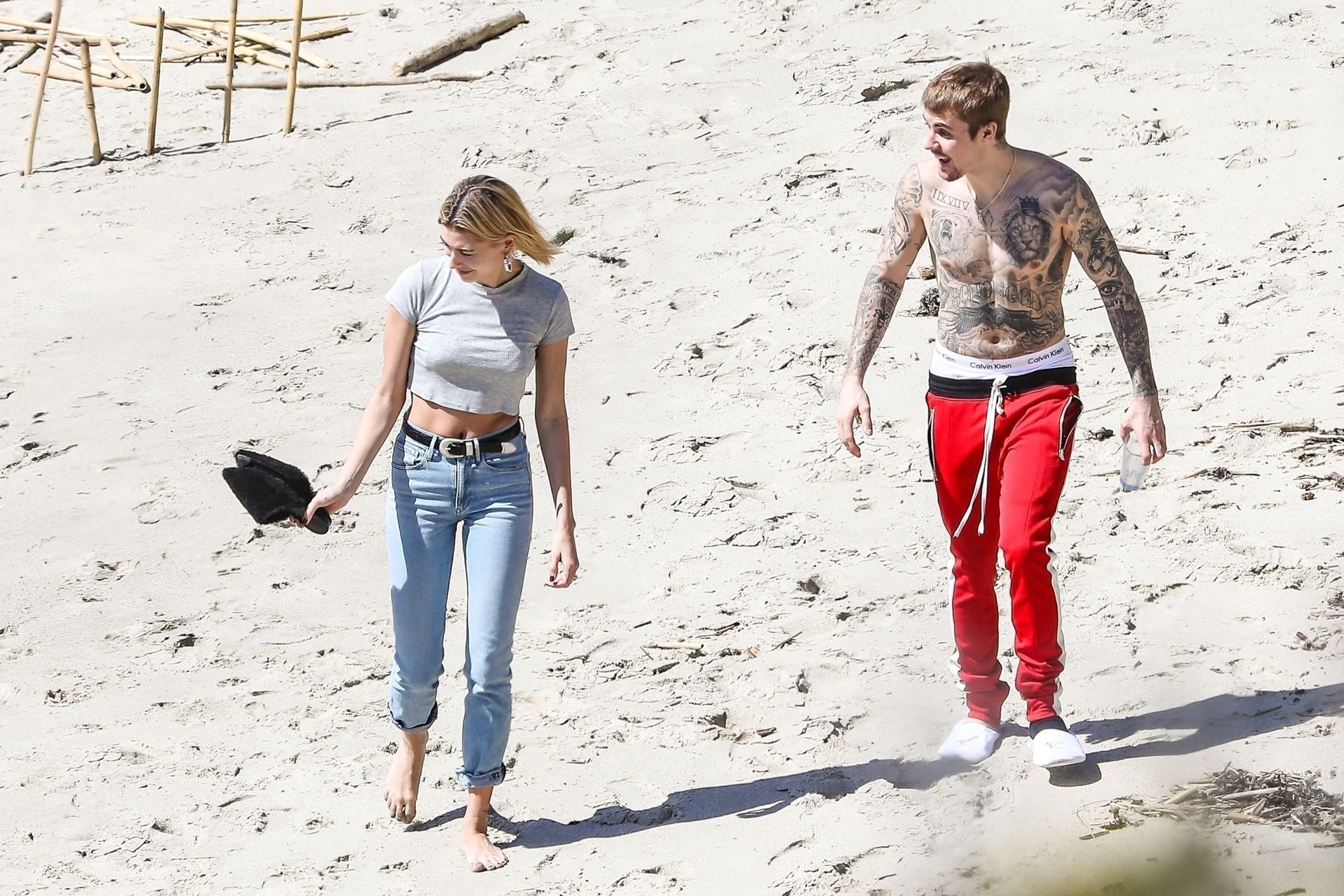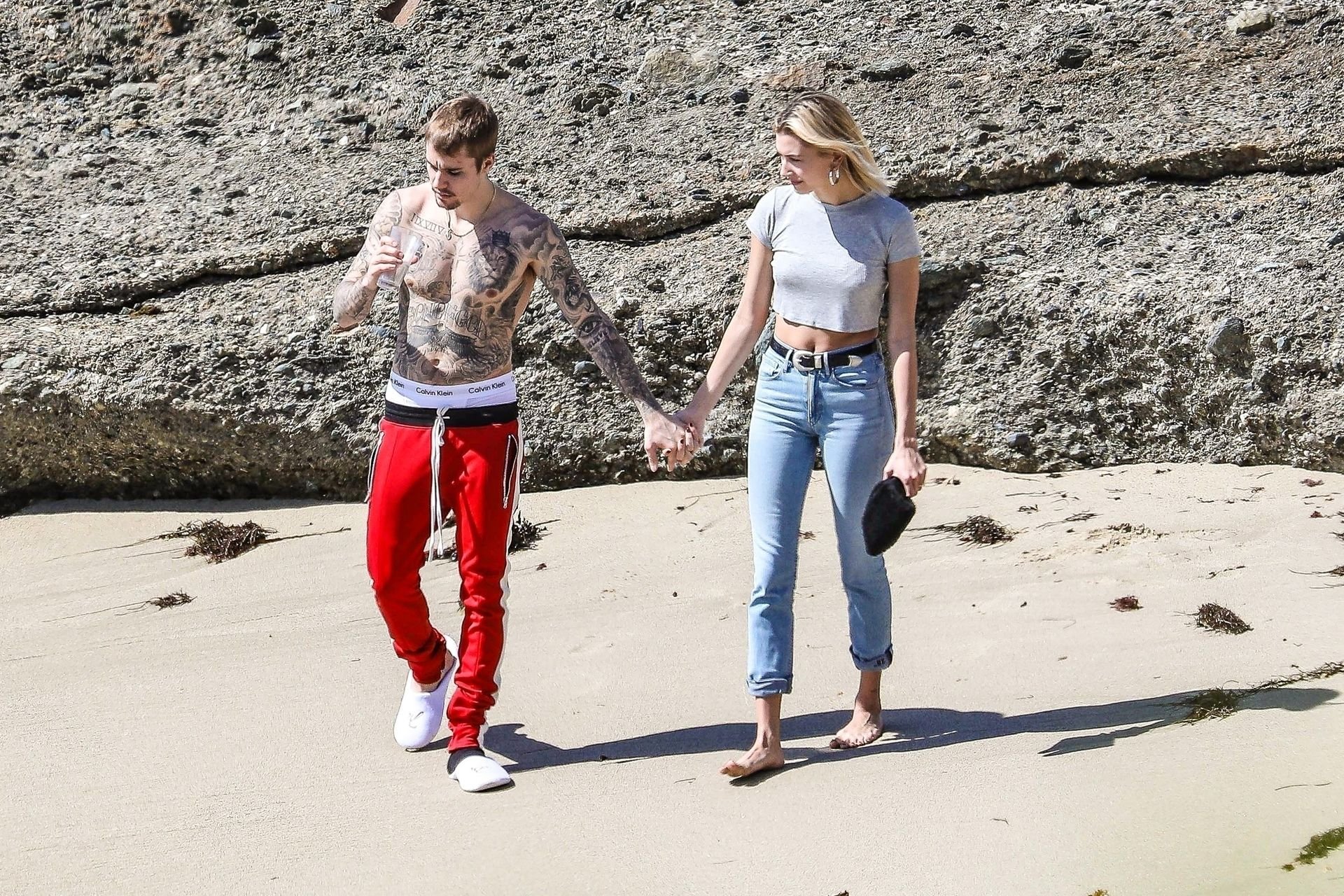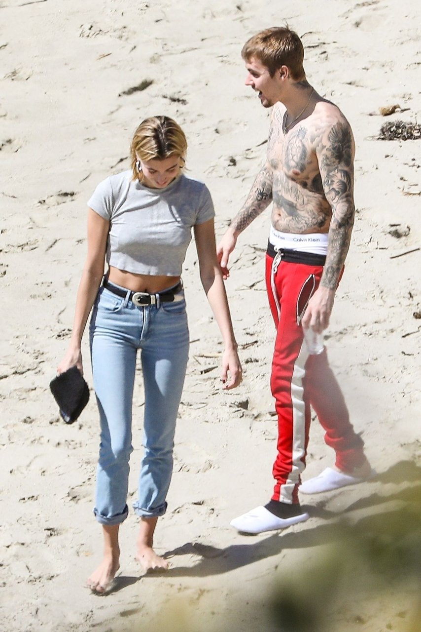 A dupla faz uma caminhada romântica pelas falésias e areia antes de encontrar fãs, que cumprimentam com sorrisos e selfies! Em um momento, Justin parece refletir enquanto está em uma pequena falésia olhando para as ondas quebrando, com a cabeça baixa. JB estava sem camisa durante toda a caminhada; enquanto isso, sua esposa Hailey usava um jeans claro e uma blusa cropped cinza.