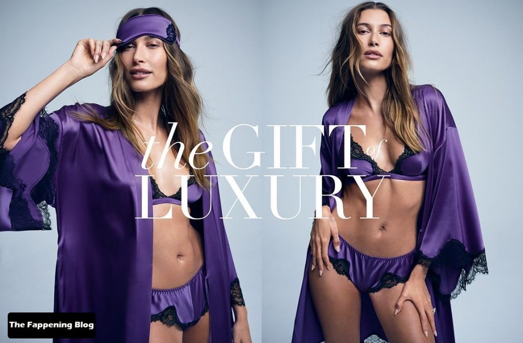 A modelo Hailey Bieber mostra sua silhueta sexy, posando com vários conjuntos de seda, promovendo uma nova coleção da Victoria’s Secret (novembro de 2021).