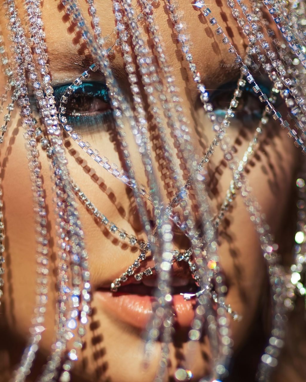 Model Haley Kalil posa topless, cobrindo seus seios com pasties em um ensaio fotográfico de Olya Helga (2021).