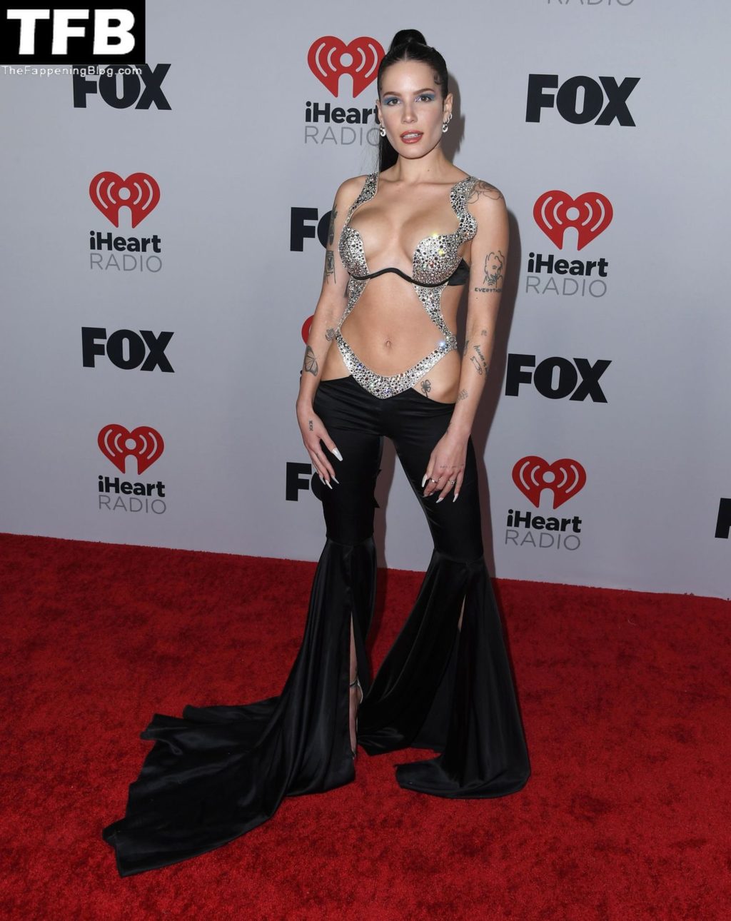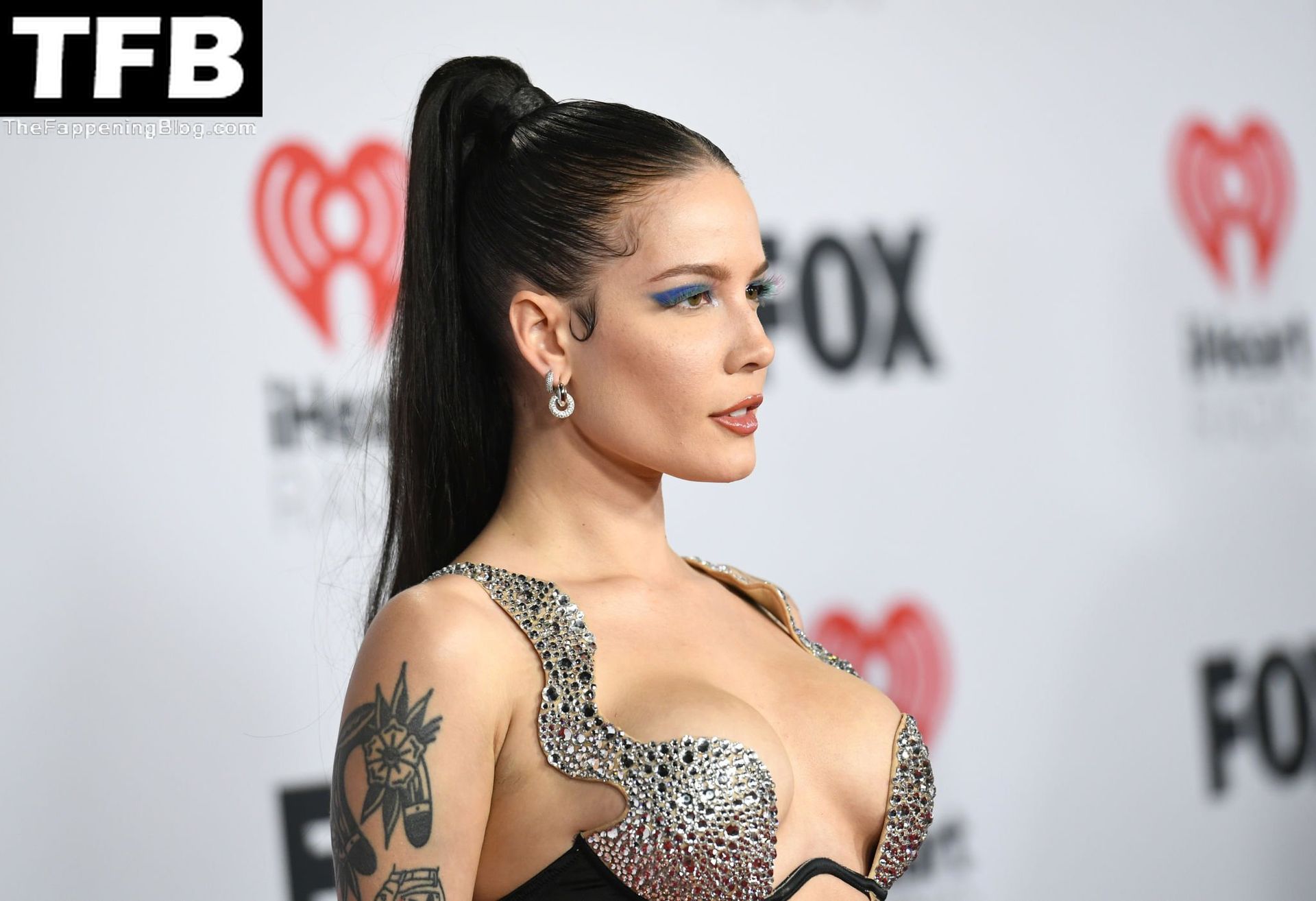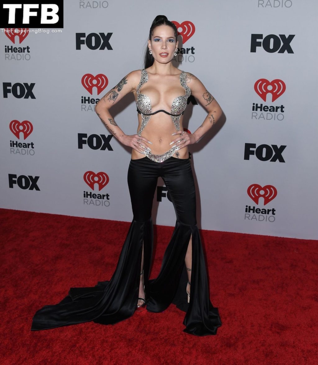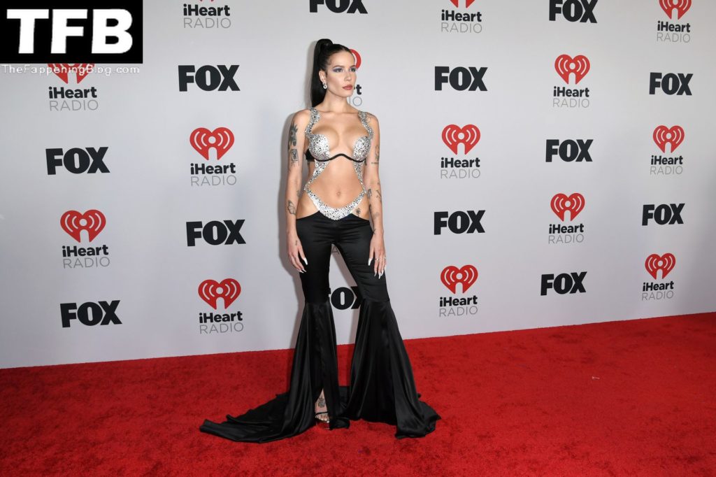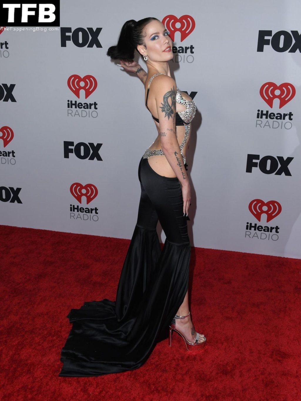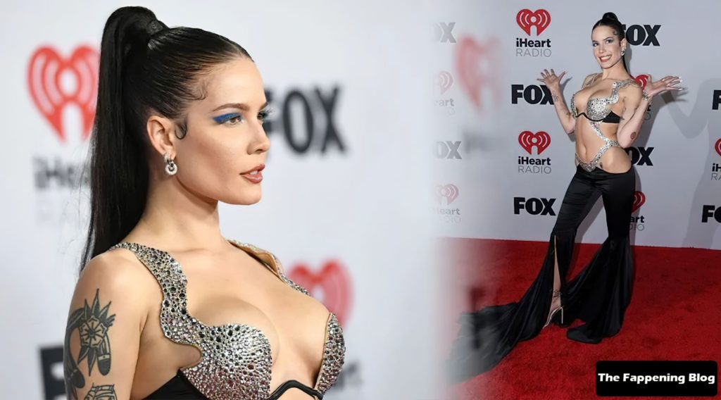 Halsey posa no tapete vermelho do iHeartRadio Music Awards no Shrine Auditorium em Los Angeles, 22/03/2022.