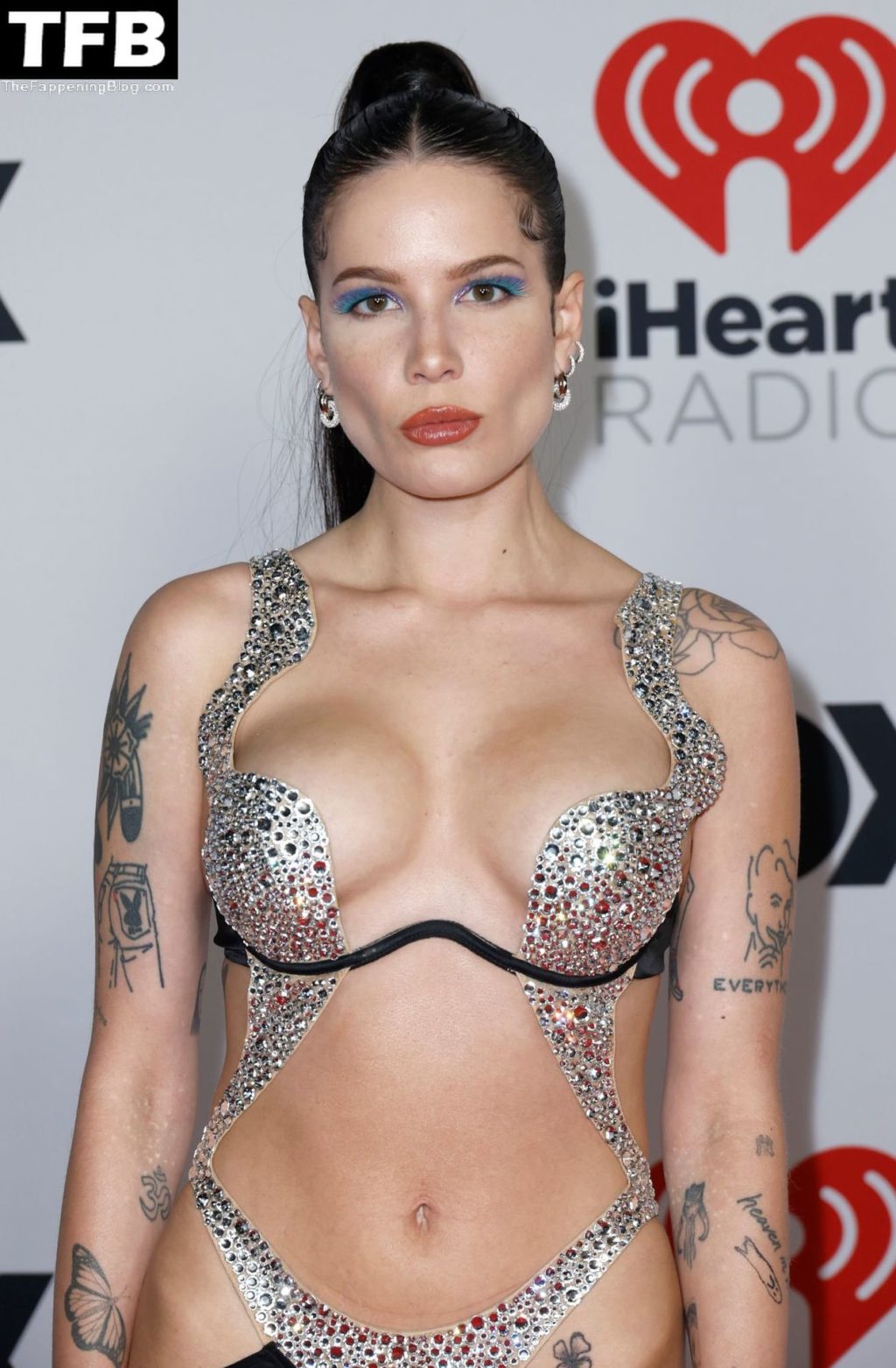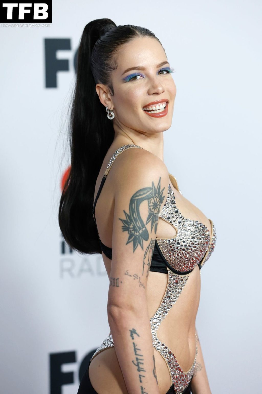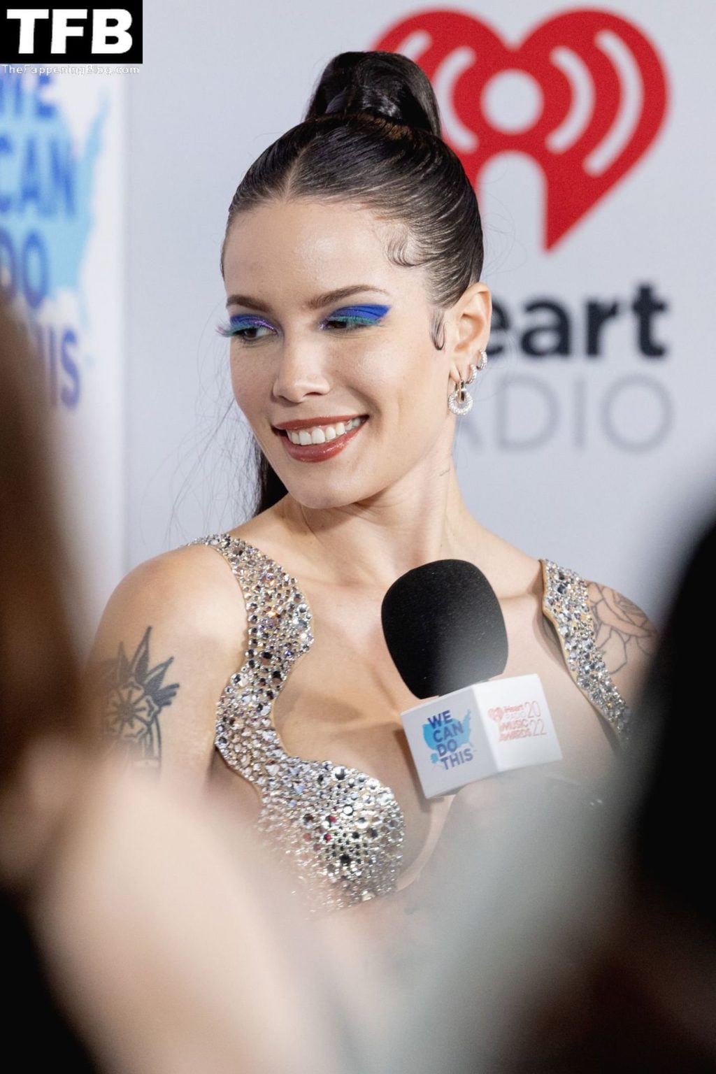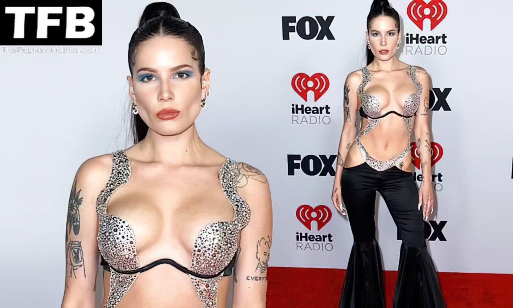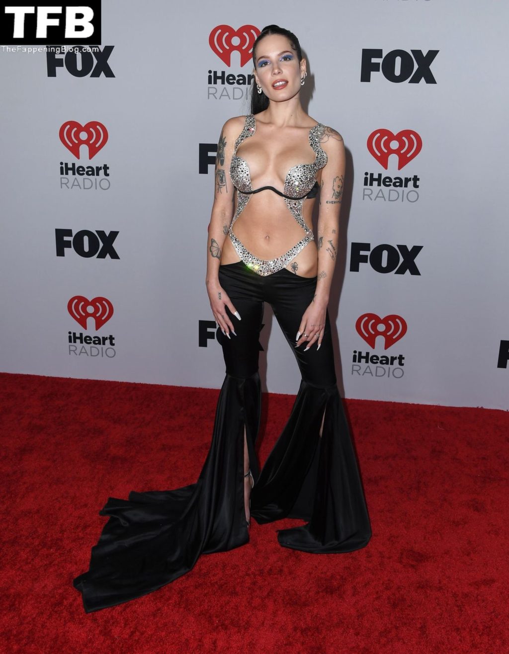 Halsey posa no tapete vermelho do iHeartRadio Music Awards no Shrine Auditorium em Los Angeles, 22/03/2022.