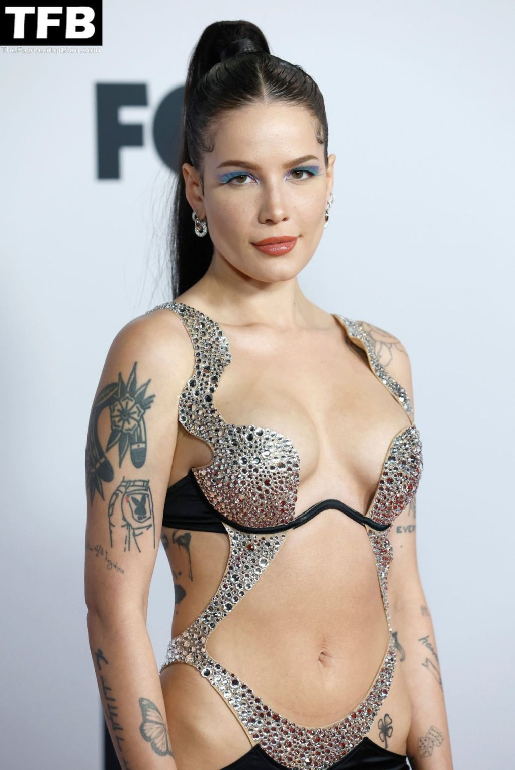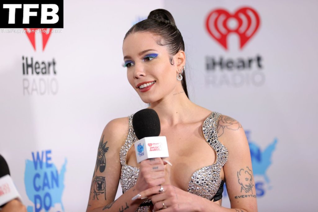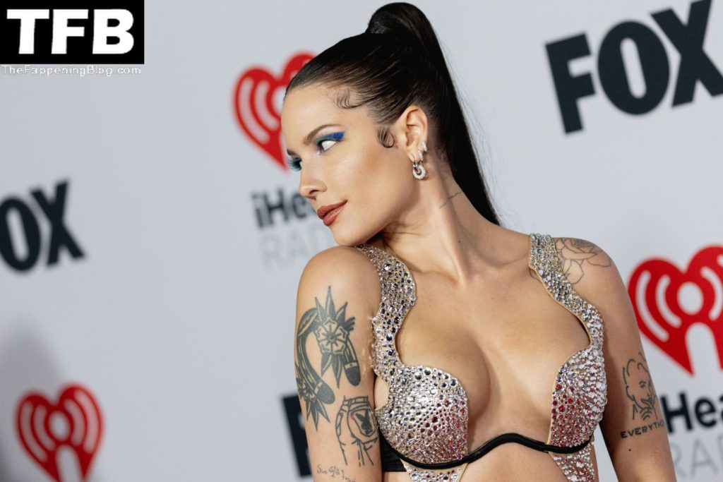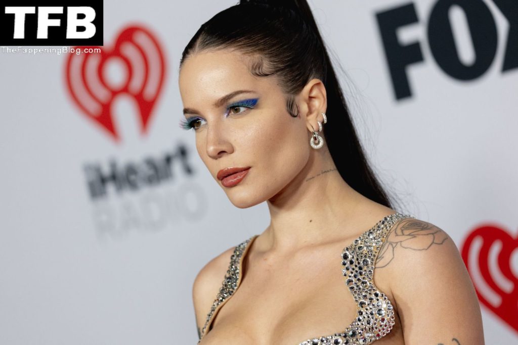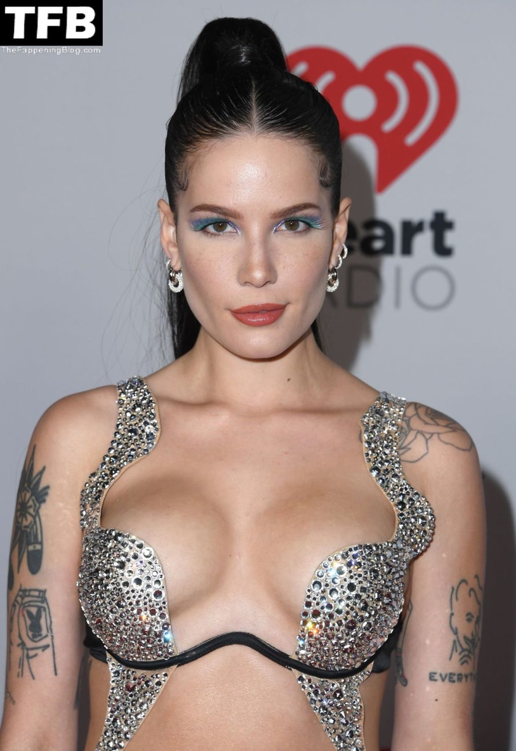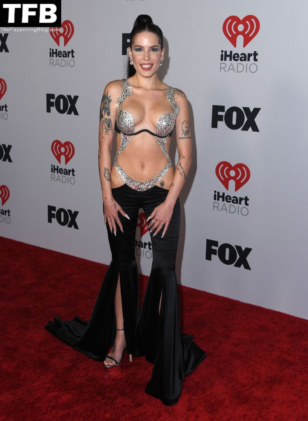 Halsey posa no tapete vermelho do iHeartRadio Music Awards no Shrine Auditorium em Los Angeles, 22/03/2022.