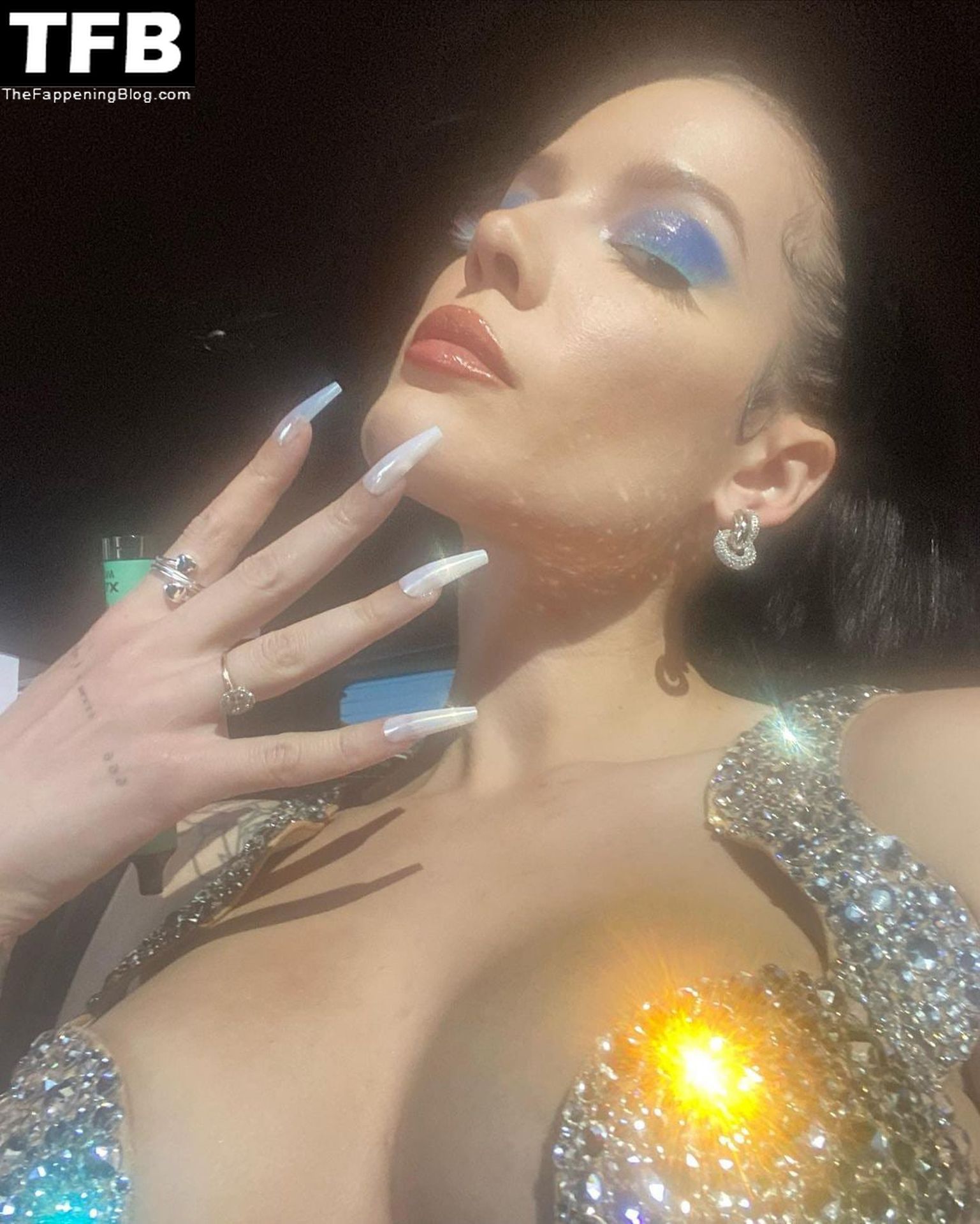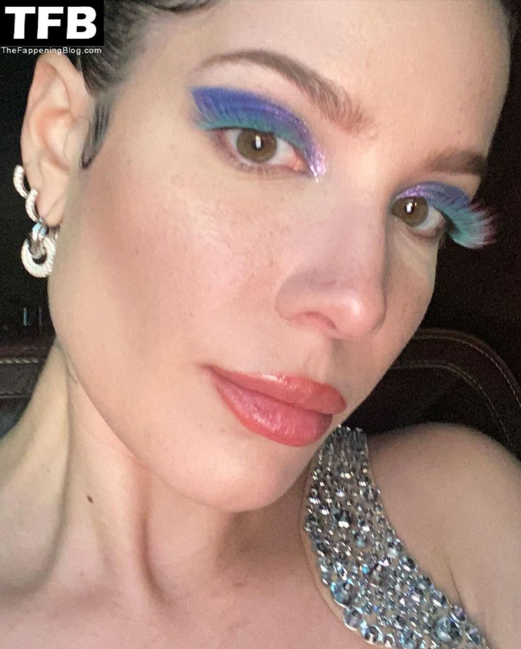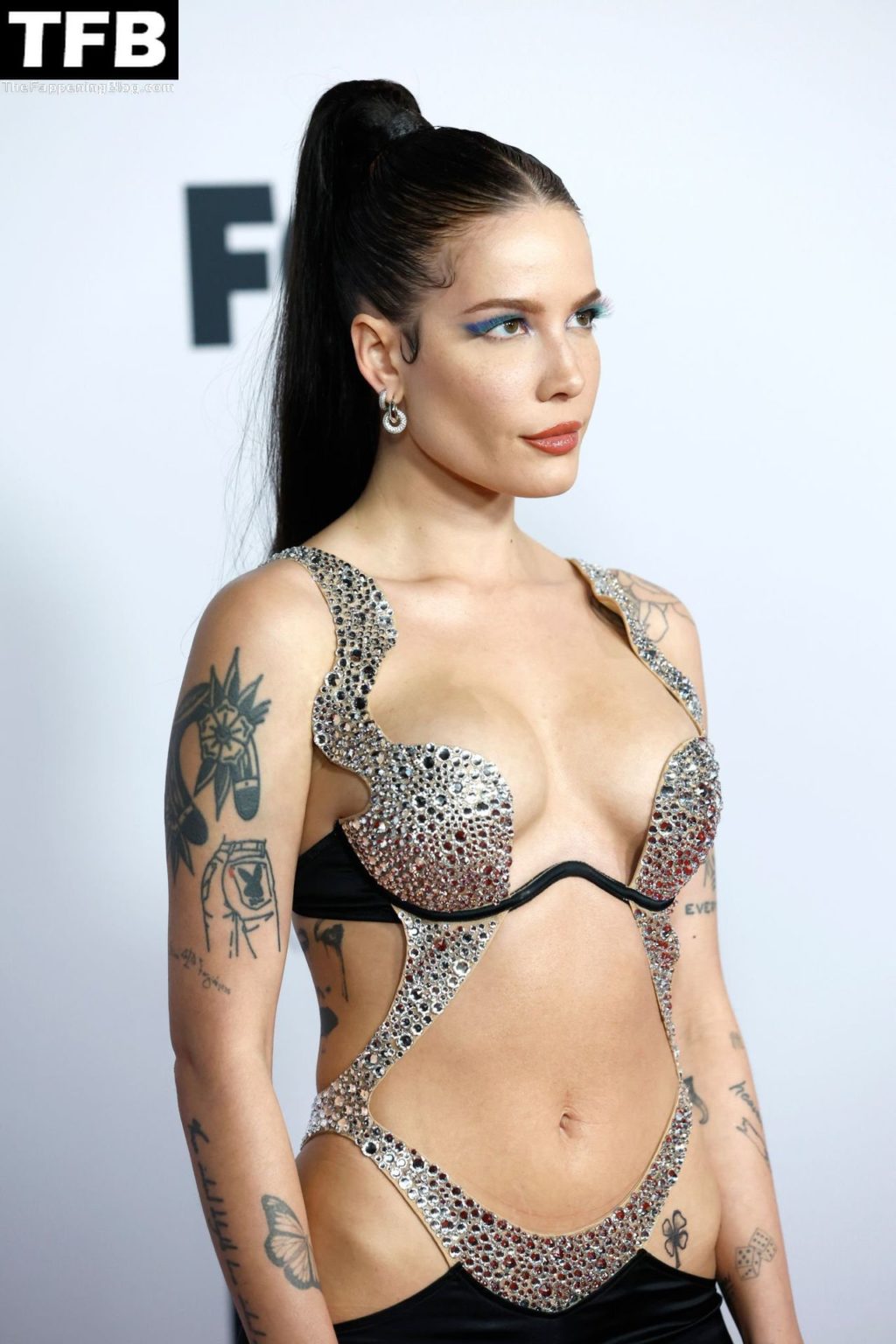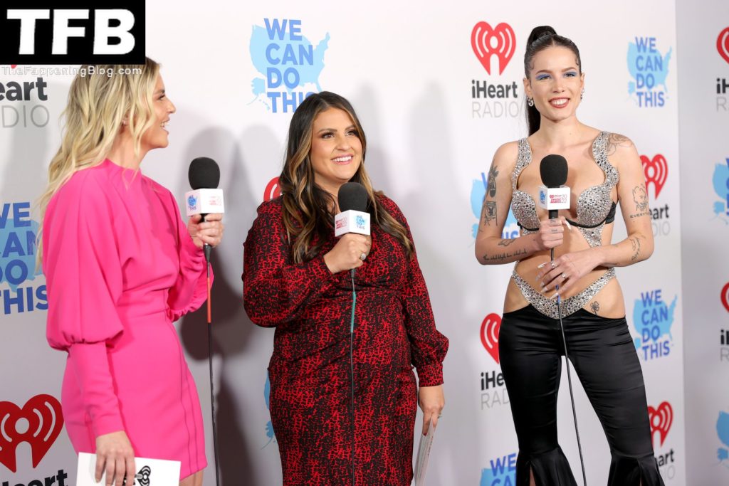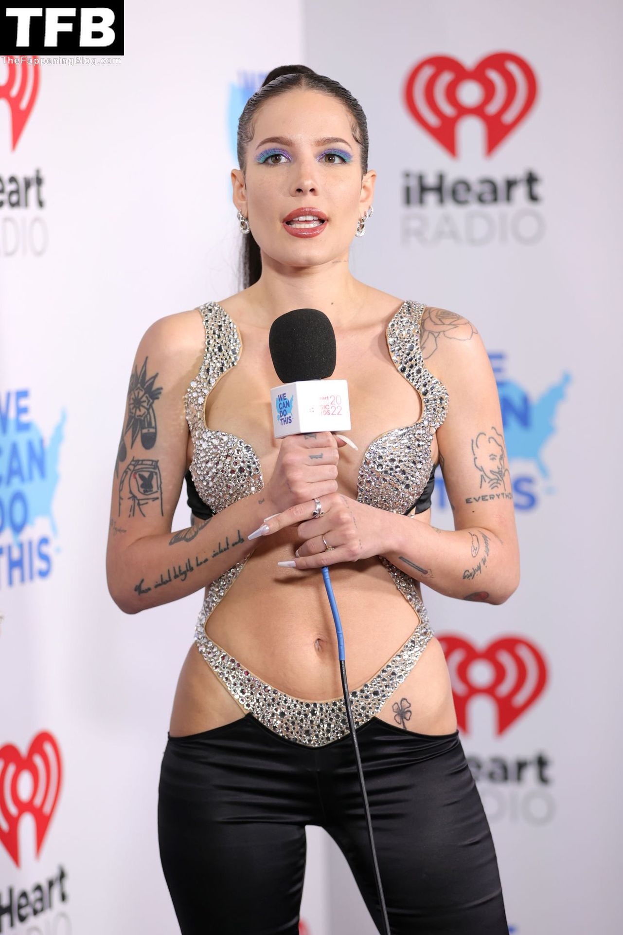 Halsey posa no tapete vermelho do iHeartRadio Music Awards no Shrine Auditorium em Los Angeles, 22/03/2022.