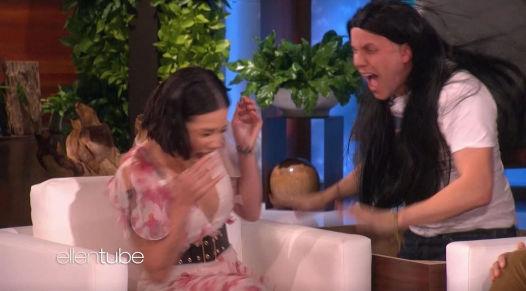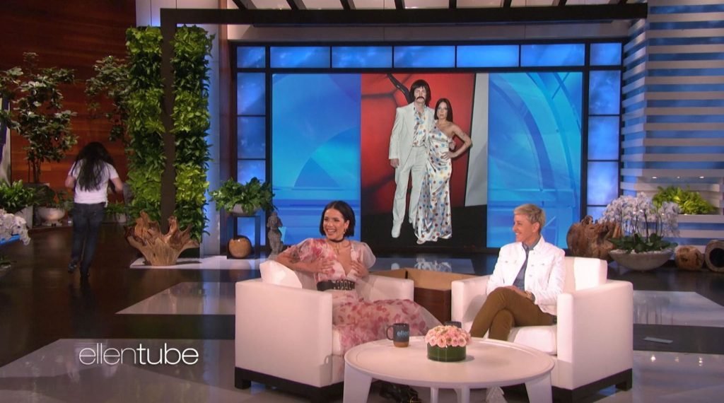 Ellen também perguntou sobre o novo namorado Evan Peters, com quem a jovem estrela esteve na festa assustadora antes de fazerem sua estreia como casal no tapete vermelho no dia seguinte. Mas antes que Halsey pudesse falar muito sobre seu novo amor, ela foi vítima do clássico susto de Ellen, quando um homem saiu da mesa de café ao lado dela, fazendo-a gritar. “Você me distraiu com a pergunta sobre o namorado. Eu não estava pronta”, disse ela – confirmando que está namorando o astro de American Horror Story, Peters.