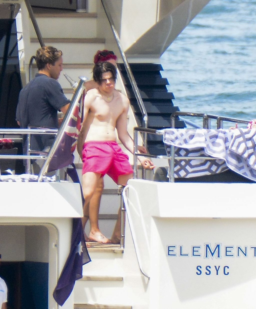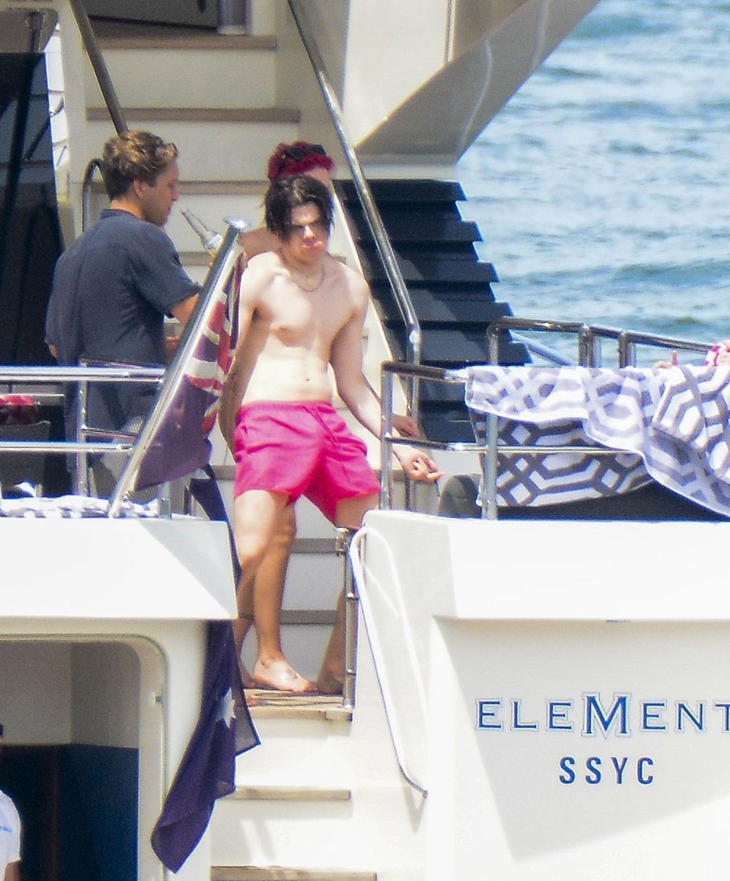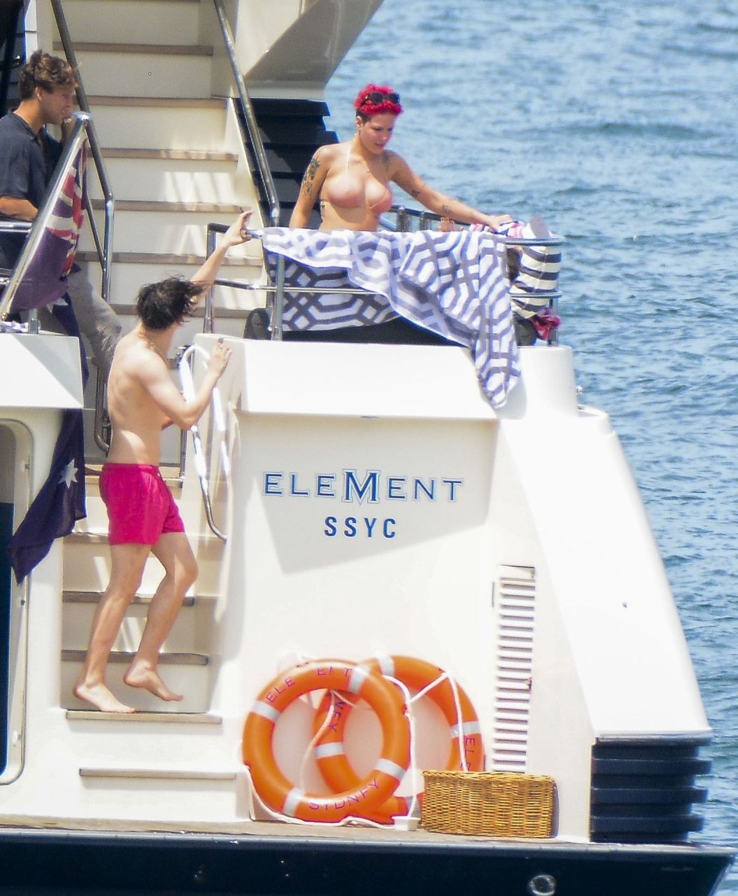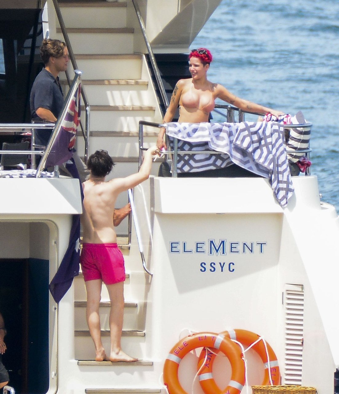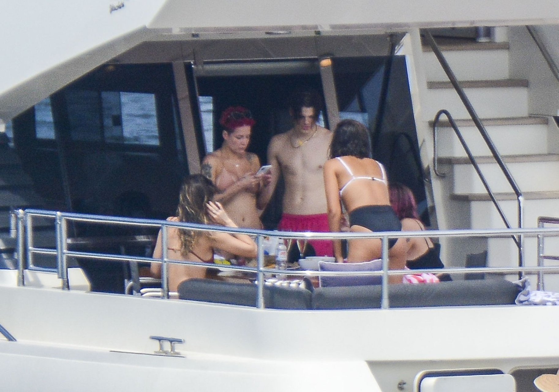 Halsey estava usando um biquíni cor de pele enquanto os dois demonstravam carinho compartilhando um momento privado no convés traseiro daquele iate.