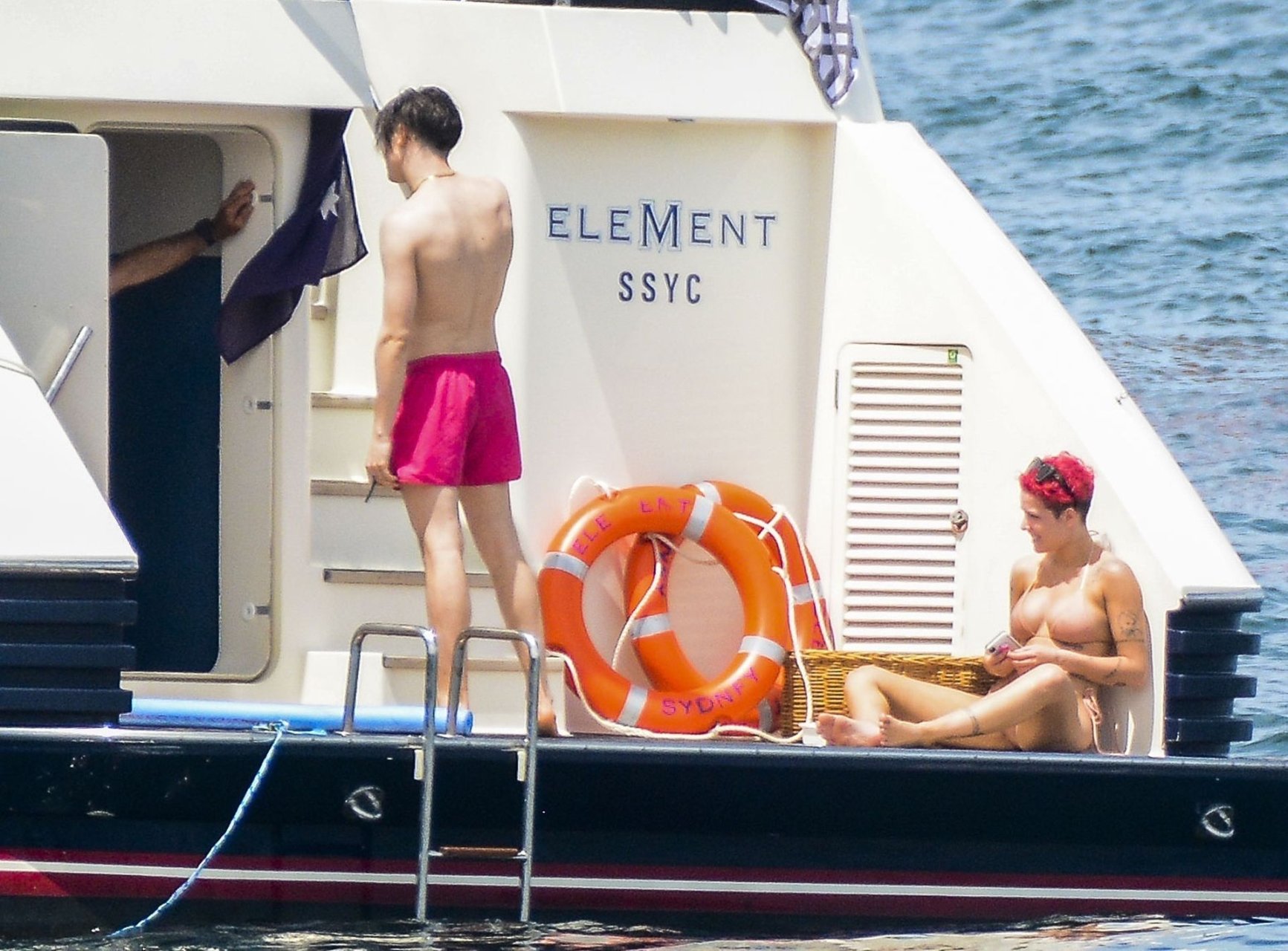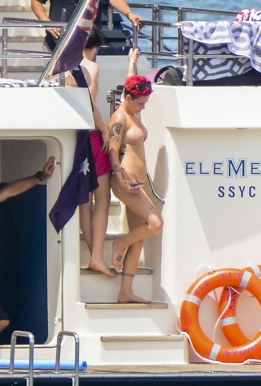 Ela está vivendo a vida boa! Halsey e seu suposto namorado Yungblud foram vistos juntos, relaxando em um superiate de luxo no Porto de Sydney com amigos, 17/02/2019.