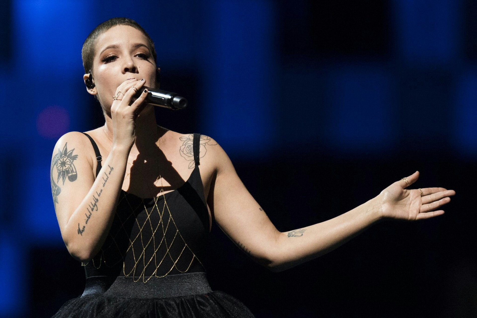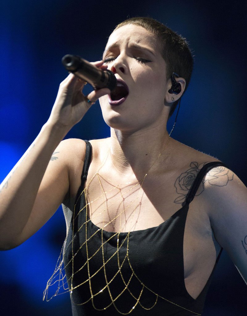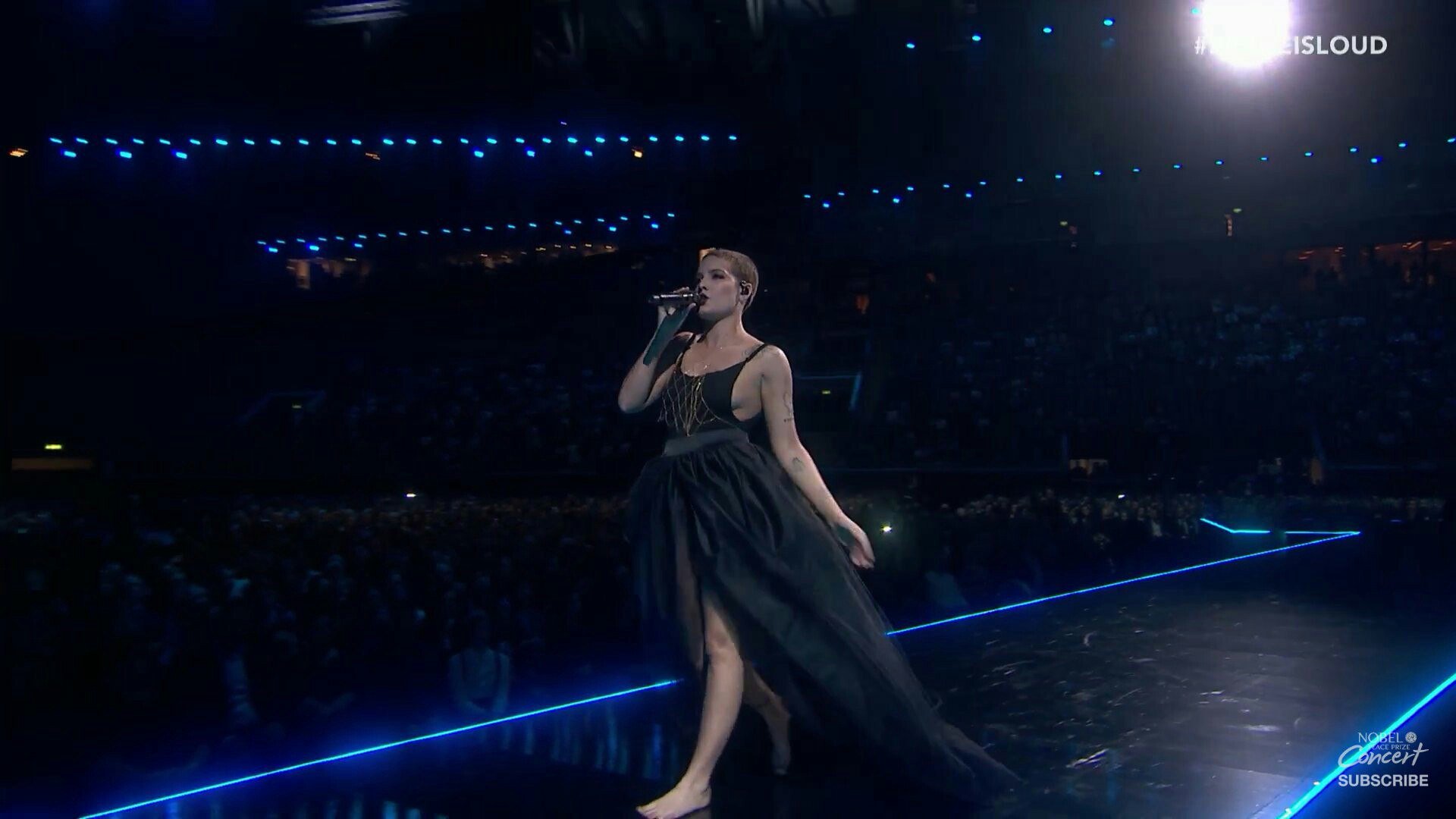 Halsey sem sutiã se apresentou no Concerto do Prêmio Nobel da Paz em Oslo, 11/12/2016. Ashley Nicolette Frangipane (Halsey) é uma cantora e compositora americana. Idade: 22 (29 de setembro de 1994).