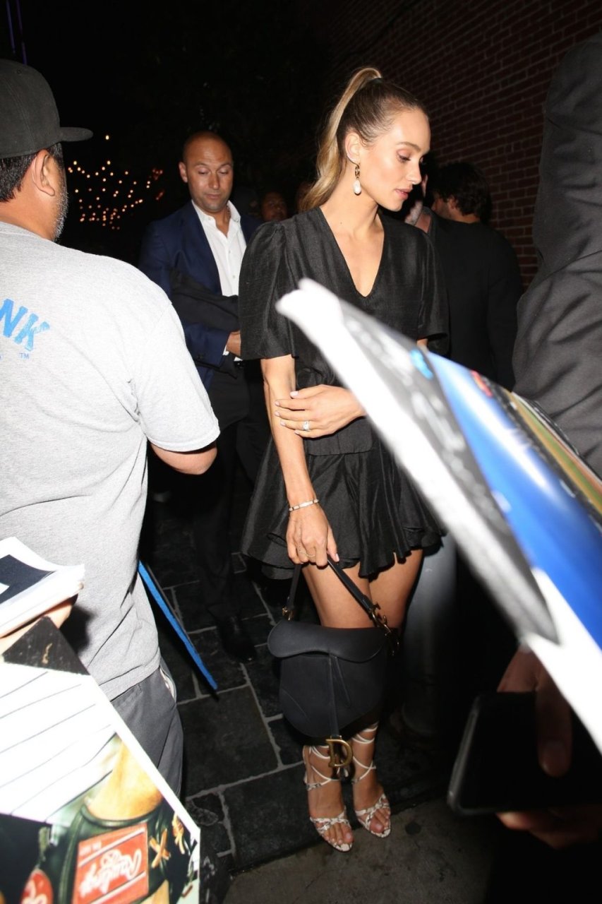 Derek Jeter e sua esposa, a modelo da Sports Illustrated Swimsuit, Hannah Jeter, foram vistos em uma festa pré-ESPYs em Hollywood, 09/07/2019. Os dois foram vistos saindo do Dream Hollywood na noite anterior ao prêmio. A esposa de Jeter sorriu e cumprimentou os fãs enquanto Jeter autografava memorabilia.