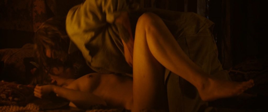 A atriz de “Game of Thrones” Hannah Murray em sua cena de sexo nua em “Charlie Says” (2018), onde ela mostrou seus seios e nádegas naturais. O homem está em pé na frente dela, enquanto ela tira as roupas e mostra seu corpo completamente nu. Então ele e Hannah começam a fazer sexo clássico.