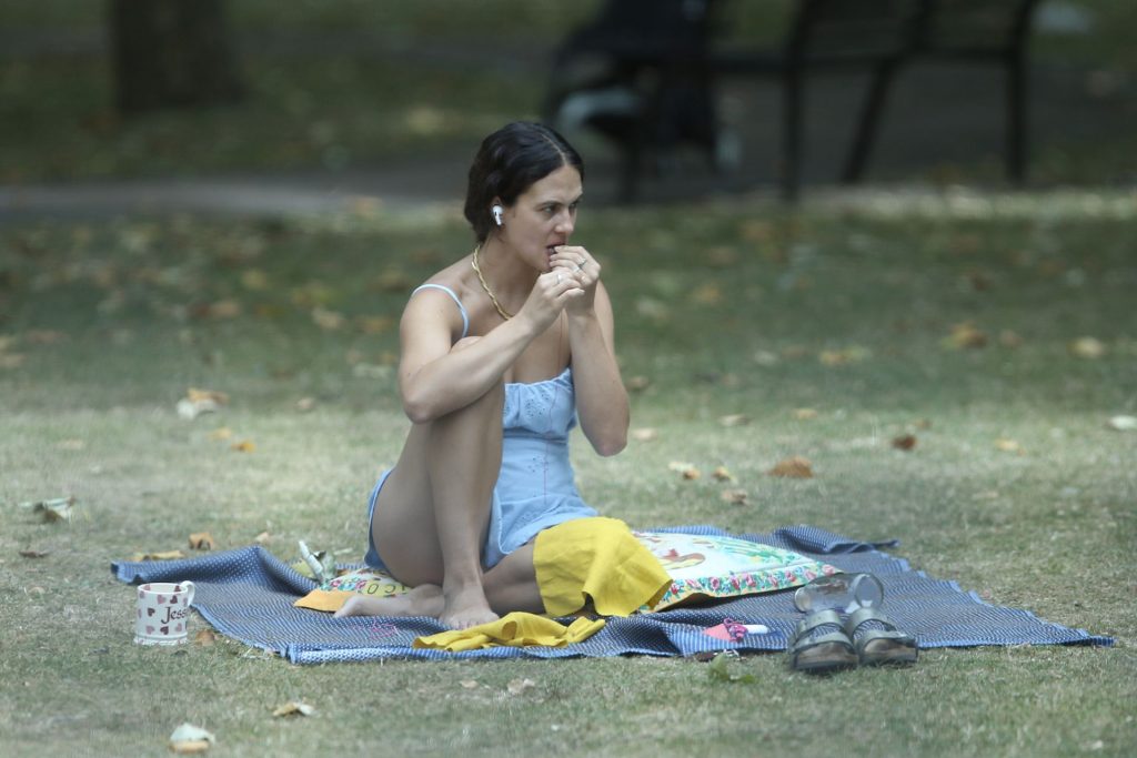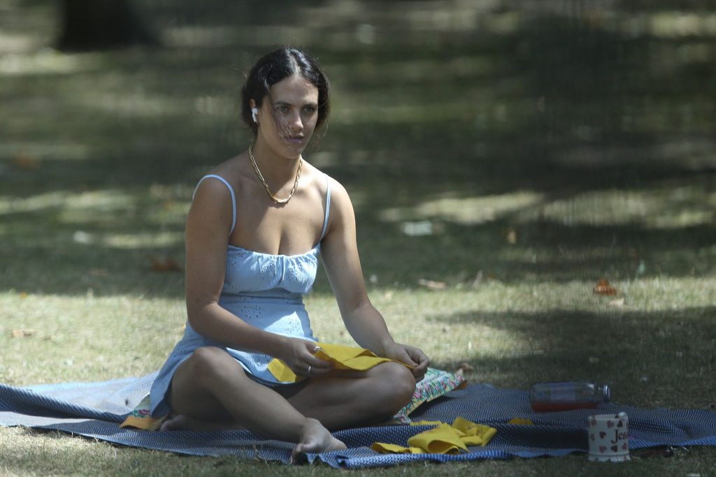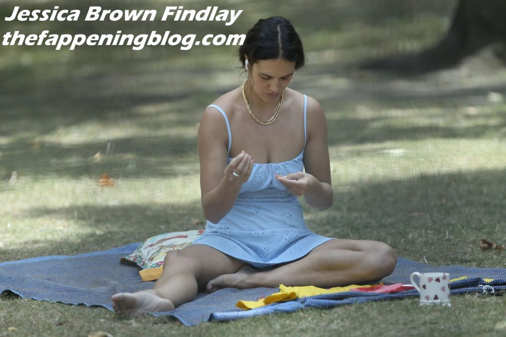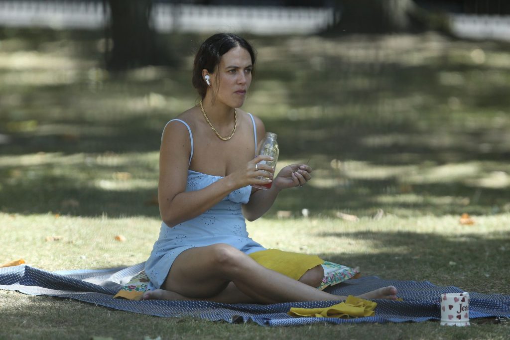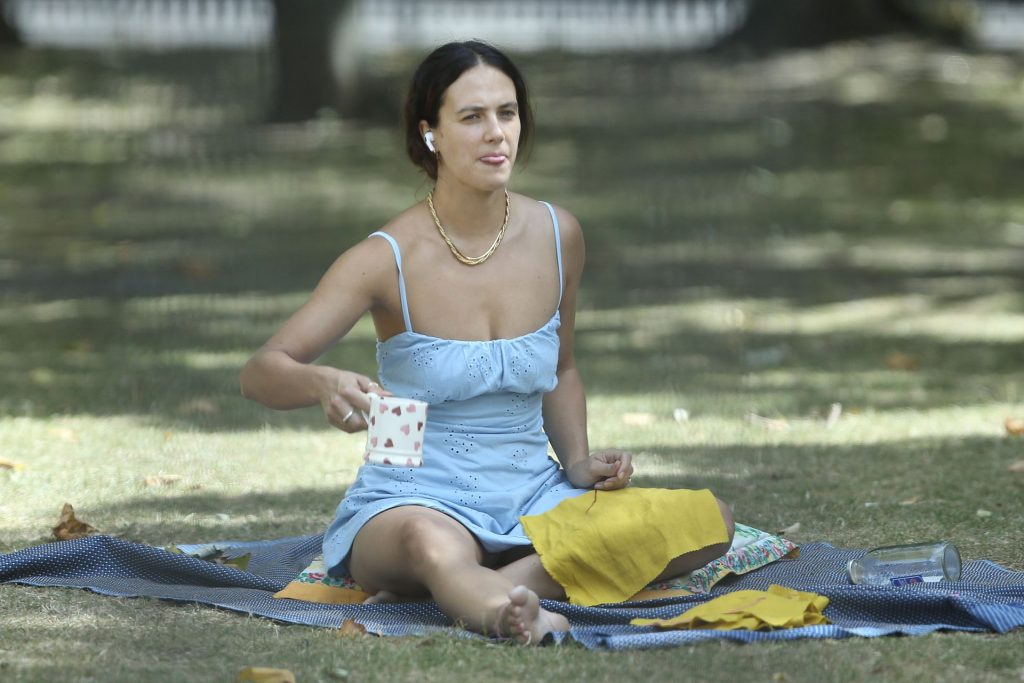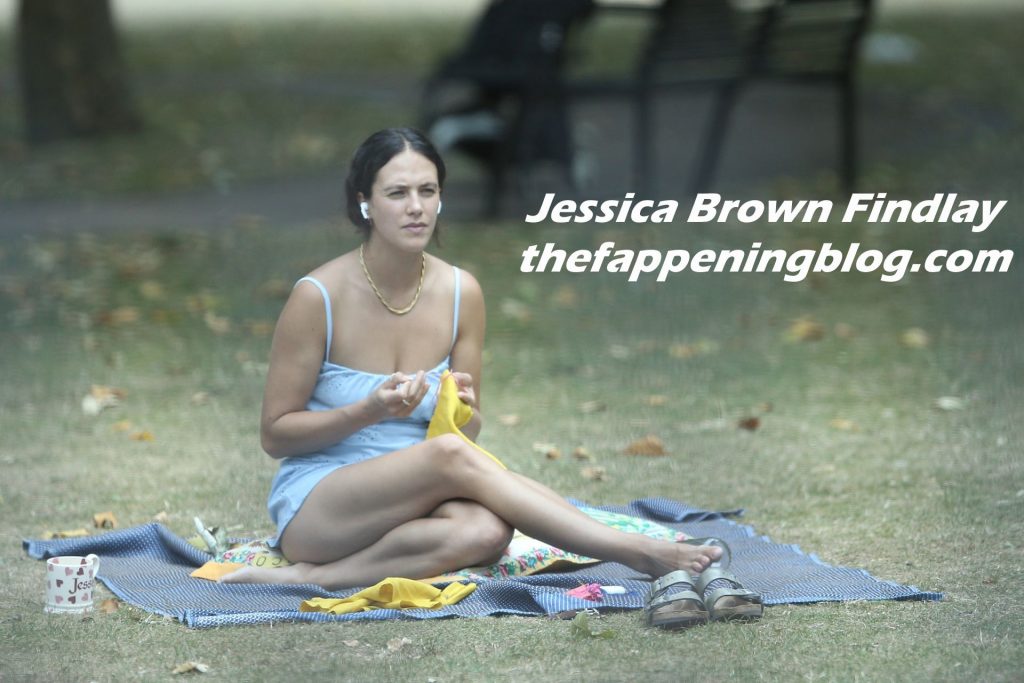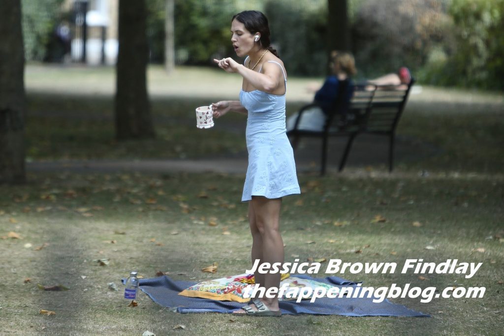Atriz britânica e estrela de The Fappening Jessica Brown Findlay se acomoda em um parque local em Londres, 08/05/2020.