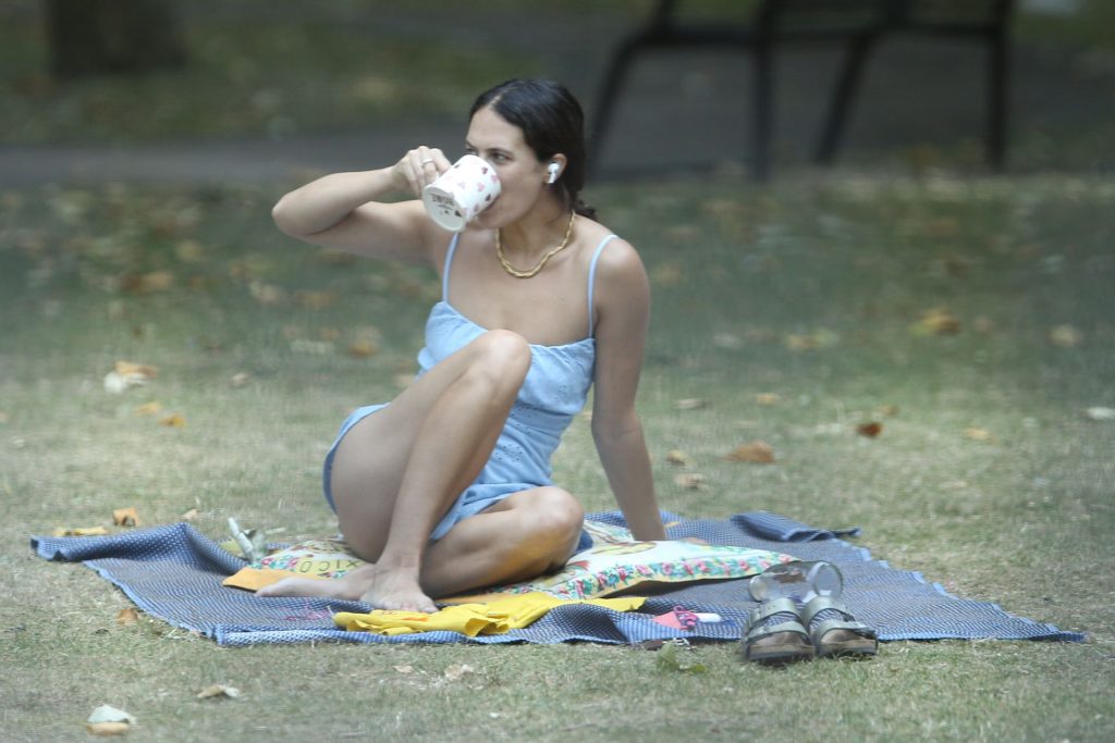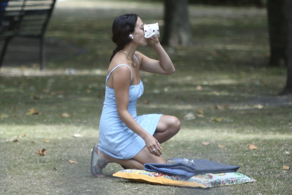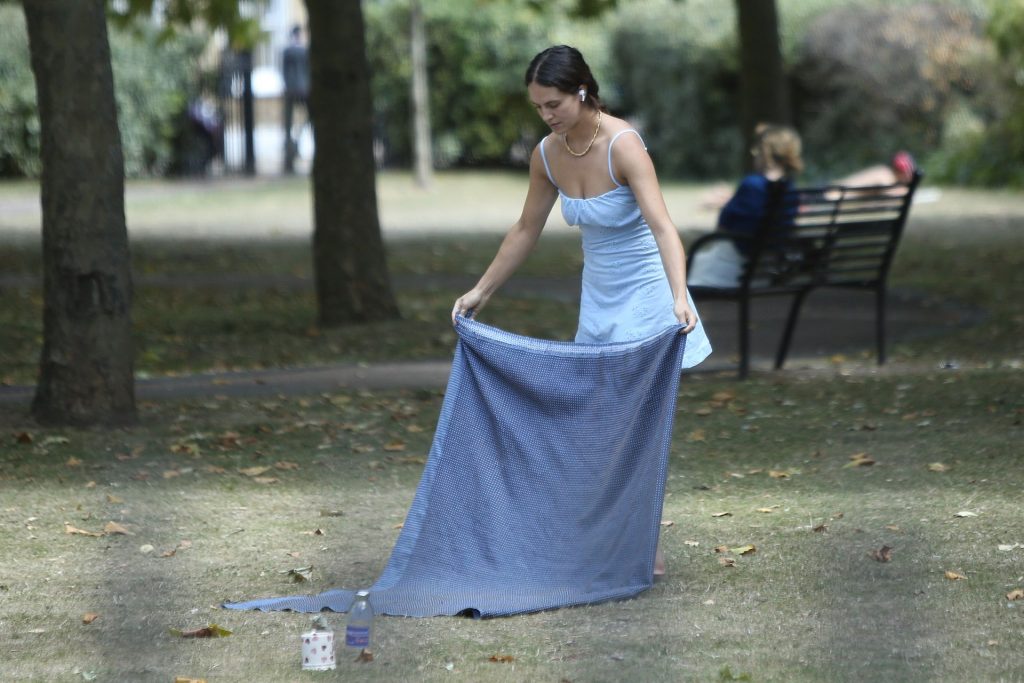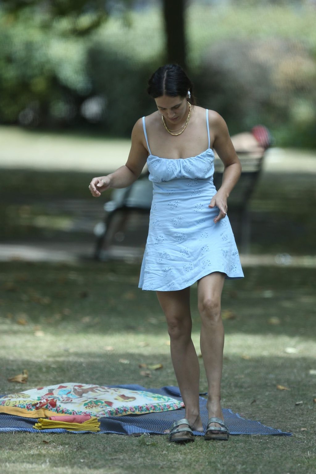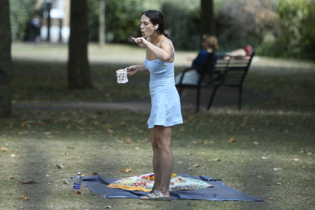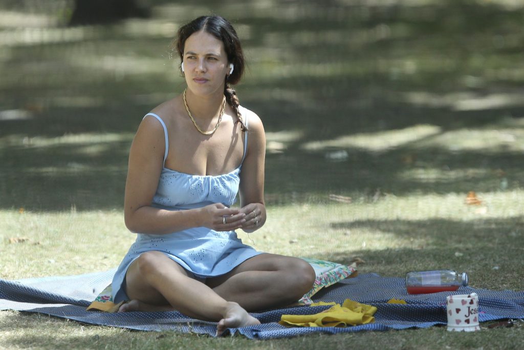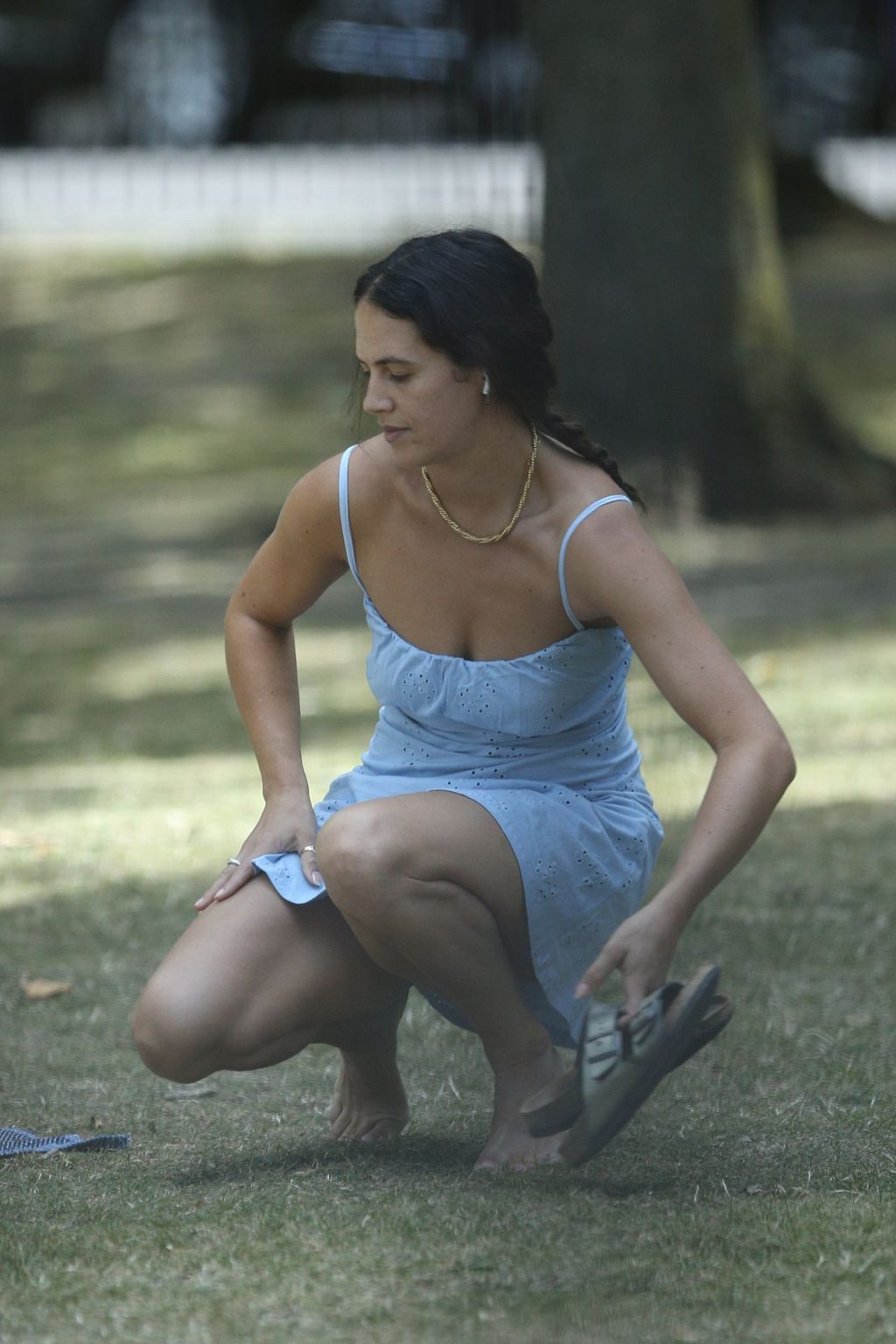 Atriz britânica e estrela de The Fappening Jessica Brown Findlay se acomoda em um parque local em Londres, 08/05/2020.
