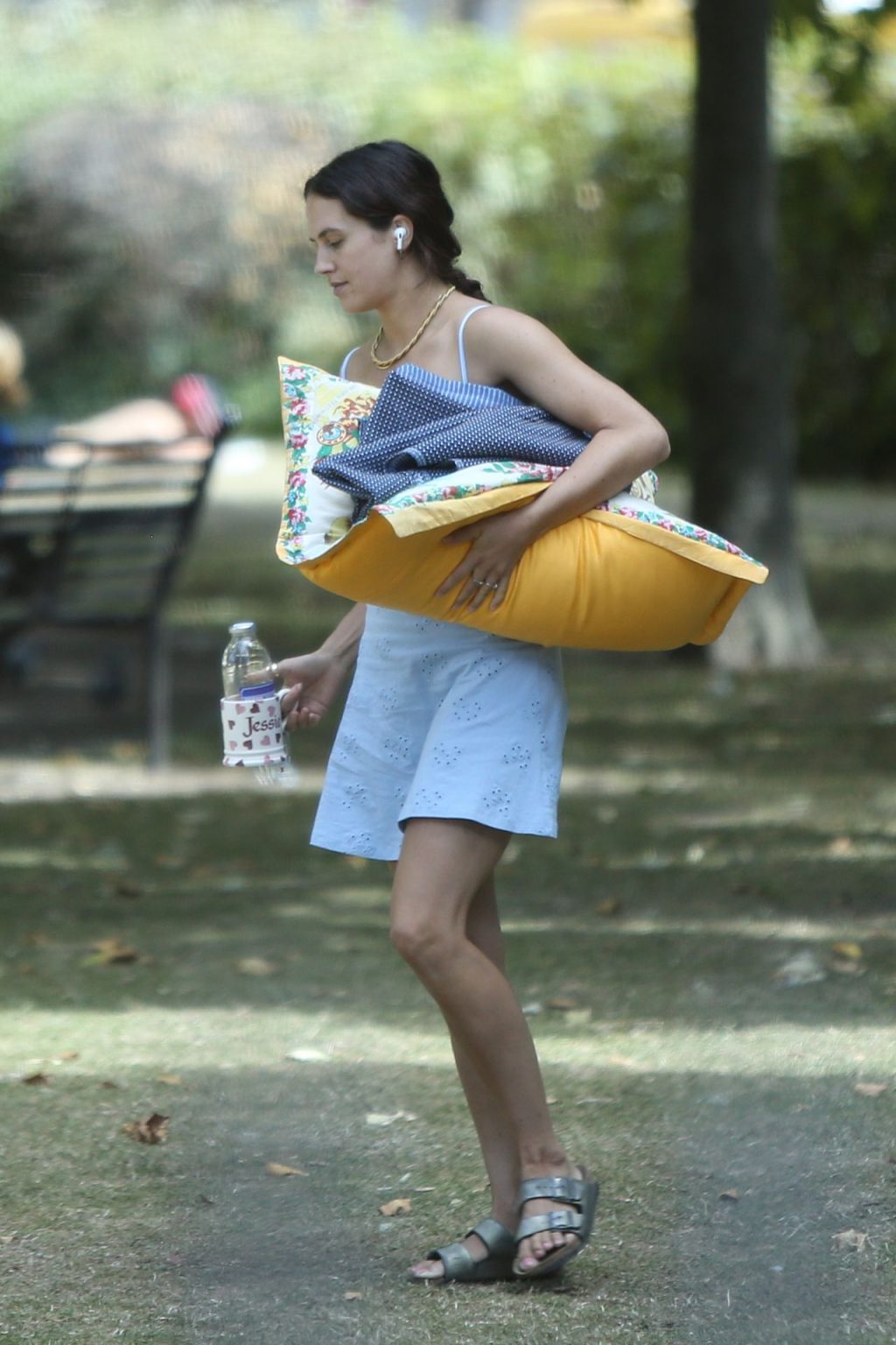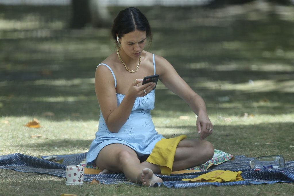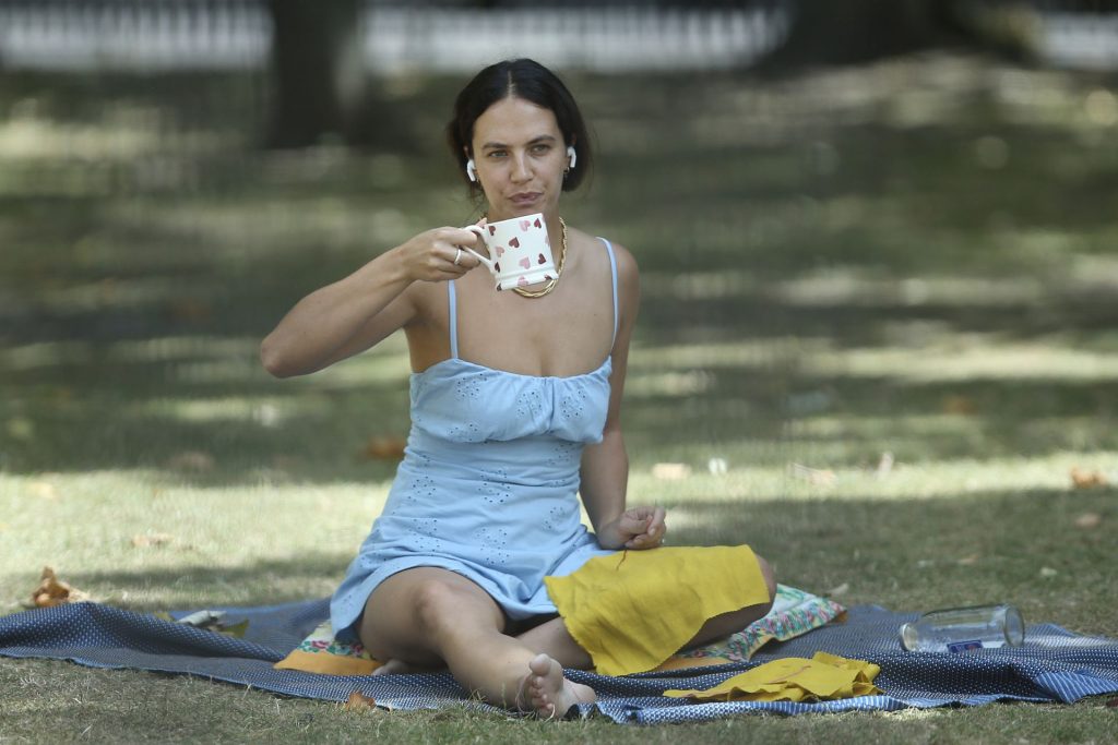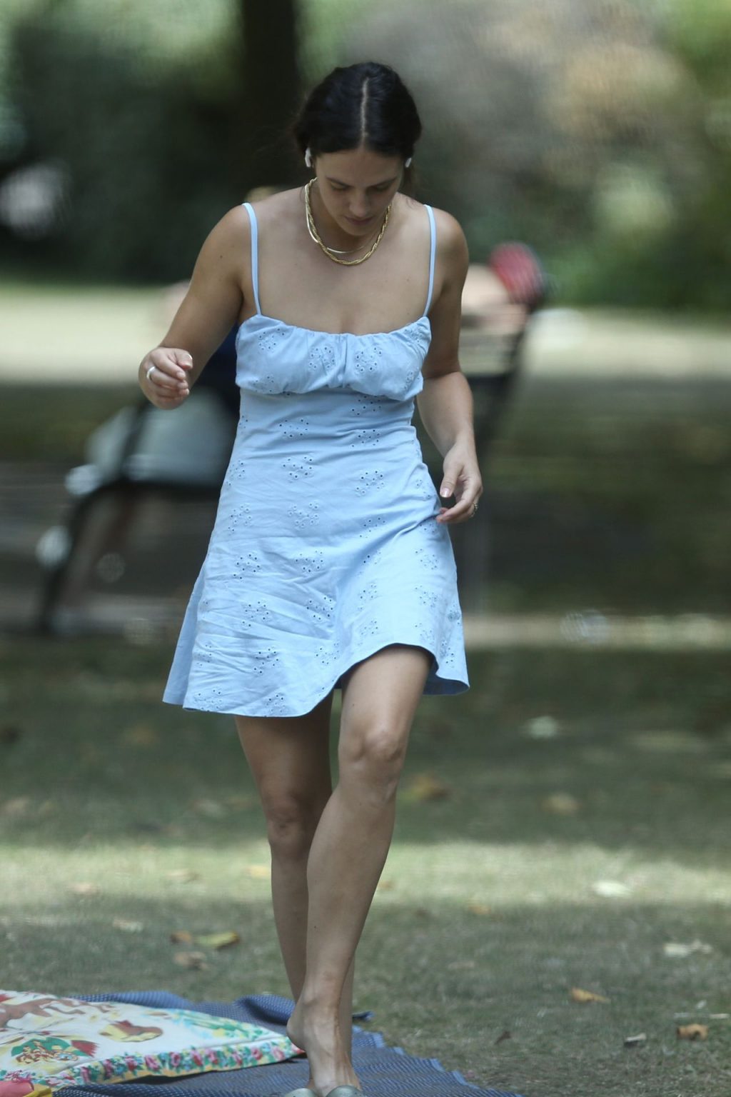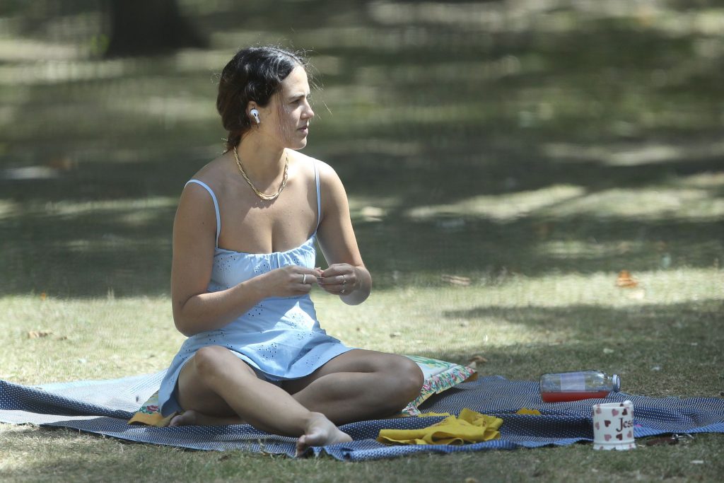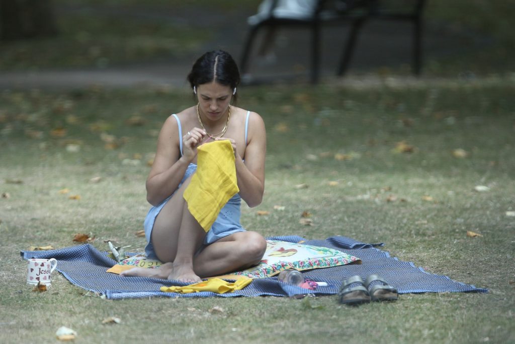 Atriz britânica e estrela de The Fappening Jessica Brown Findlay se acomoda em um parque local em Londres, 08/05/2020.
