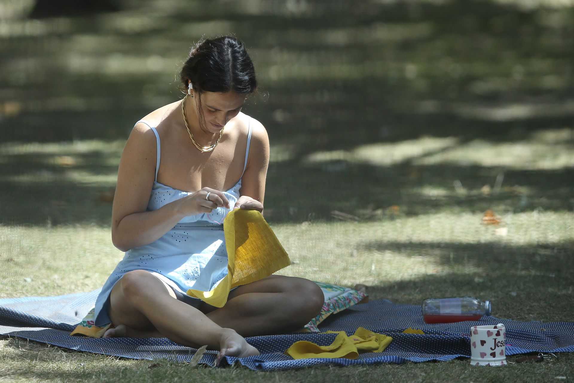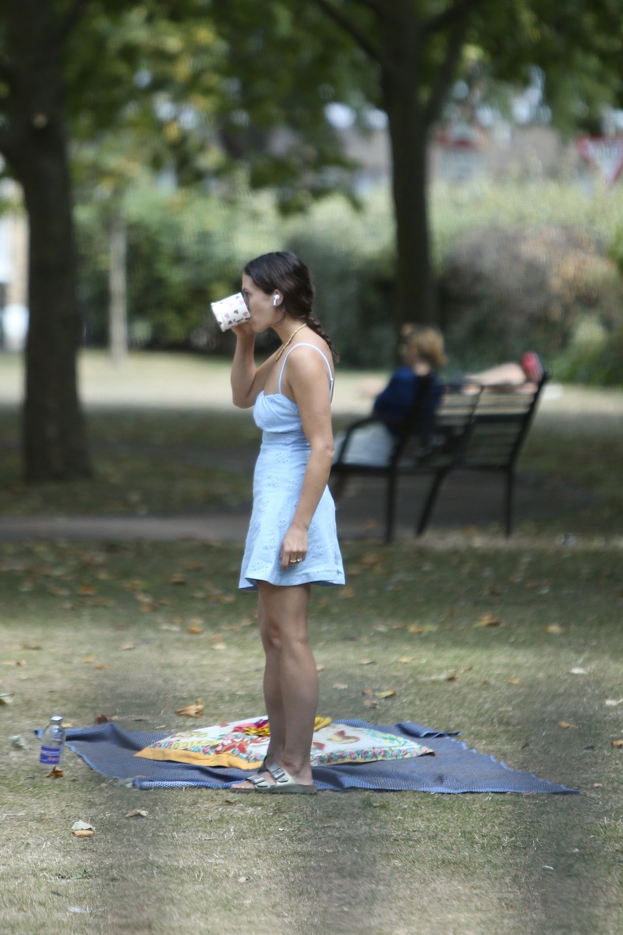 Atriz britânica e estrela de The Fappening Jessica Brown Findlay se acomoda em um parque local em Londres, 08/05/2020.