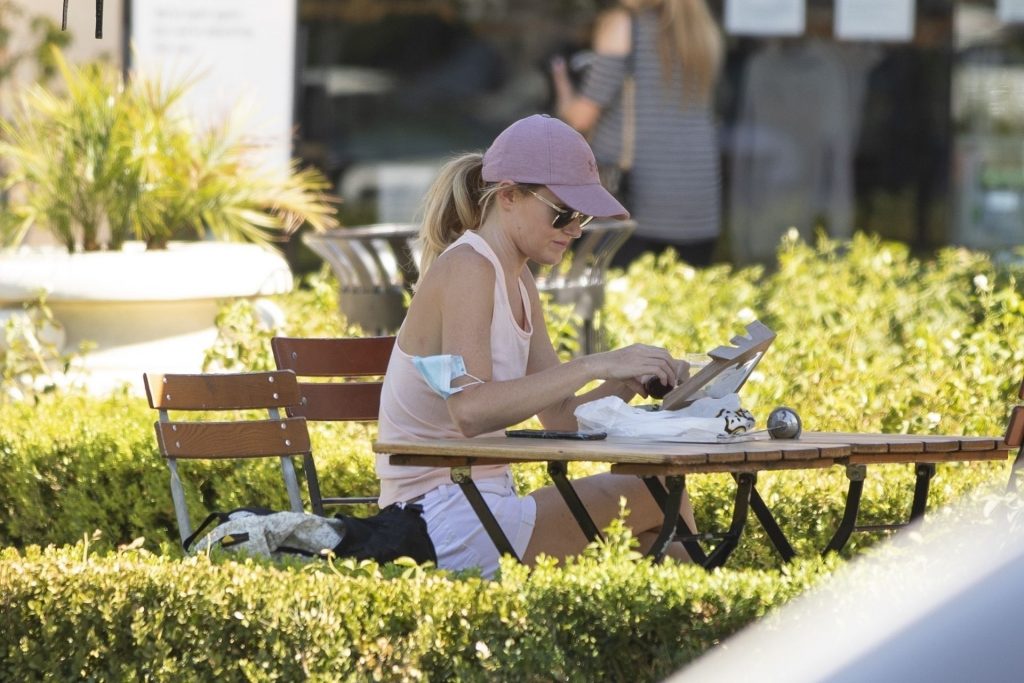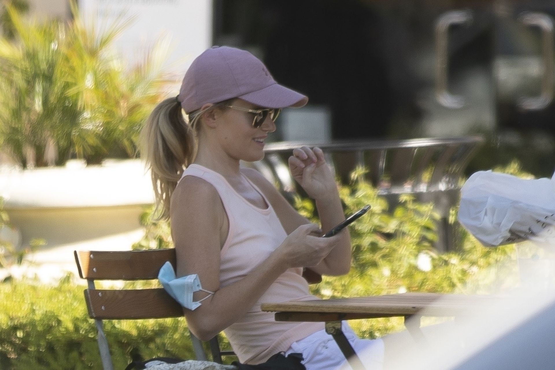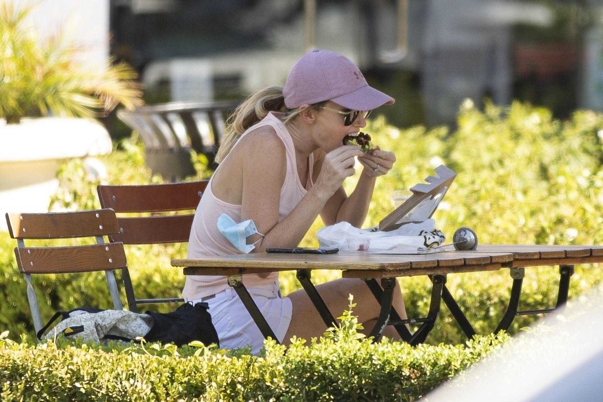David Hasselhoff’s esposa Hayley Roberts é vista se deliciando com uma torrada de abacate sem sutiã em Calabasas, 10/04/2020.