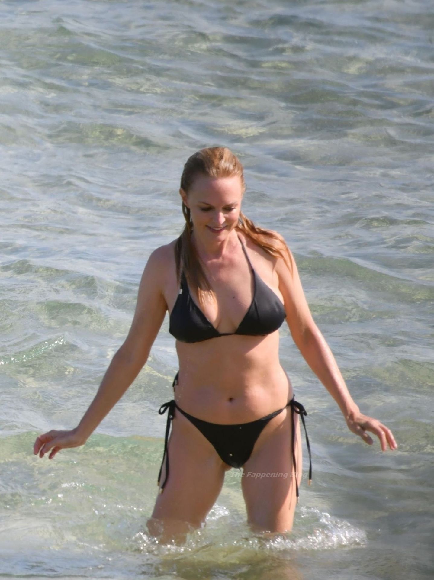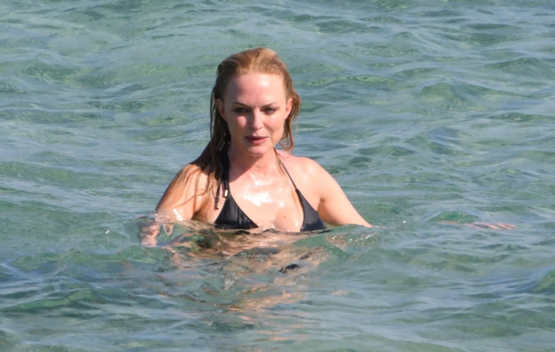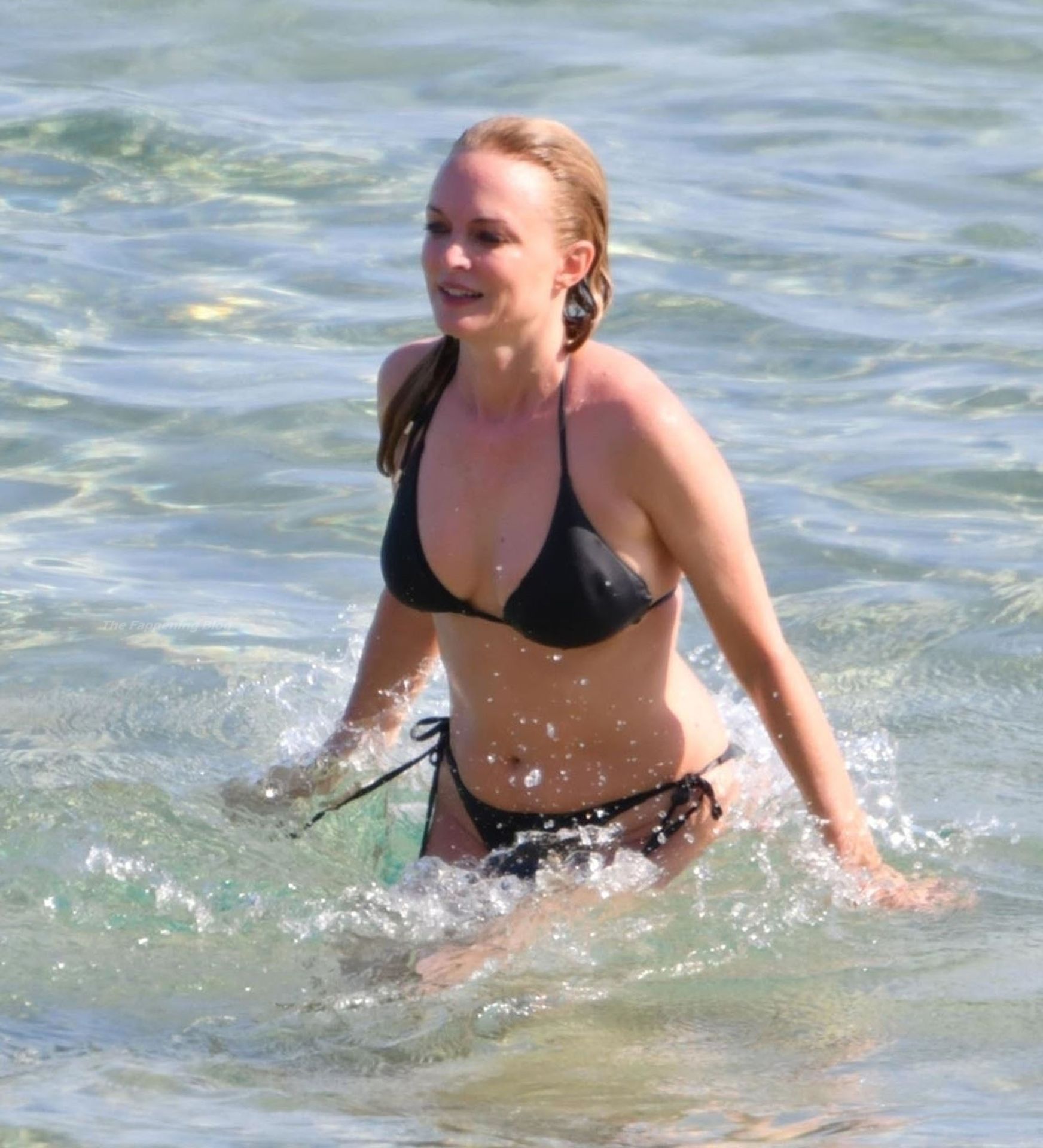 Atriz Heather Graham está incrível aos 51 anos, exibindo sua figura atraente em seu biquíni preto enquanto o casal se divertia sob o sol da Sardenha, 22/07/2021.