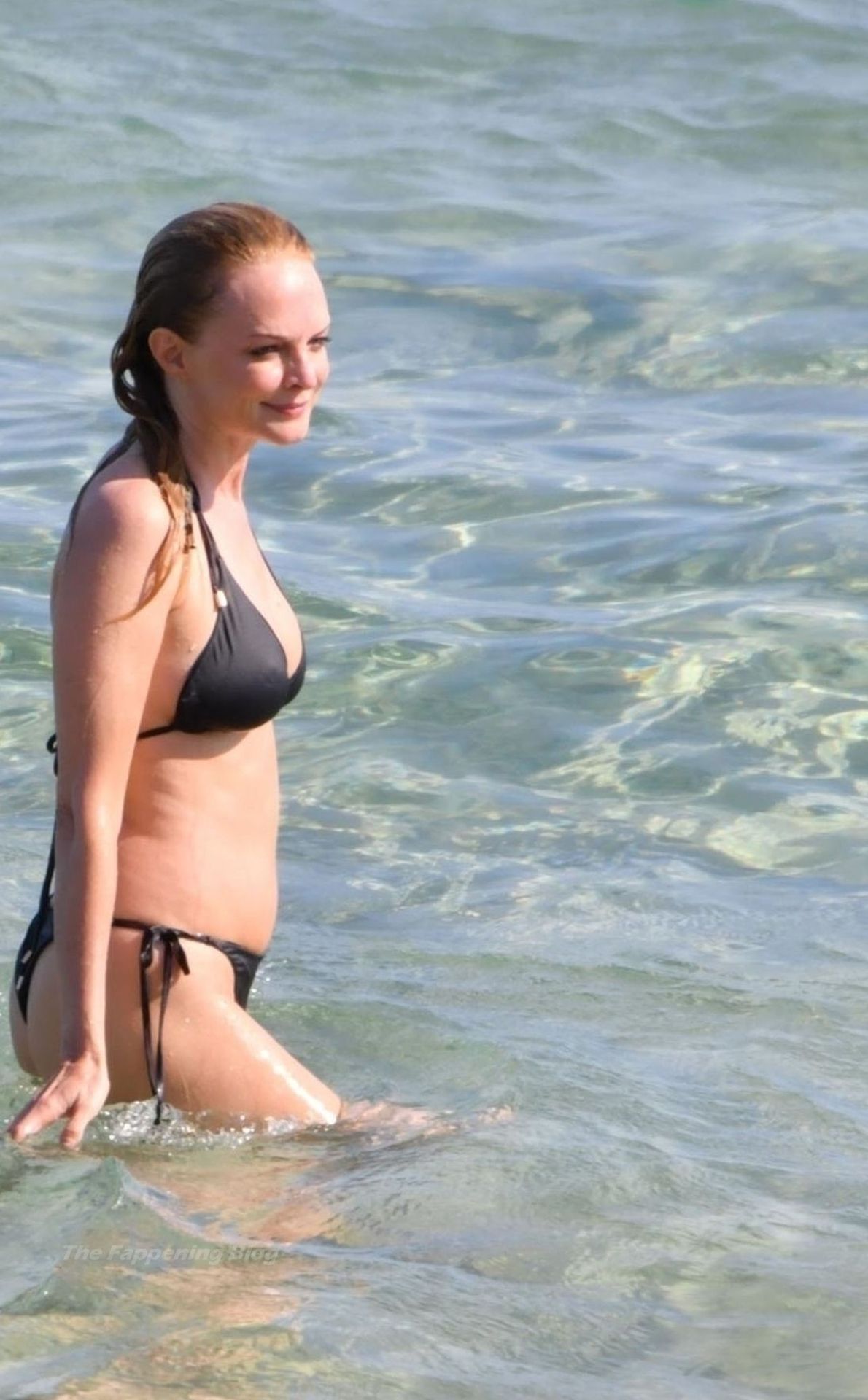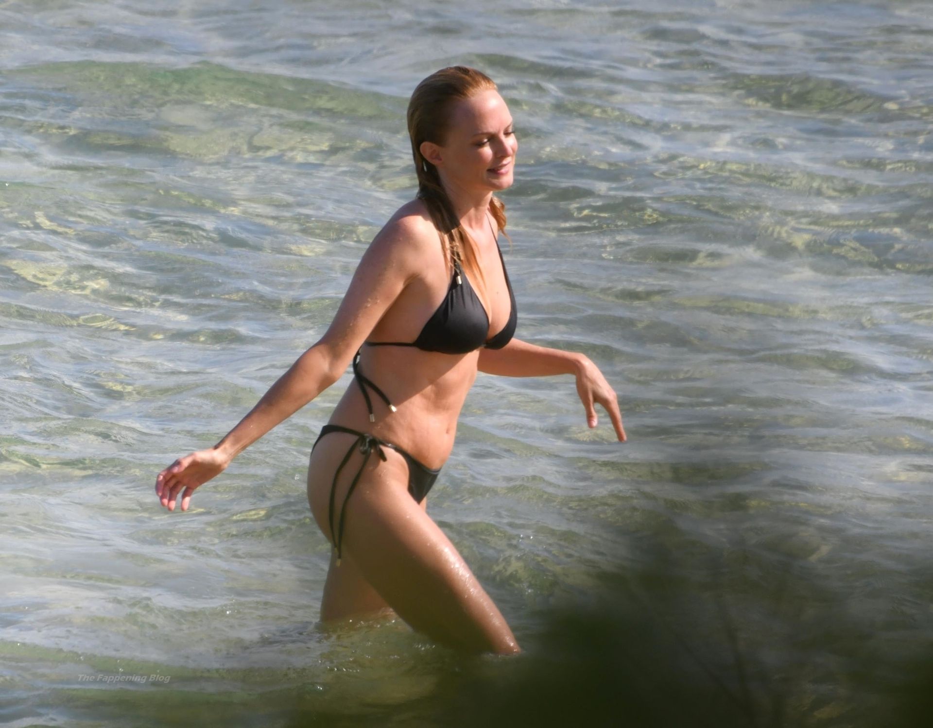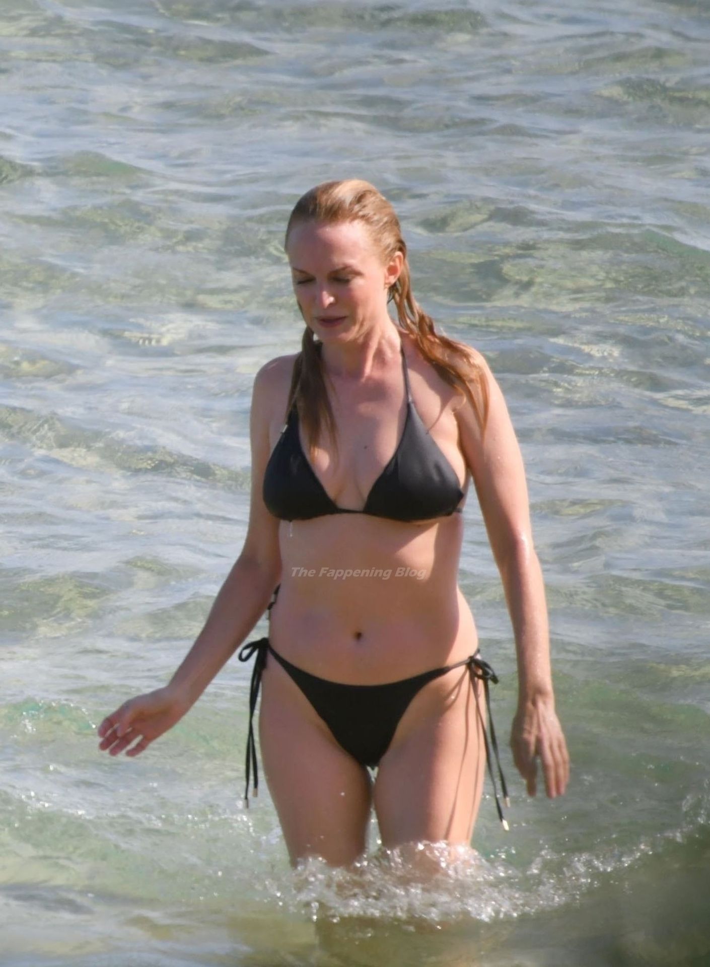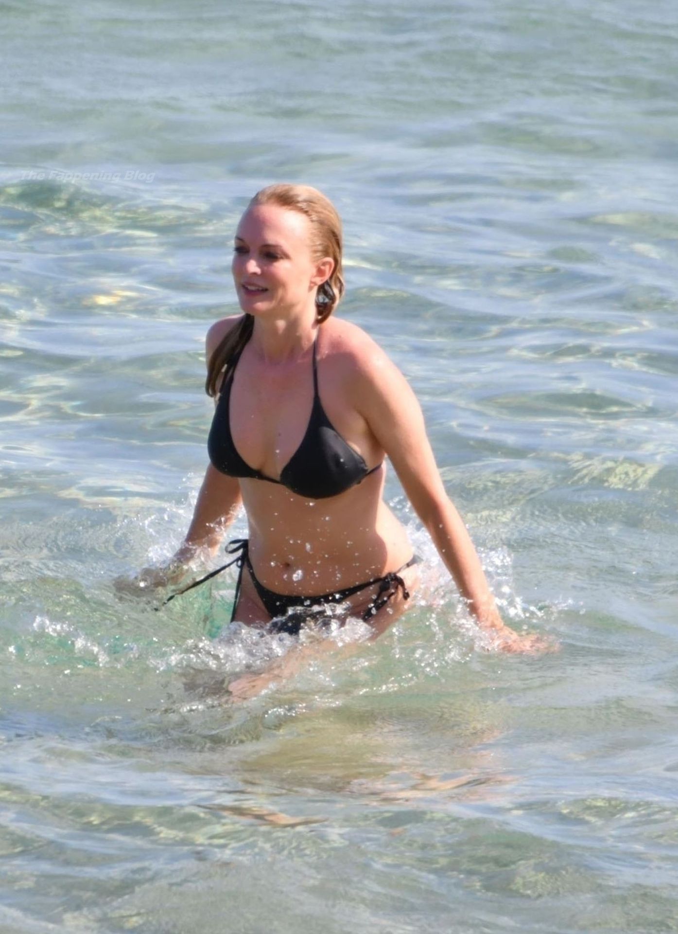 Atriz Heather Graham está incrível aos 51 anos, exibindo sua figura atraente em seu biquíni preto enquanto o casal se divertia sob o sol da Sardenha, 22/07/2021.