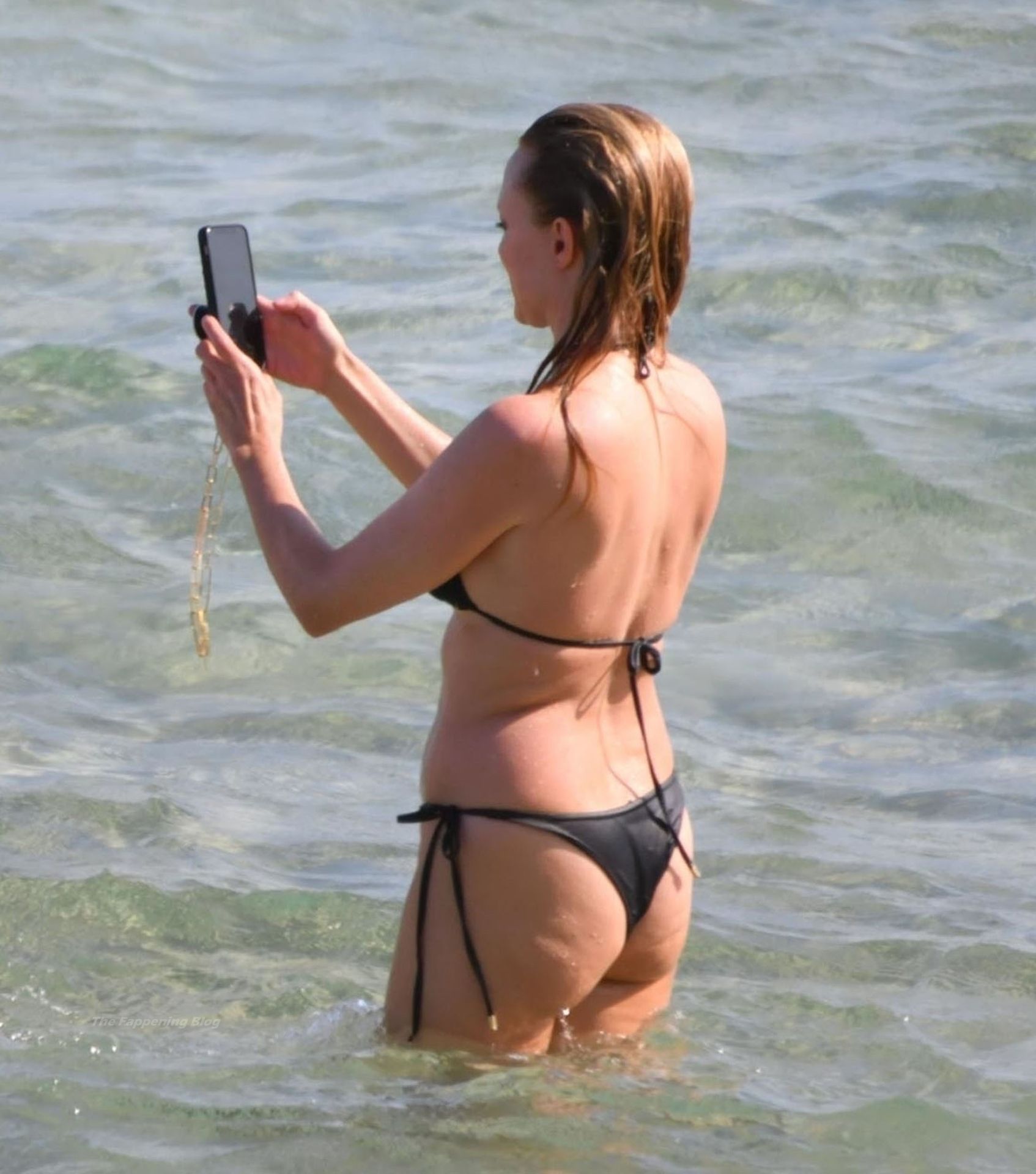Eu realmente gostaria de saber qual iPhone ela tem e, o mais importante, onde ela o colocou ao se afastar mais na água?