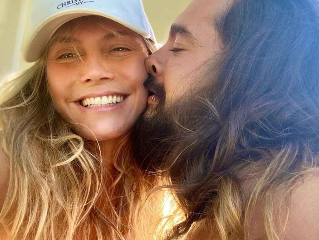 Heidi Klum fica topless e compartilha um beijo com seu marido Tom Kaulitz enquanto eles fazem quarentena juntos. A modelo postou uma série de fotos em sua página nas redes sociais com a legenda: ‘É fim de semana!’😍