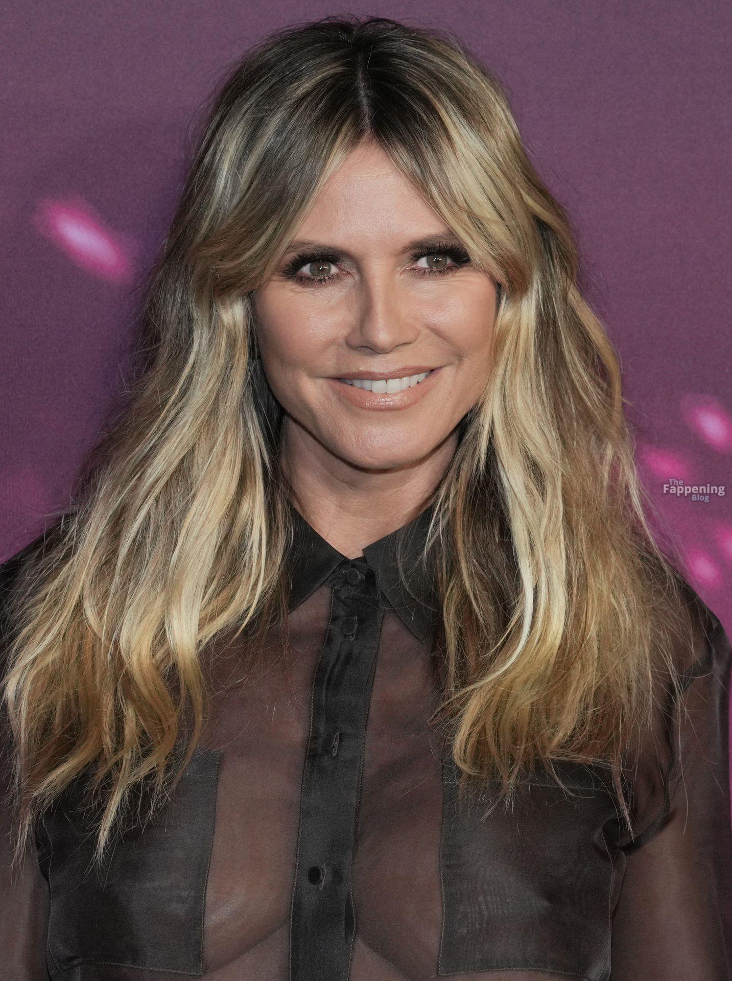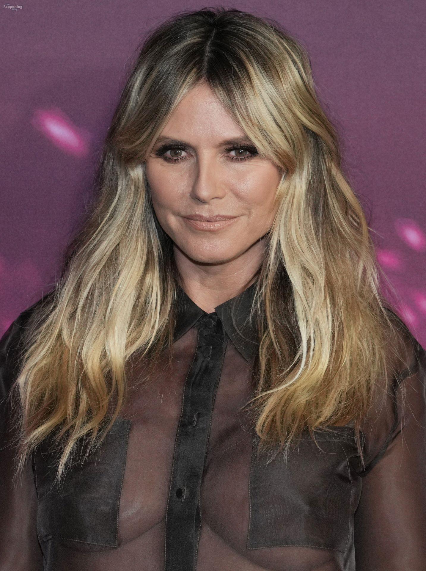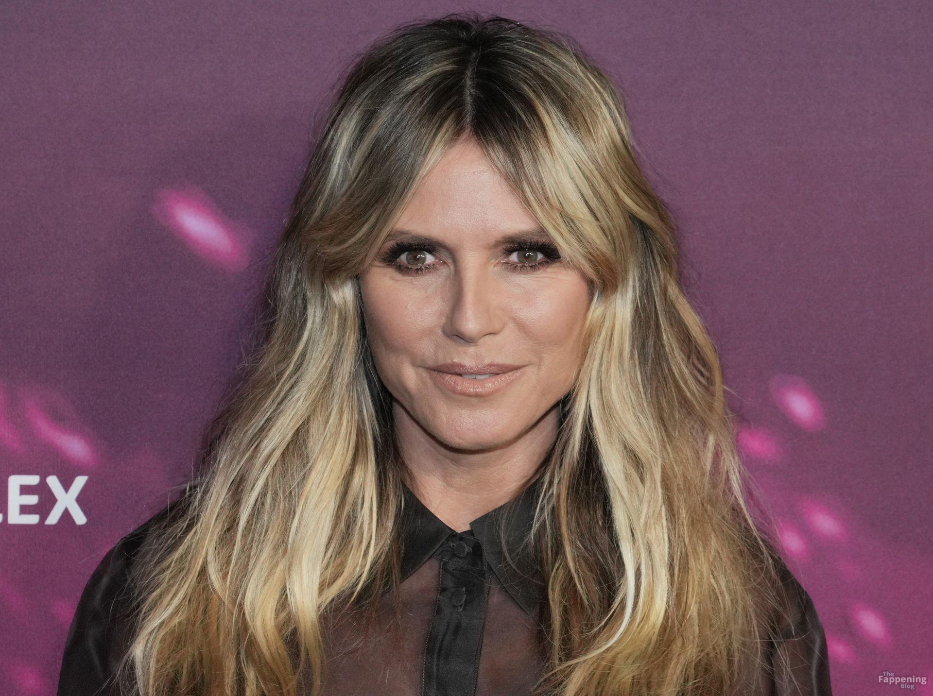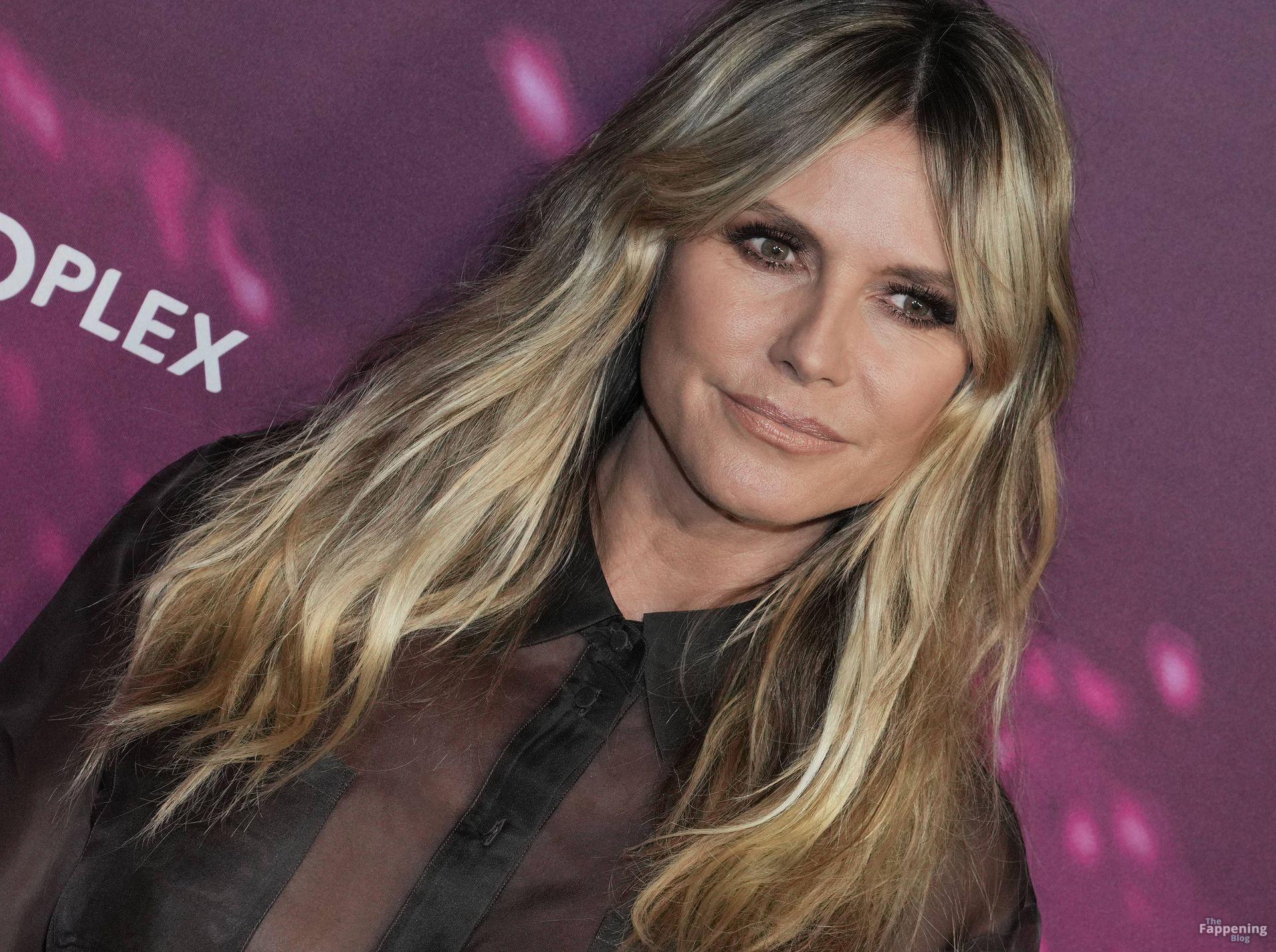 Heidi Klum impressiona com um vestido transparente na estreia de “Infinite Icon: A Visual Memoir” em Los Angeles, realizada no AMC Theaters at The Grove.