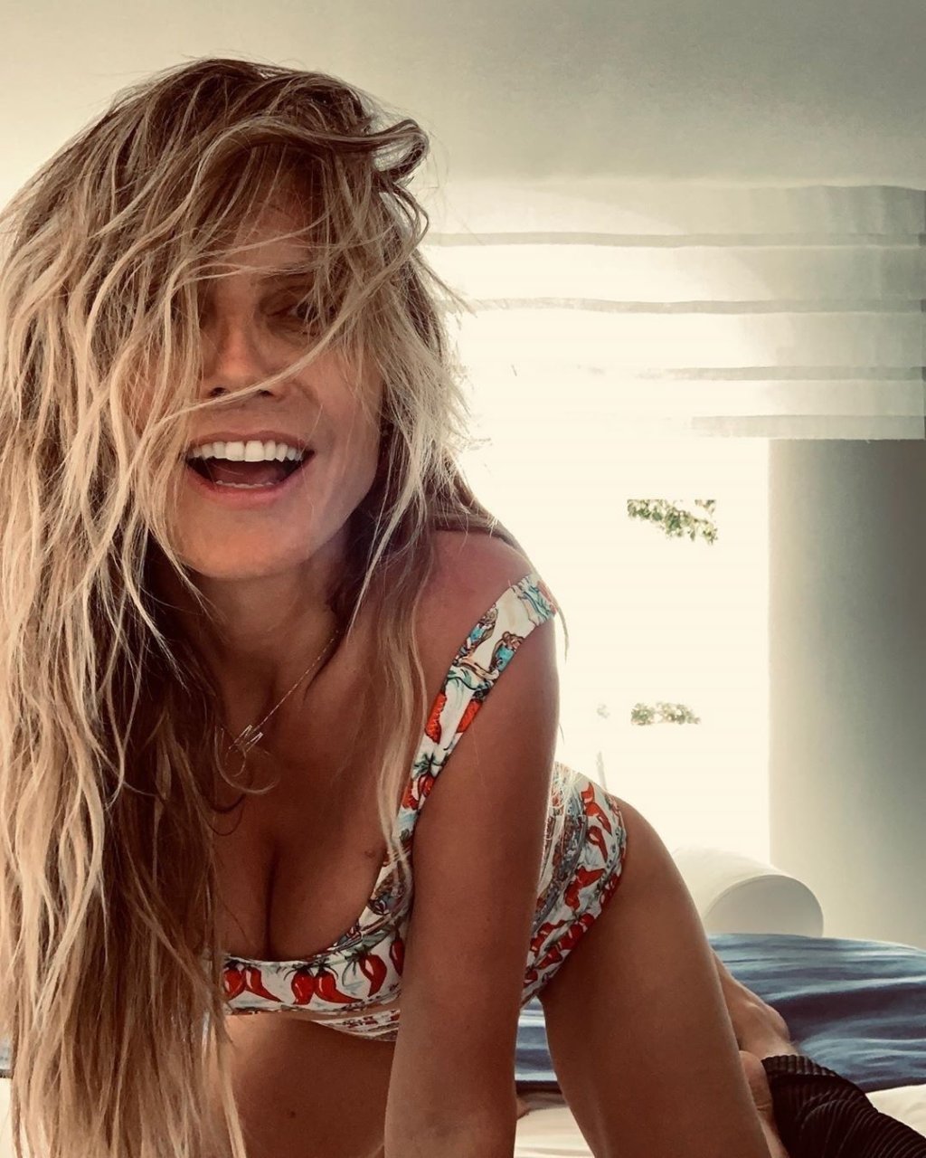 Heidi Klum aumenta a temperatura com um biquíni estampado com pimentas vermelhas ardentes. A supermodelo, 46, exibiu suas curvas em imagens compartilhadas nas redes sociais usando o traje distintivo, que também apresentava pizza e pratos de espaguete. Ela legendou as fotos: “Pizza e Espaguete.”
