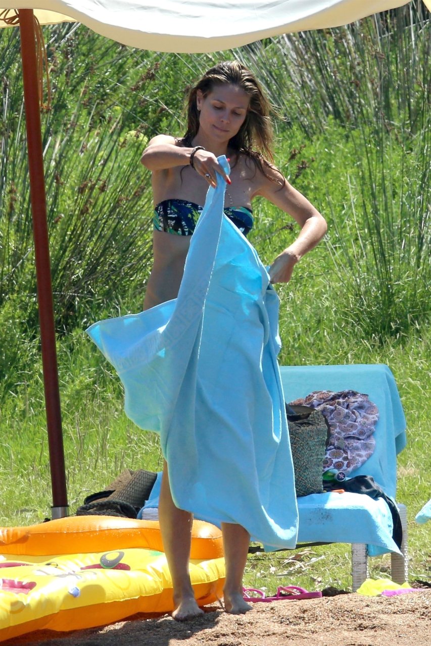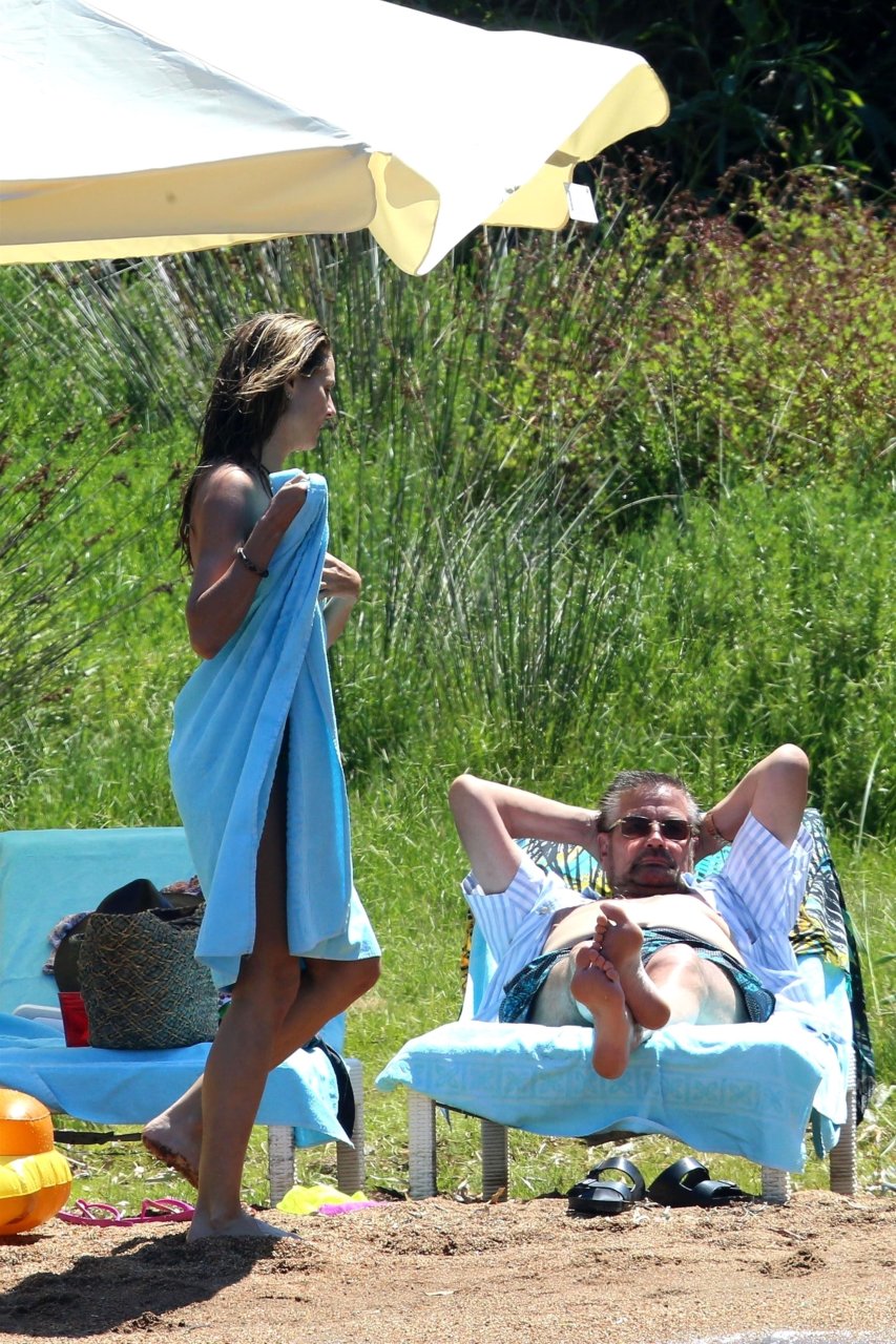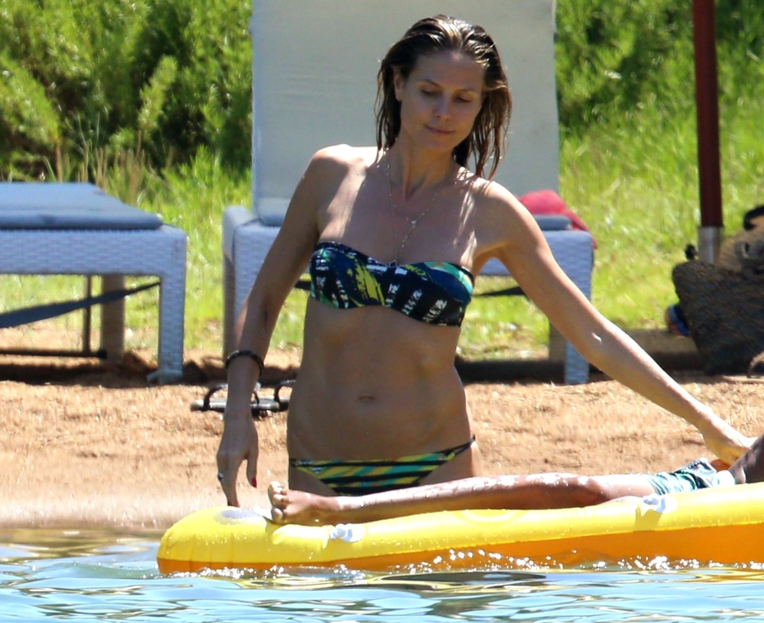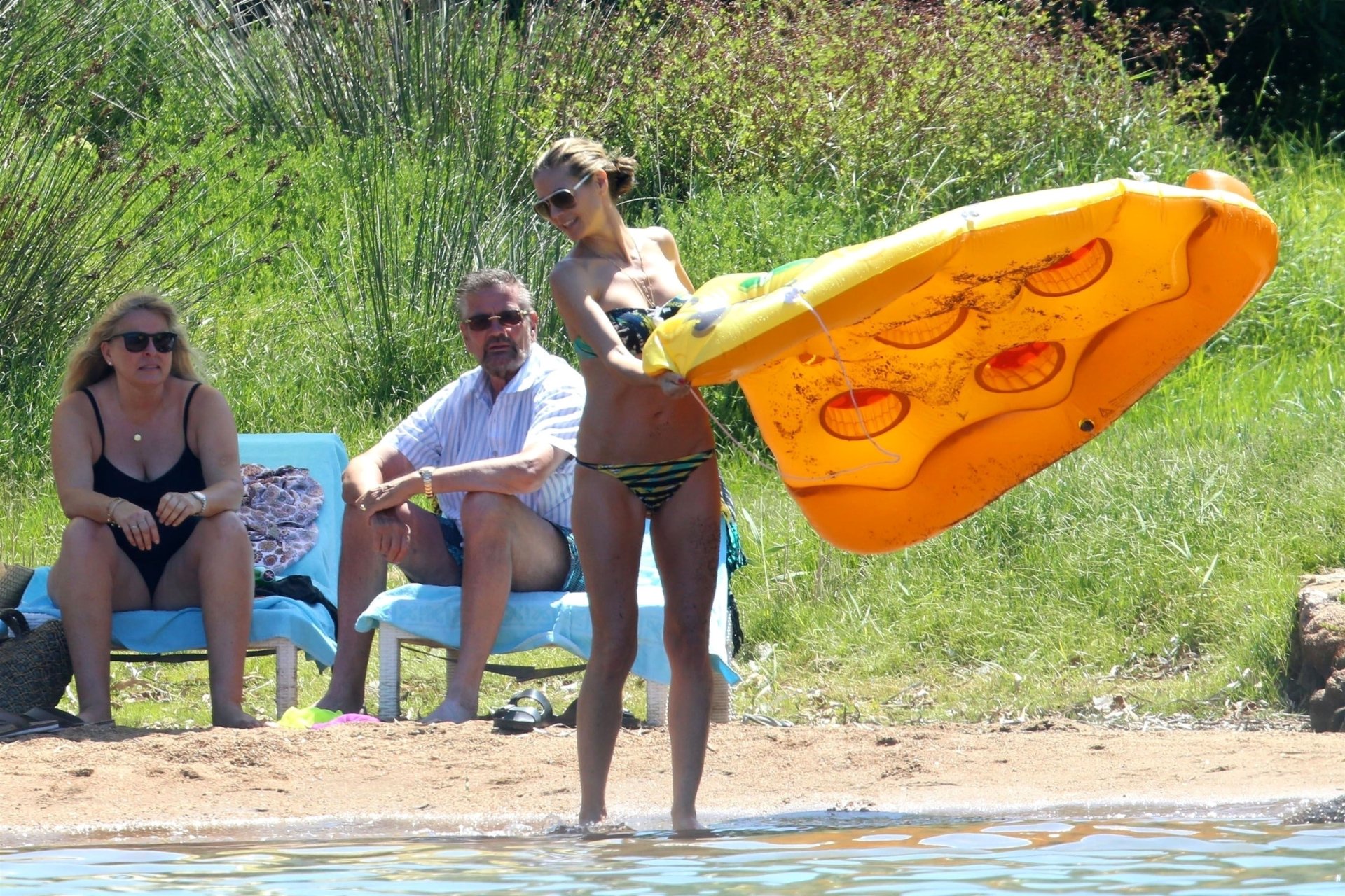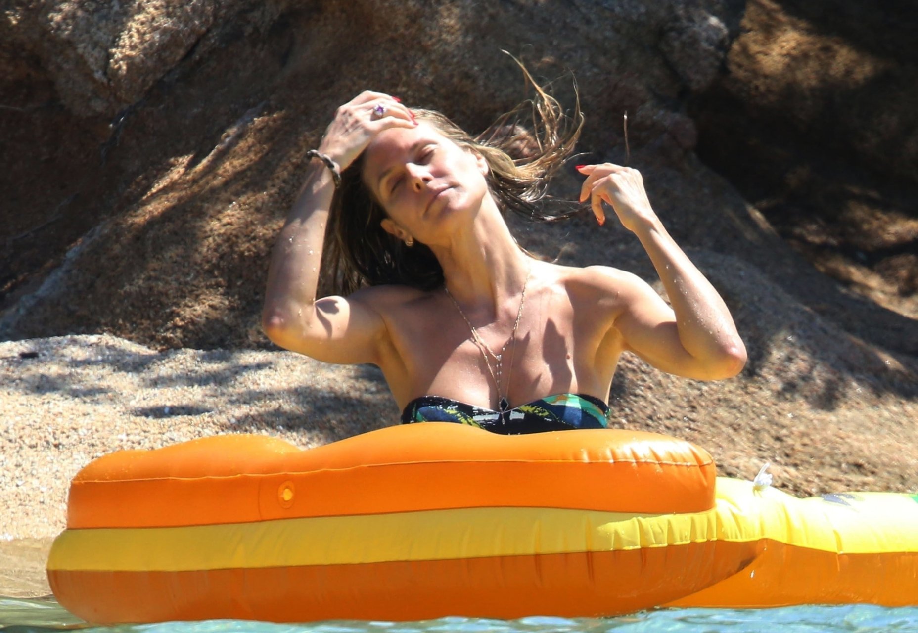 Modelo alemã e estrela de TV Heidi Klum (45) foi vista em um dia lindo usando seu biquíni pequeno e sexy na ilha da Córsega, no Mar Mediterrâneo, em 27/07/2018.