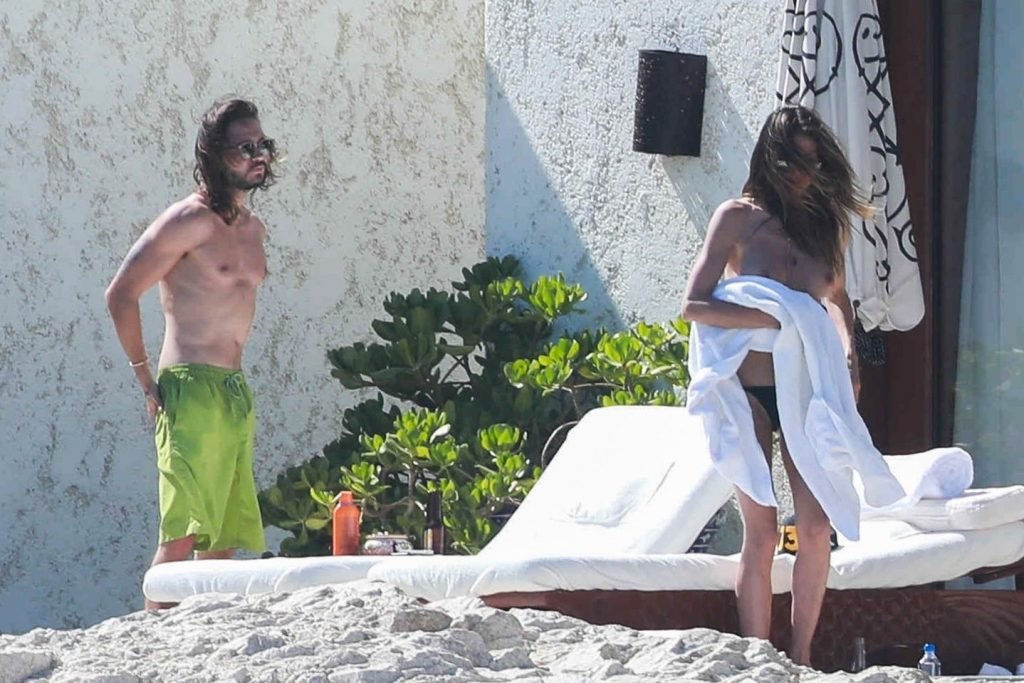 Heidi Klum e seu novo namorado Tom Kaulitz ficam íntimos em umas férias românticas em Cabo San Lucas, México, 08/04/2018. Heidi Klum é modelo, estrela de televisão, produtora, empresária, designer, atriz (Parks and Recreation). Idade – 44 anos.