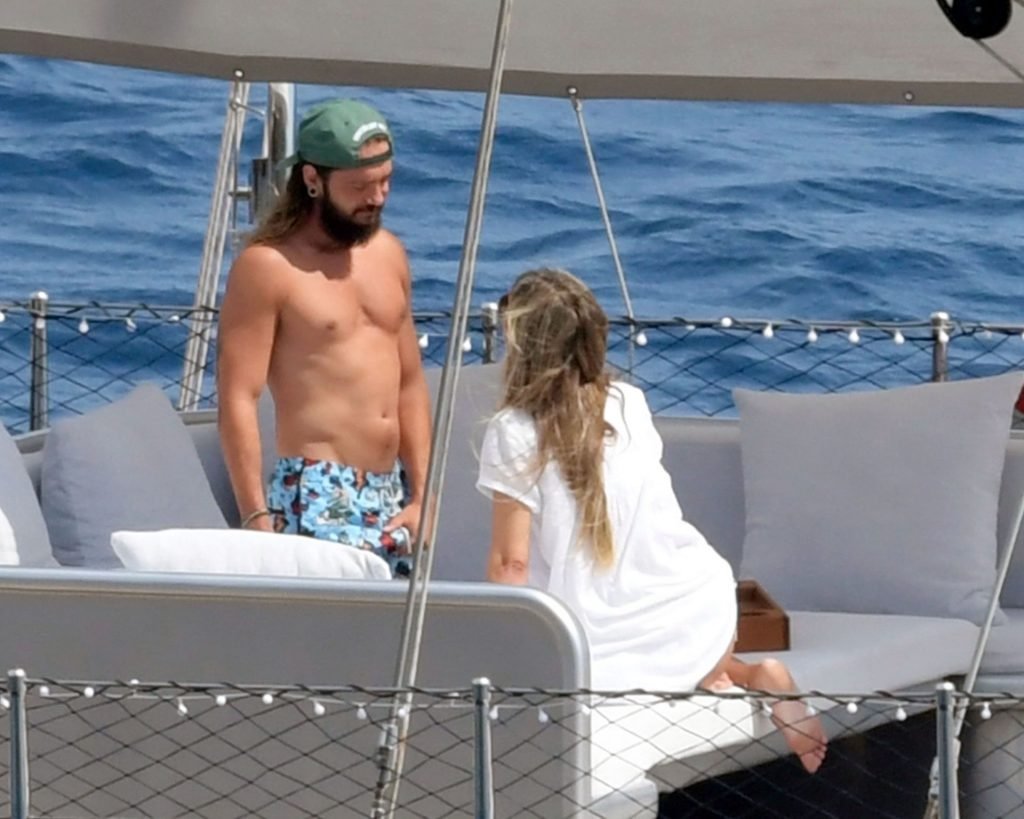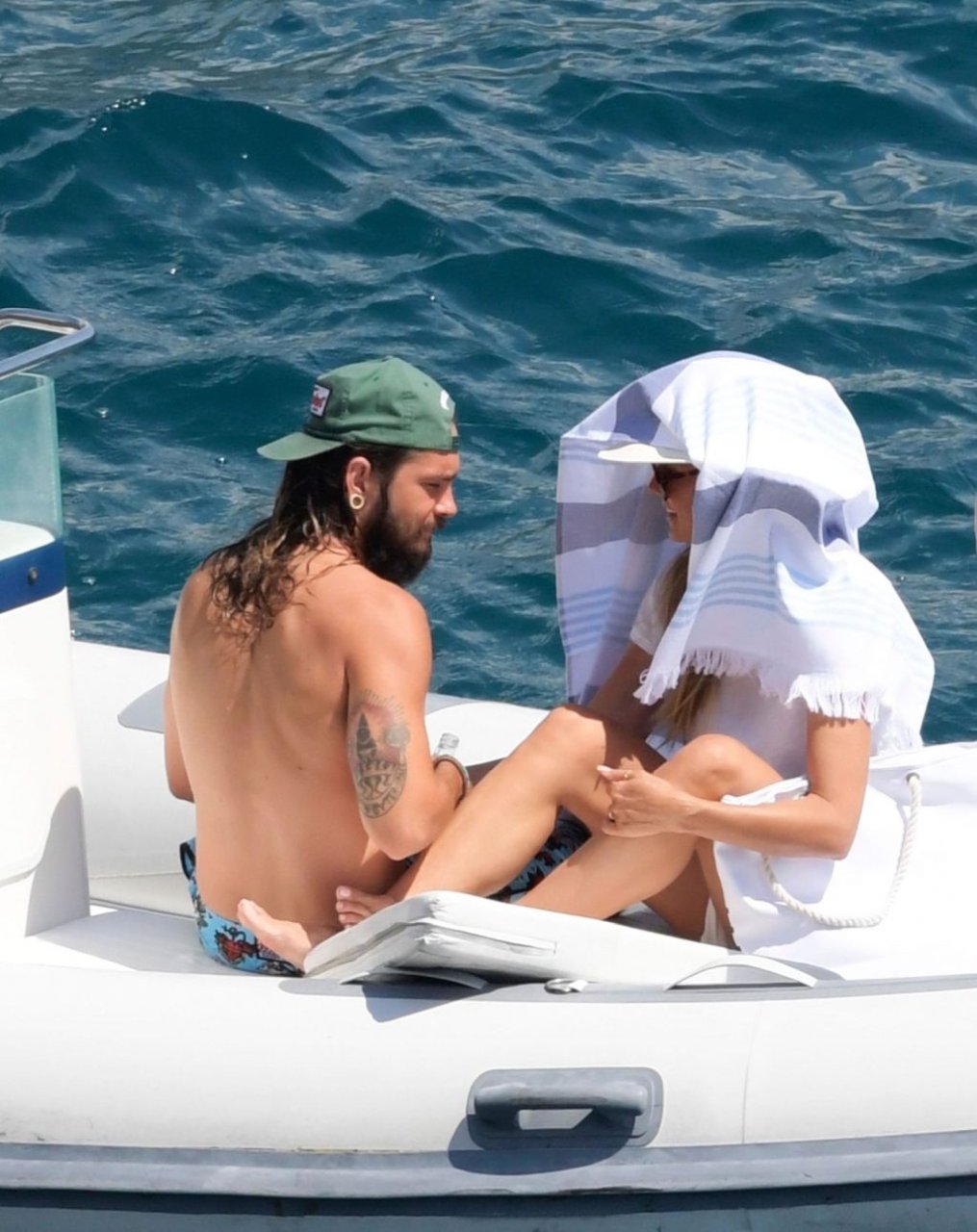 Ex-anjo da Victoria’s Secret, a modelo alemã Heidi Klum, que recentemente se casou com seu guitarrista de rock barbudo Tom Kaulitz em uma cerimônia luxuosa na Itália, foi vista em sua lua de mel em Capri, 19/08/2019.