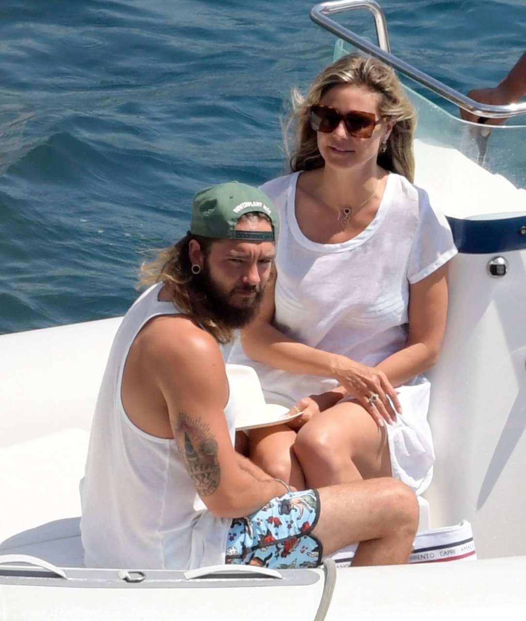 Ex-anjo da Victoria’s Secret, a modelo alemã Heidi Klum, que recentemente se casou com seu guitarrista de rock barbudo Tom Kaulitz em uma cerimônia luxuosa na Itália, foi vista em sua lua de mel em Capri, 19/08/2019.