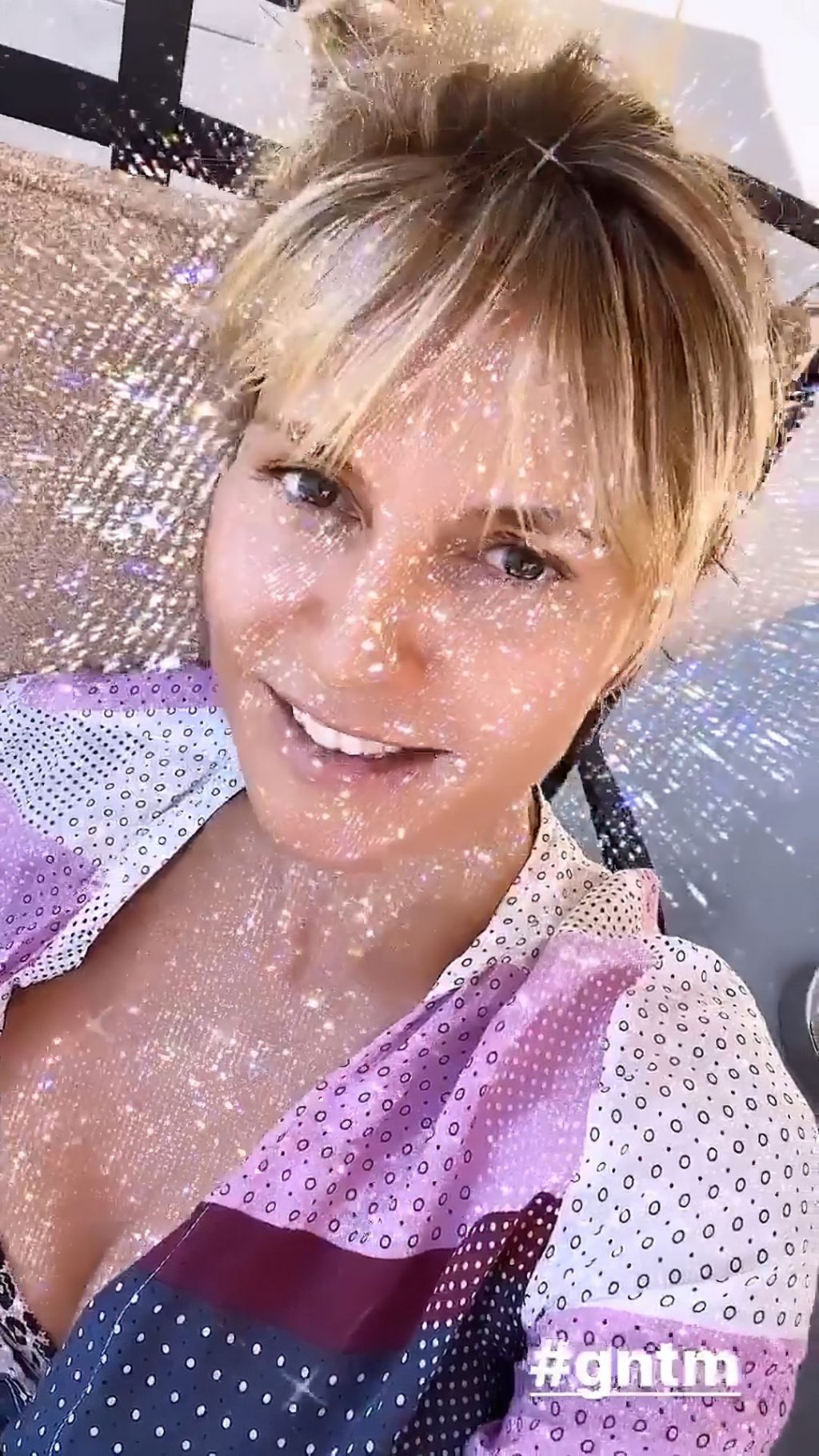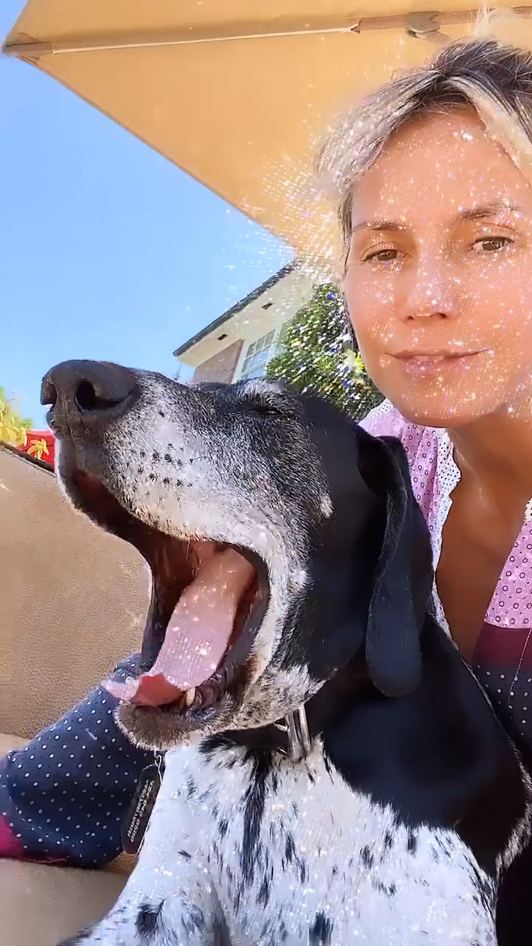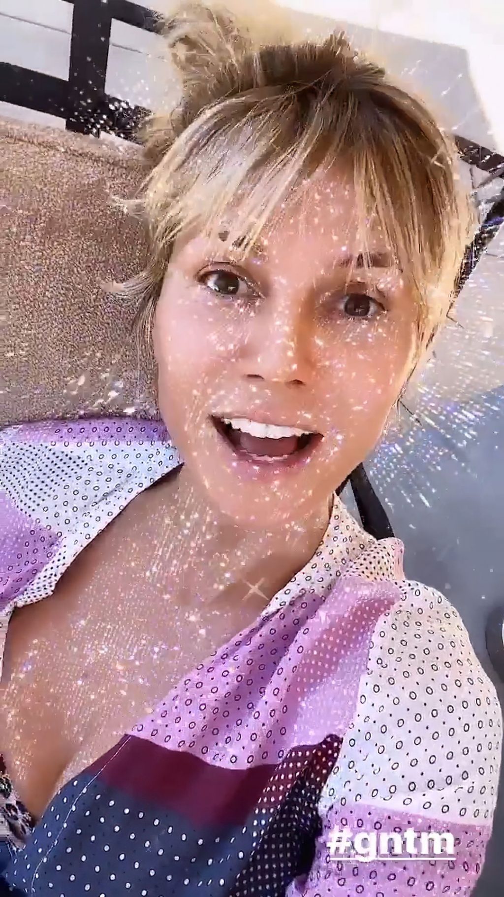 A superestrela alemã Heidi Klum exibe seus seios MILF no vídeo ao vivo do Instagram abaixo, 27/08/2020.