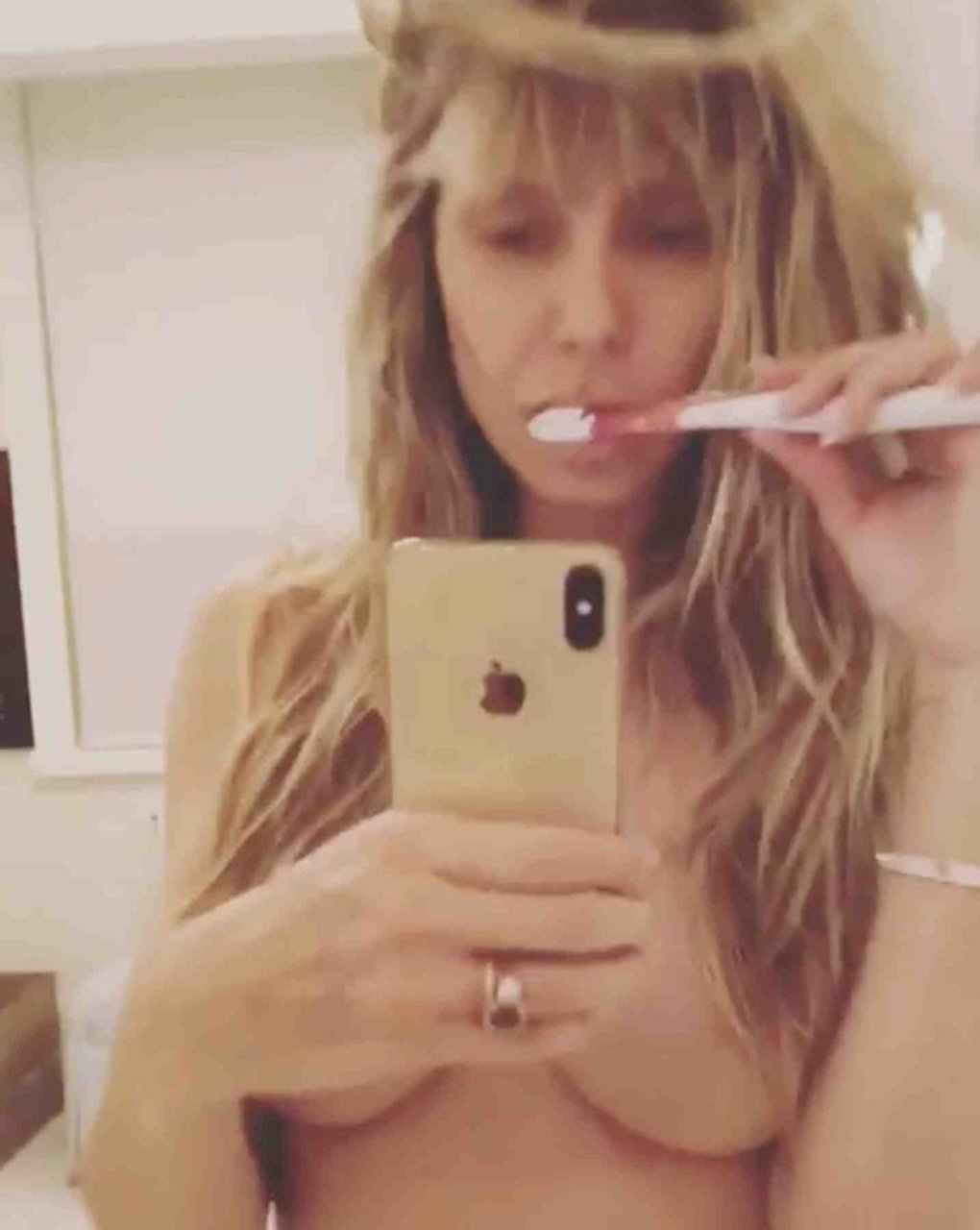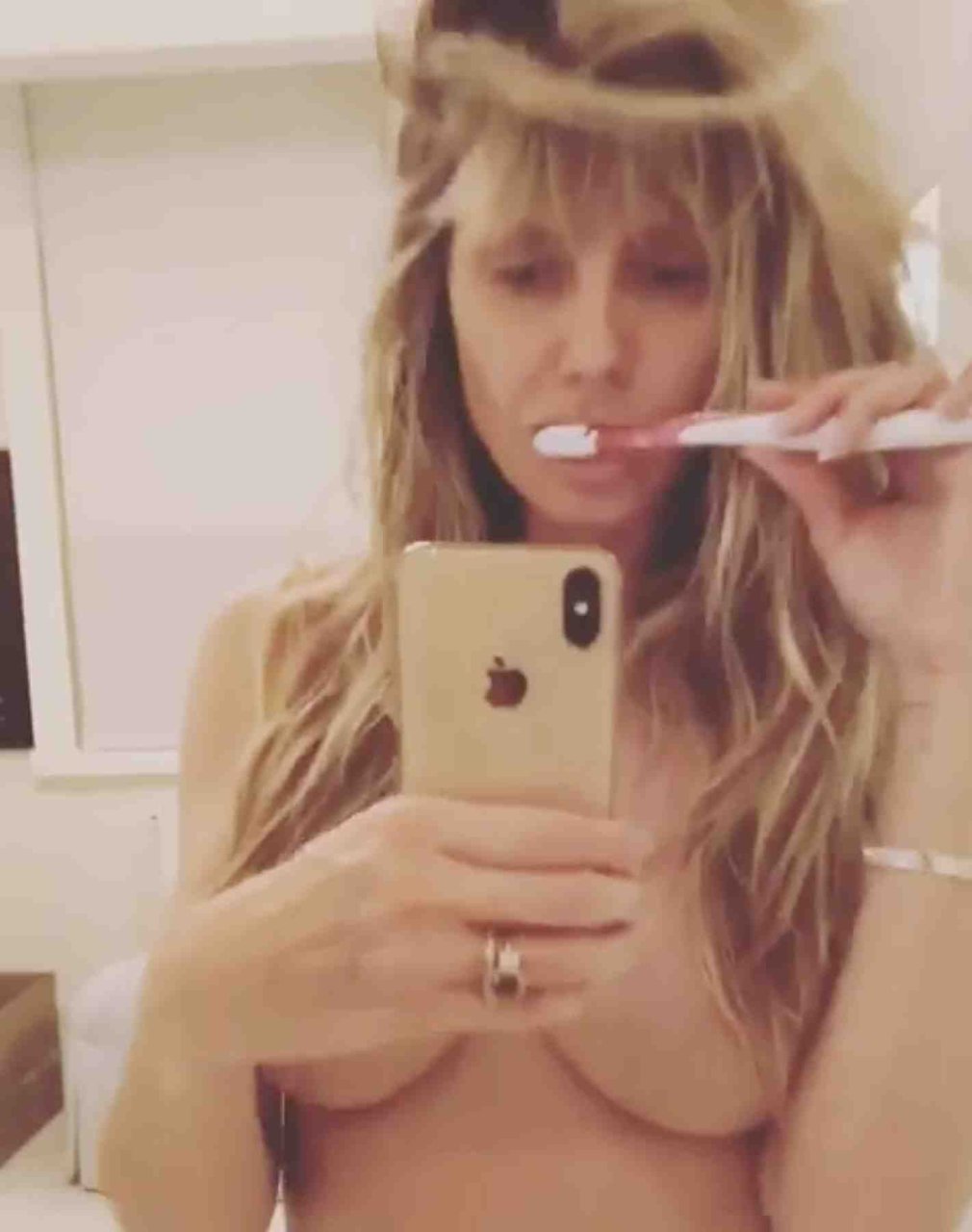 Heidi Klum (46) é fotografada escovando os dentes topless – Instagram, 15/06/2019.
