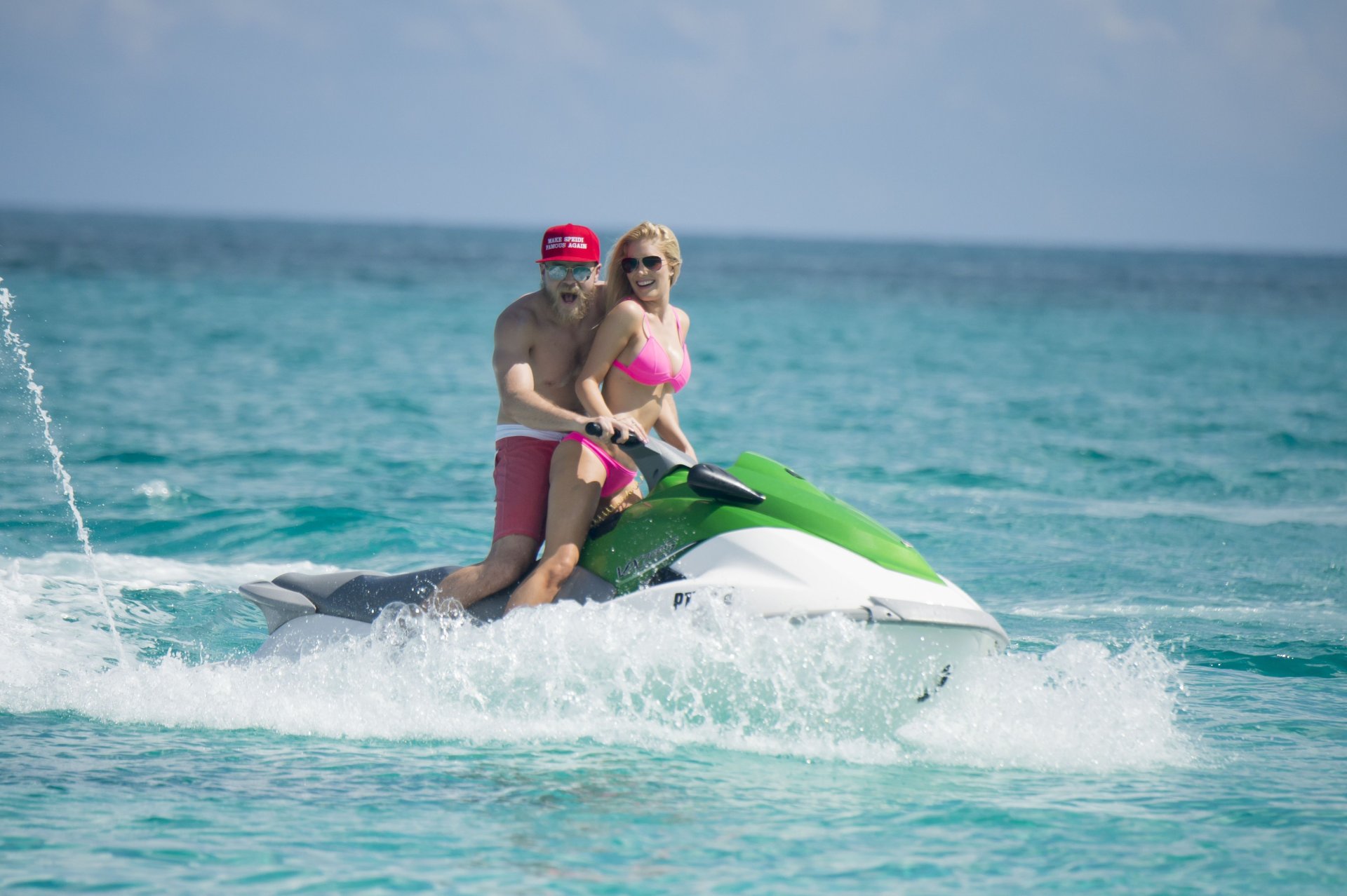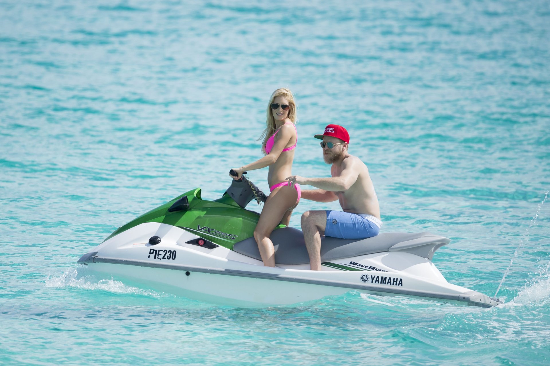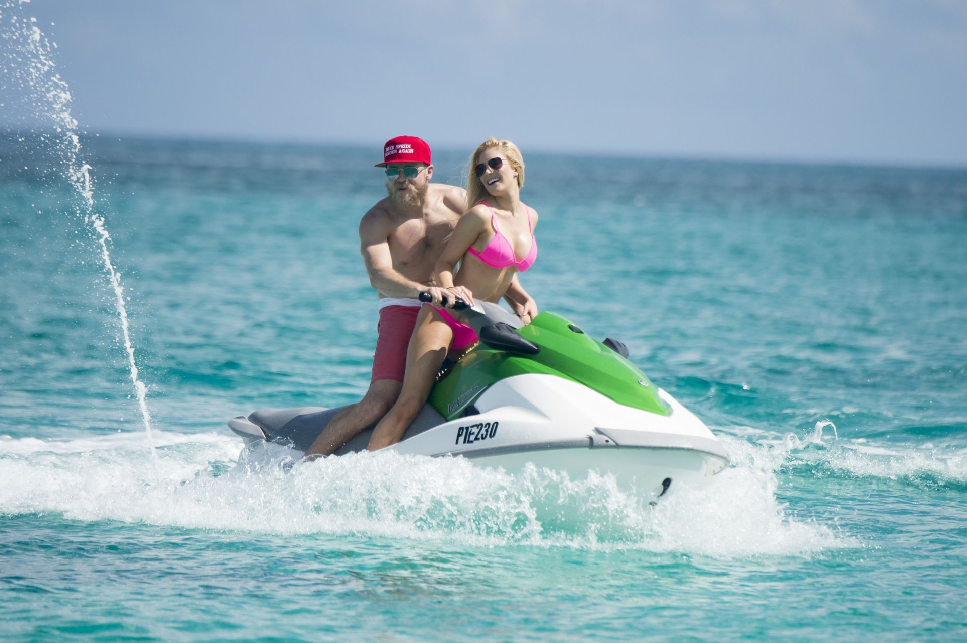 Heidi Montag andando de jet ski com seu homem em Nassau, Bahamas, 16/09/2016. Heidi Blair Pratt (nascida Montag) é uma personalidade da televisão americana, cantora, estilista e autora. Idade: 30 (15 de setembro de 1986).