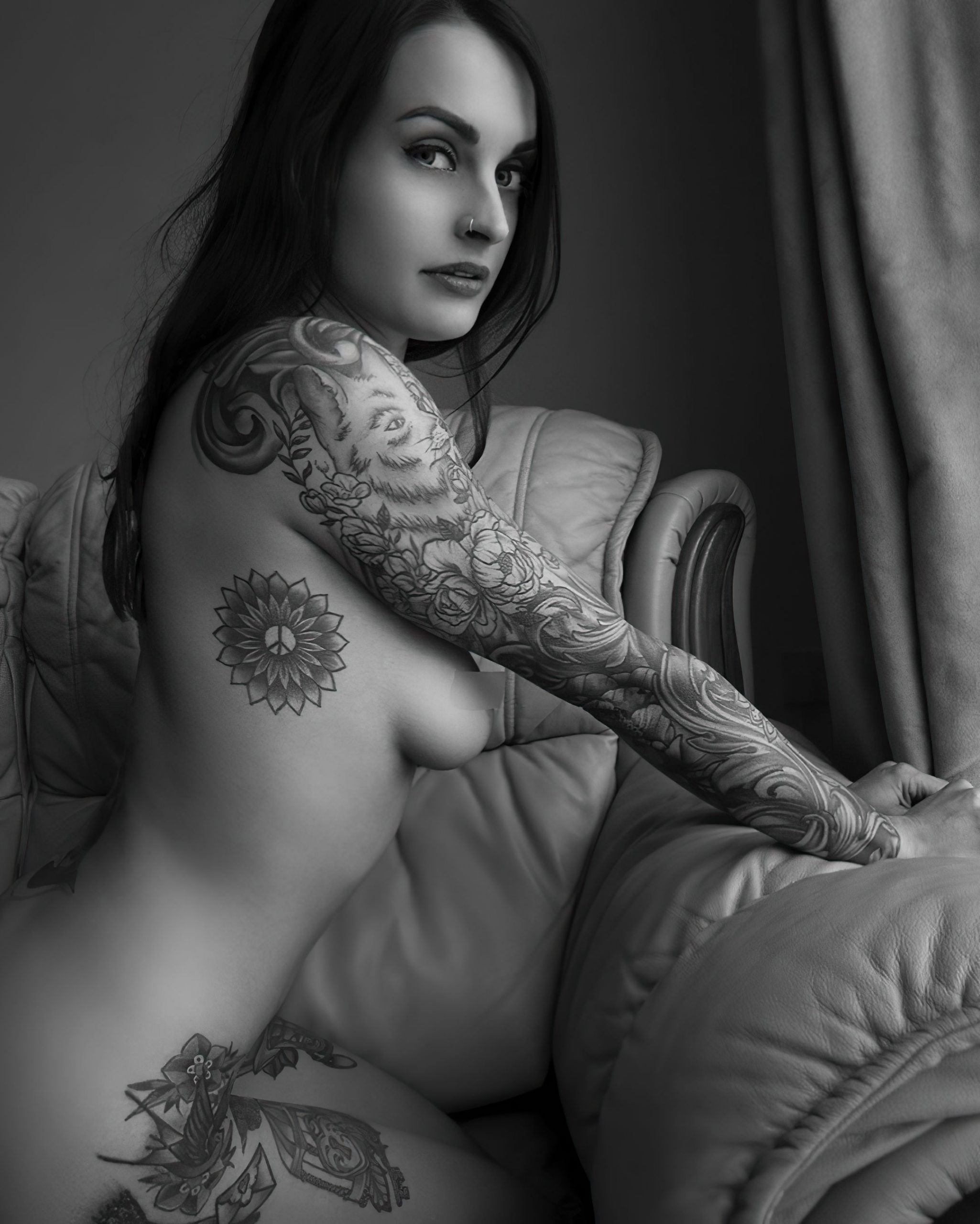 Modelo adulta atraente, Suicidegirl, Rainha dos Pés Hel Ray, mais conhecida como Helena Ray, apresenta sua nova coleção de fotos sexy e nuas. A garota tatuada posa para selfies semi-nuas e mostra seu corpo deslumbrante!