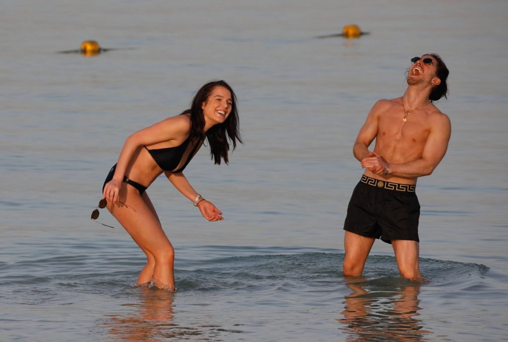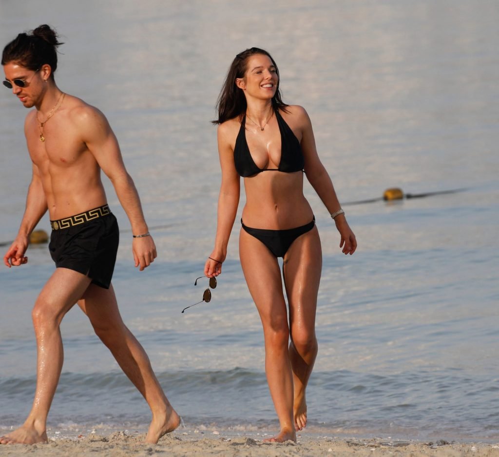 Helen Flanagan foi vista no Le Royal Meridien Beach Resort and Spa em Dubai (abril de 2019). A atriz/modelo britânica de 28 anos exibiu seu corpo sexy em um biquíni preto.