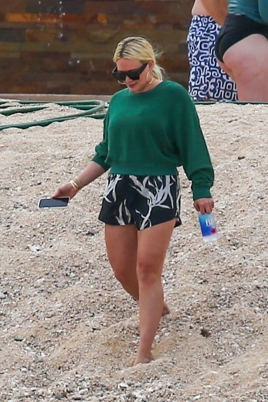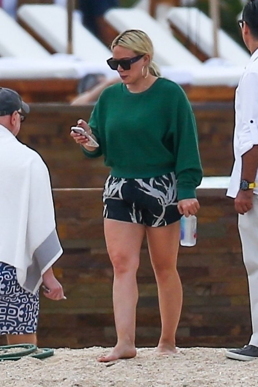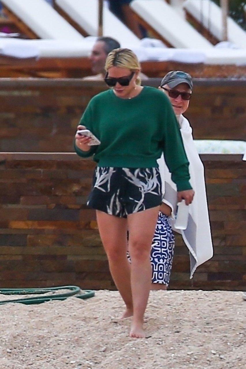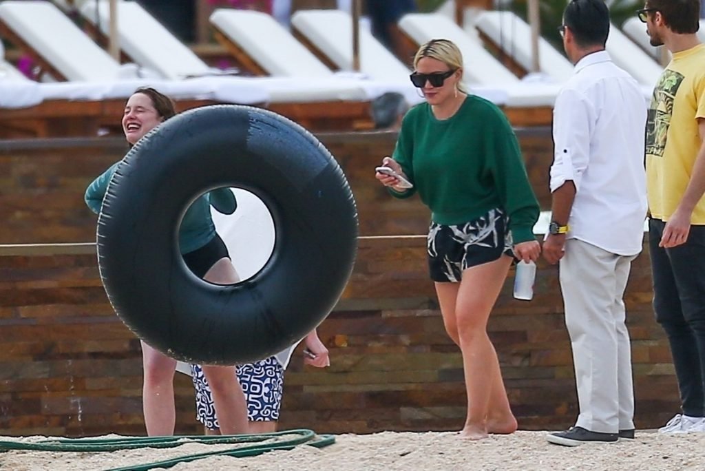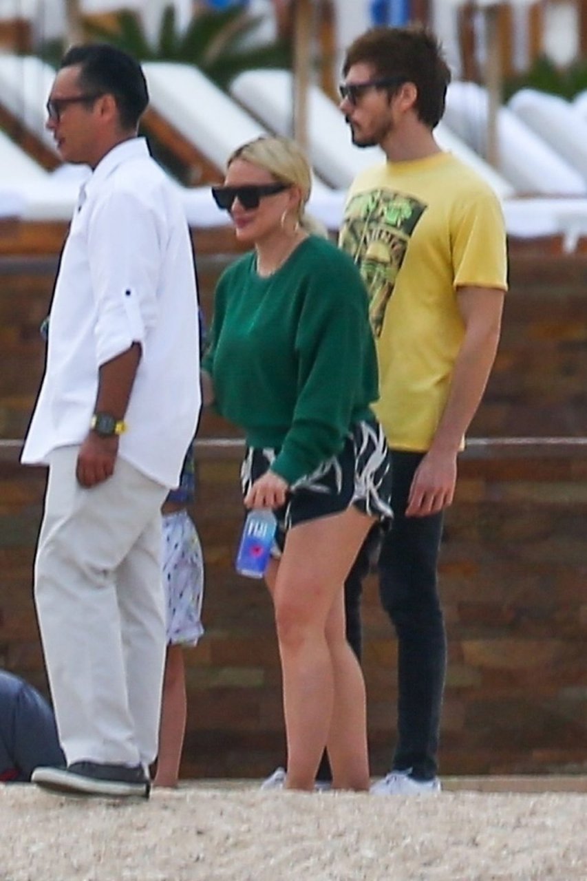 Novos pais Hilary Duff e Matthew Koma escapam do clima frio de Los Angeles para umas férias na praia sob o sol tropical de Cabo San Lucas, México, 31/12/2018. O casal levou o filho de Hilary, Luca, para se divertir no inverno deslizando em um tubo interno por um escorregador de areia, onde a mãe carinhosa Hilary tirou fotos da ação.