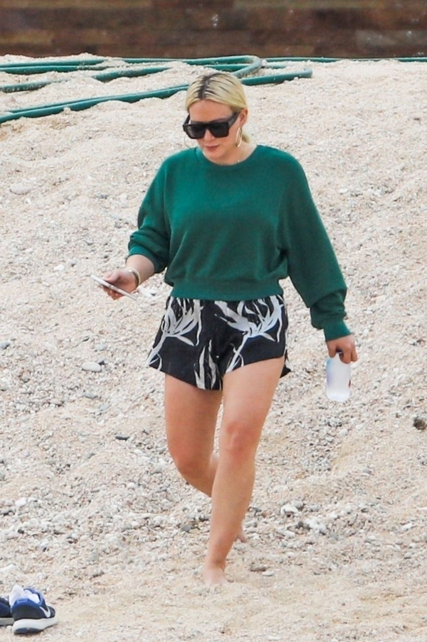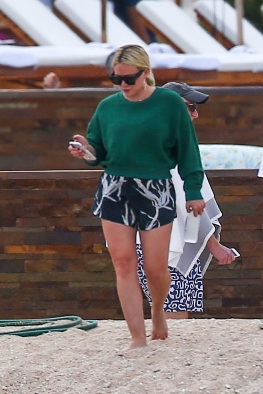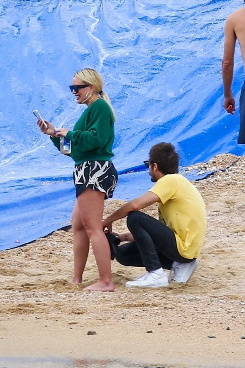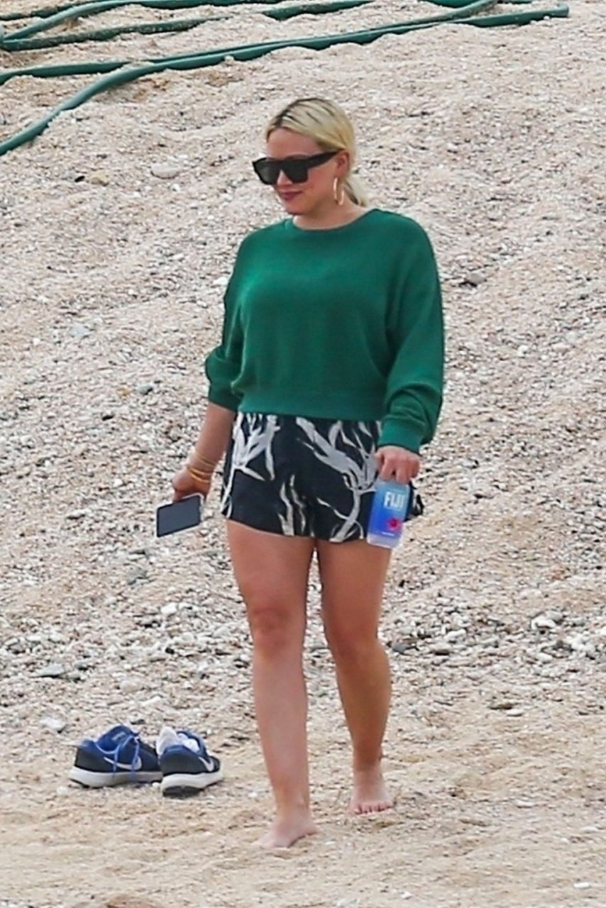 Novos pais Hilary Duff e Matthew Koma escapam do clima frio de Los Angeles para umas férias na praia sob o sol tropical de Cabo San Lucas, México, 31/12/2018. O casal levou o filho de Hilary, Luca, para se divertir no inverno deslizando em um tubo interno por um escorregador de areia, onde a mãe carinhosa Hilary tirou fotos da ação.