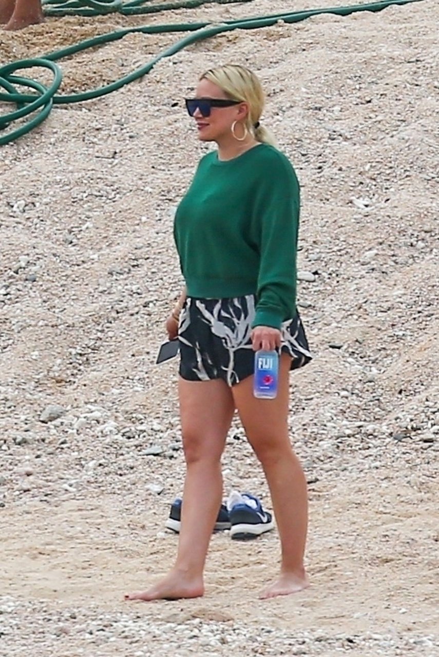 Novos pais Hilary Duff e Matthew Koma escapam do clima frio de Los Angeles para umas férias na praia sob o sol tropical de Cabo San Lucas, México, 31/12/2018. O casal levou o filho de Hilary, Luca, para se divertir no inverno deslizando em um tubo interno por um escorregador de areia, onde a mãe carinhosa Hilary tirou fotos da ação.