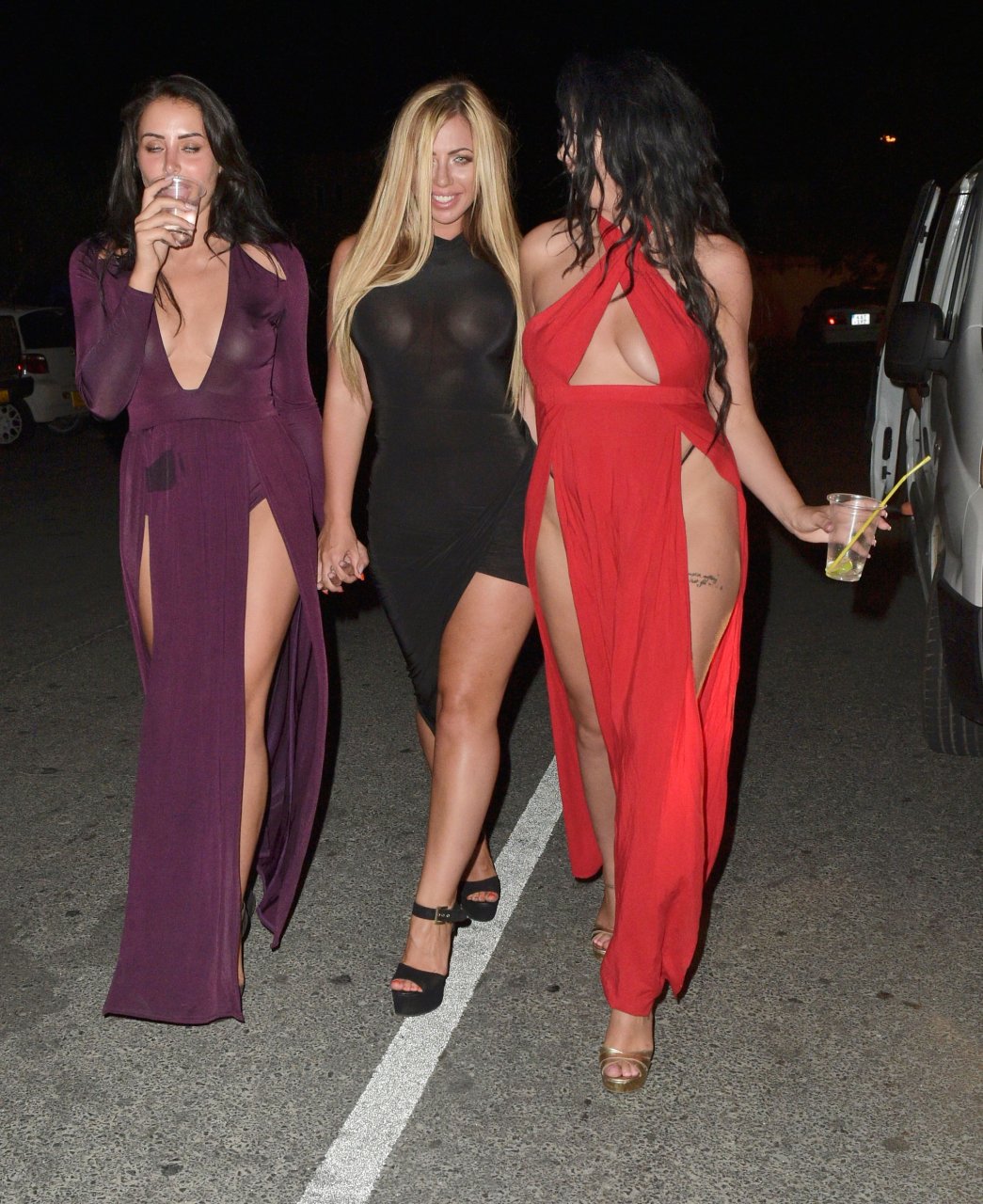 Holly Hagan, Chloe Ferry e Marnie Simpson exibem seus amplos atributos em conjuntos ousados durante noites em Ayia Napa, Chipre, 07/08/2016 e 07/10/2016. Mulheres atrevidas…