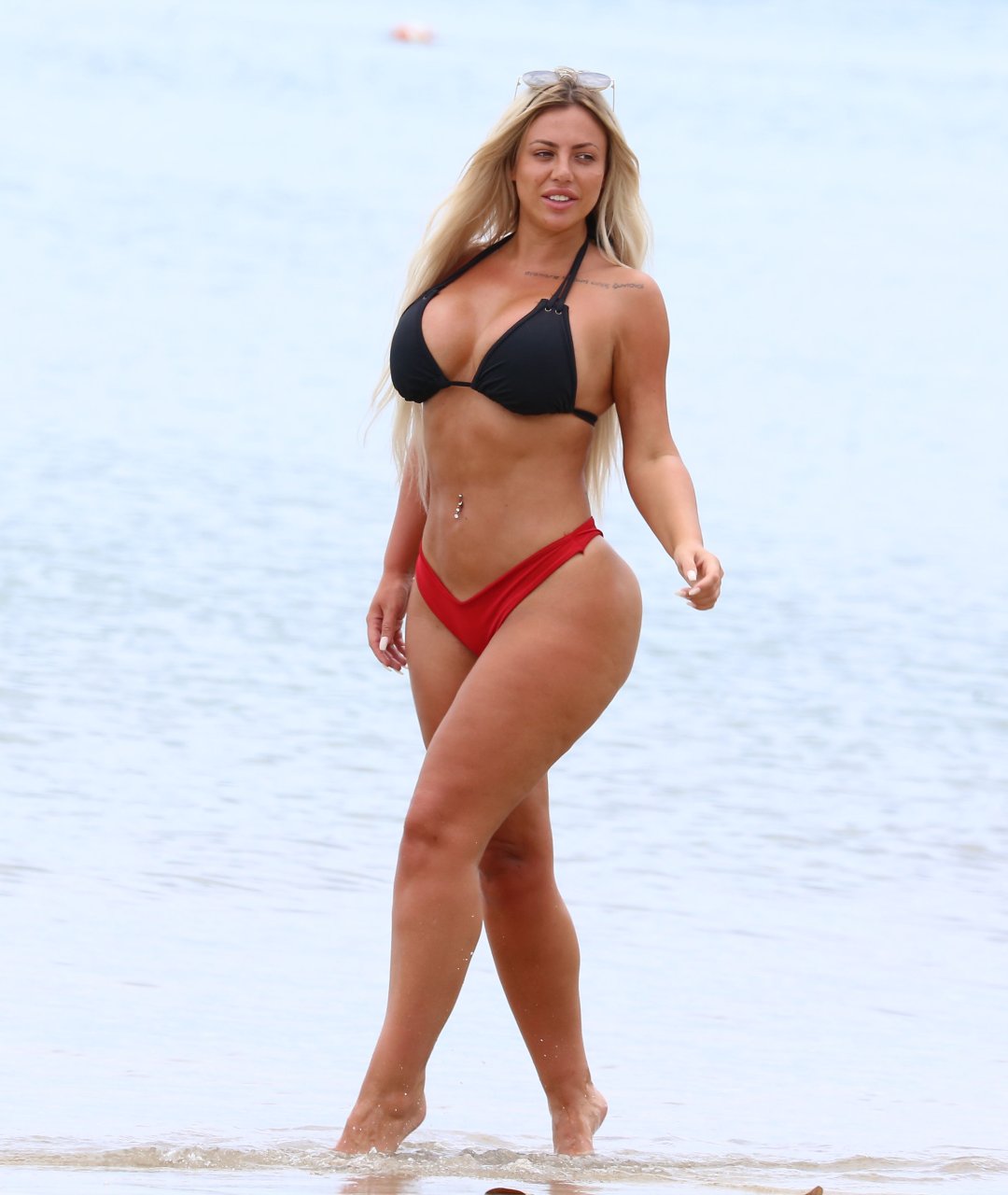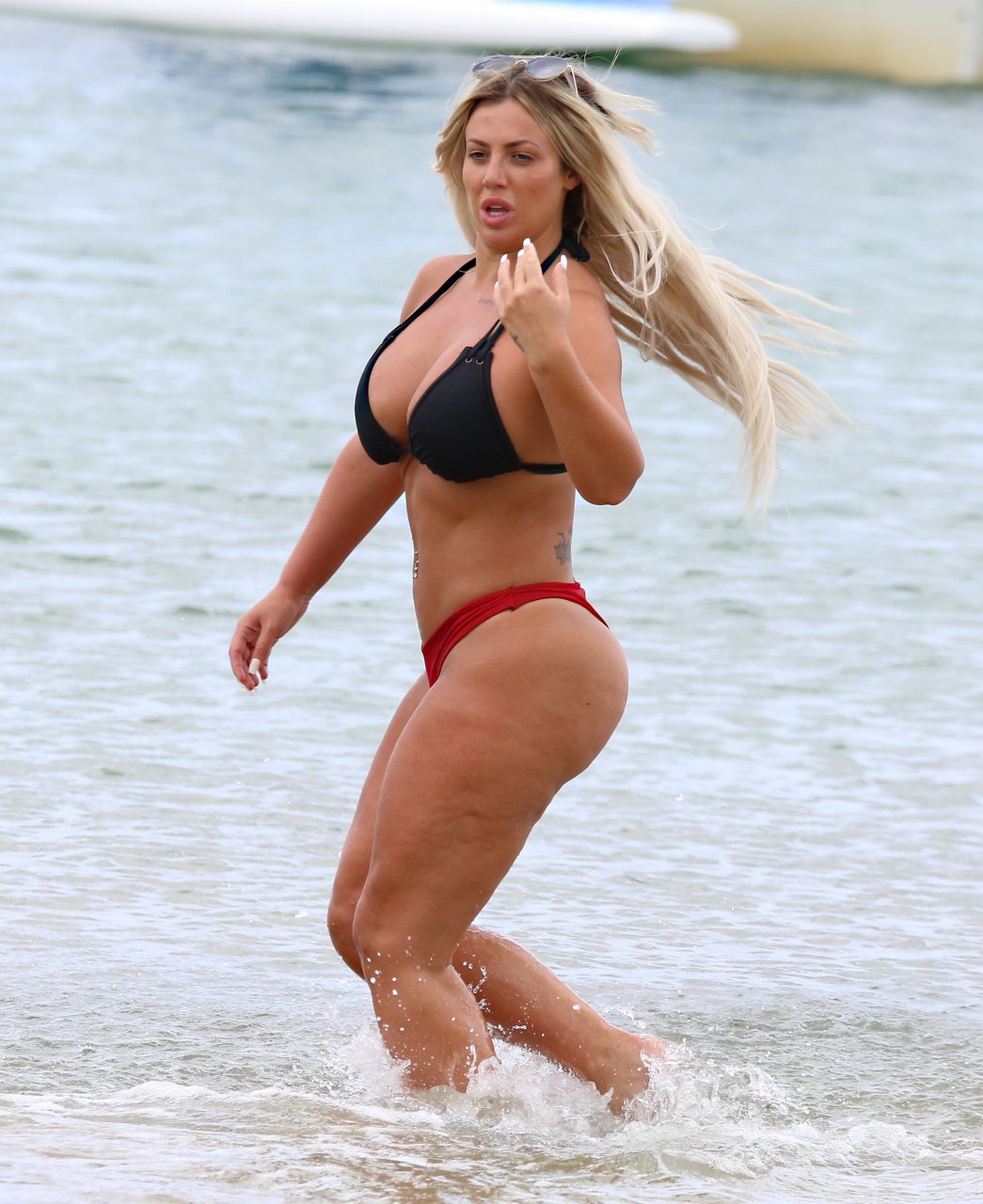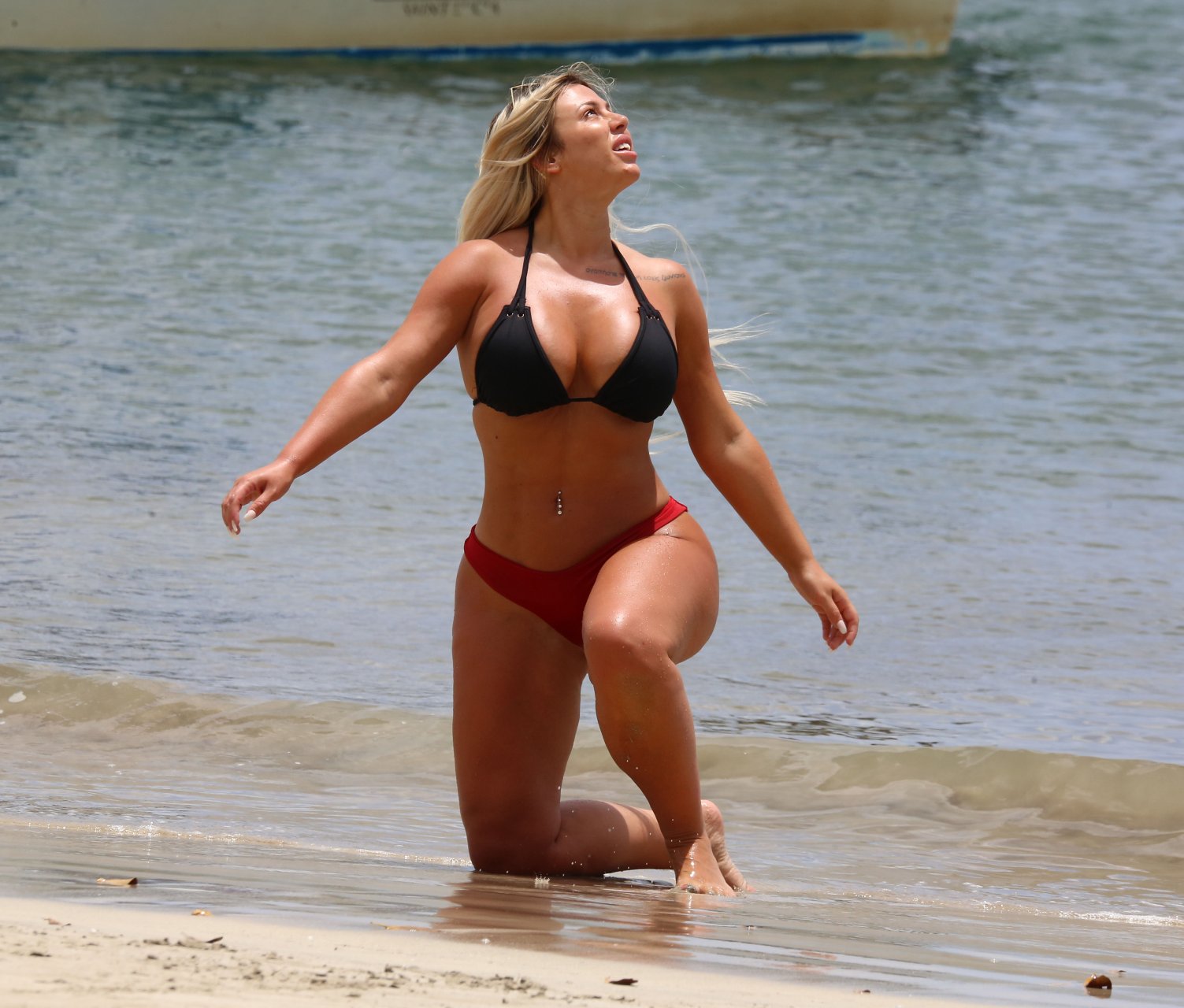 A estrela do MTV Geordie Shore Holly Hagan é vista na praia durante as férias em Santa Lúcia. A loira curvilínea exibiu seus grandes seios e bumbum com celulite para os paparazzi. Holly Hagan é uma estrela de reality show e modelo inglesa de 25 anos.