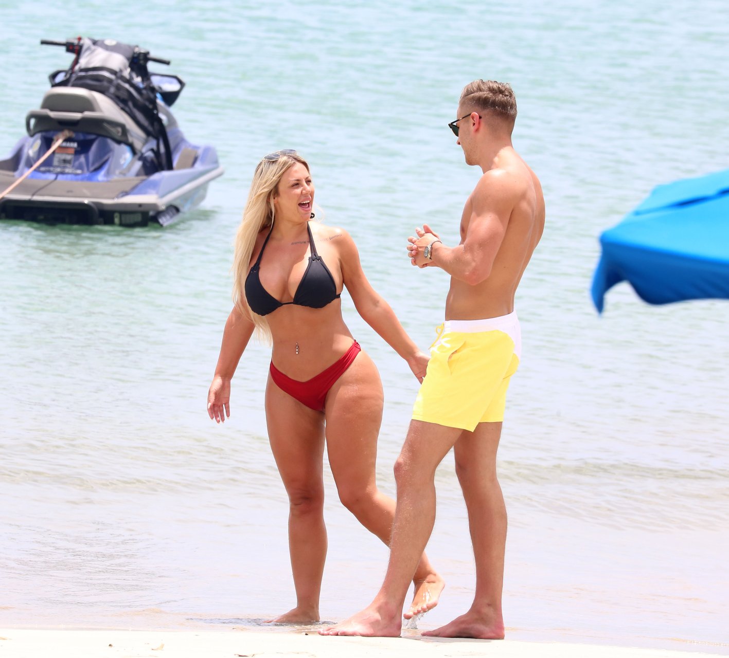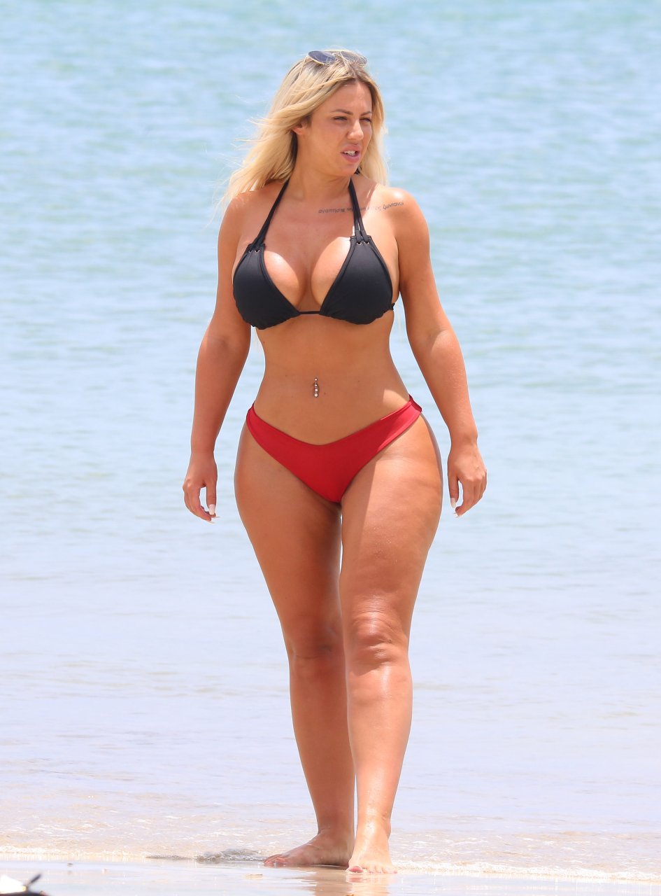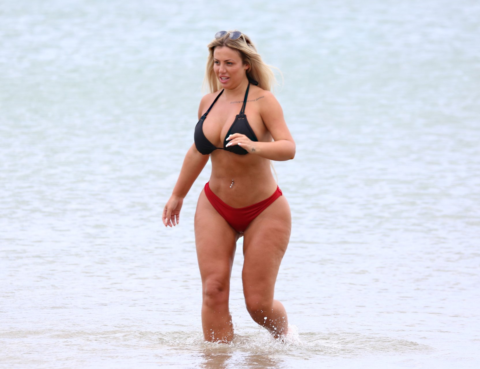 A estrela do MTV Geordie Shore Holly Hagan é vista na praia durante as férias em Santa Lúcia. A loira curvilínea exibiu seus grandes seios e bumbum com celulite para os paparazzi. Holly Hagan é uma estrela de reality show e modelo inglesa de 25 anos.