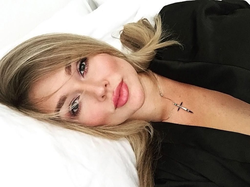 Besides the nudes and many topless pics where cute Hunter McGrady showed us her curves, we have her bikini, feet, and selfie pics. This blondie looks excellent, despite all the fat she carries everywhere around. We like her huge tits, and that’s all!