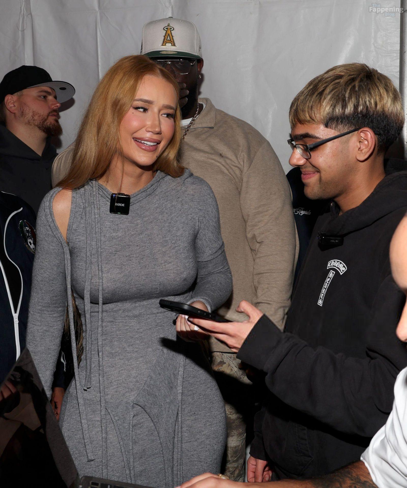 Iggy Azalea apareceu sem sutiã no THE CAMP com um vestido cinza transparente, mostrando seu enorme bumbum e mamilos visíveis. Confira a galeria.