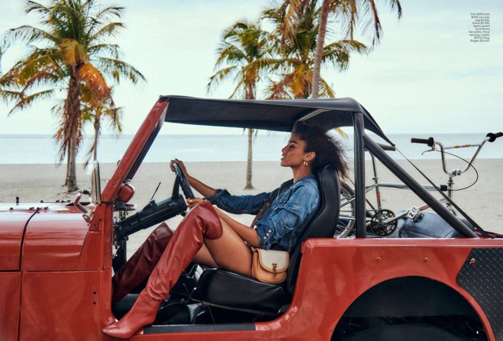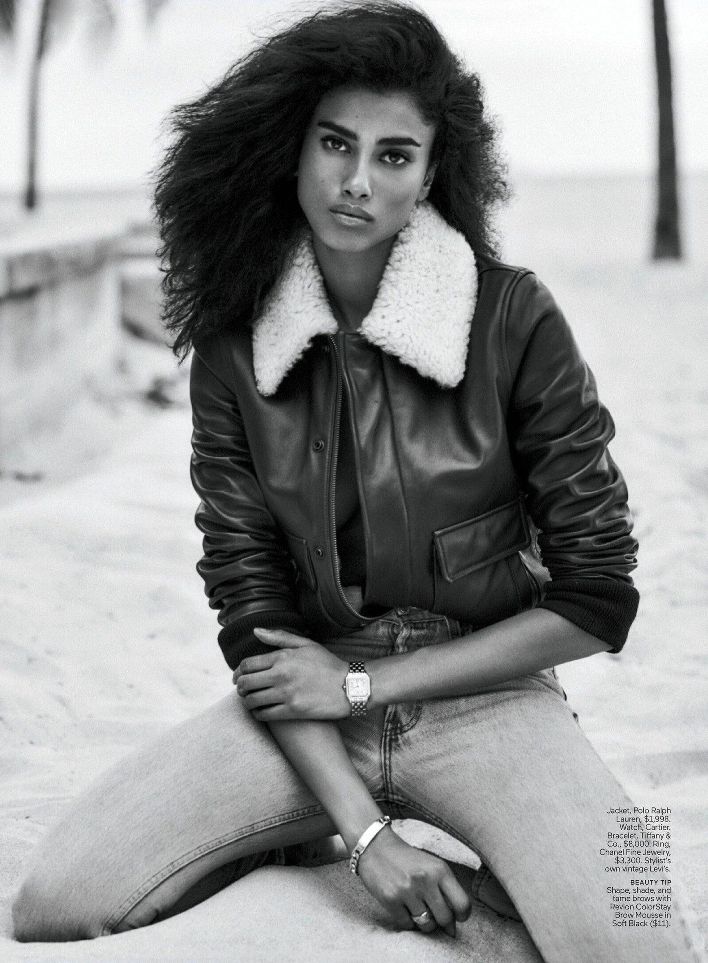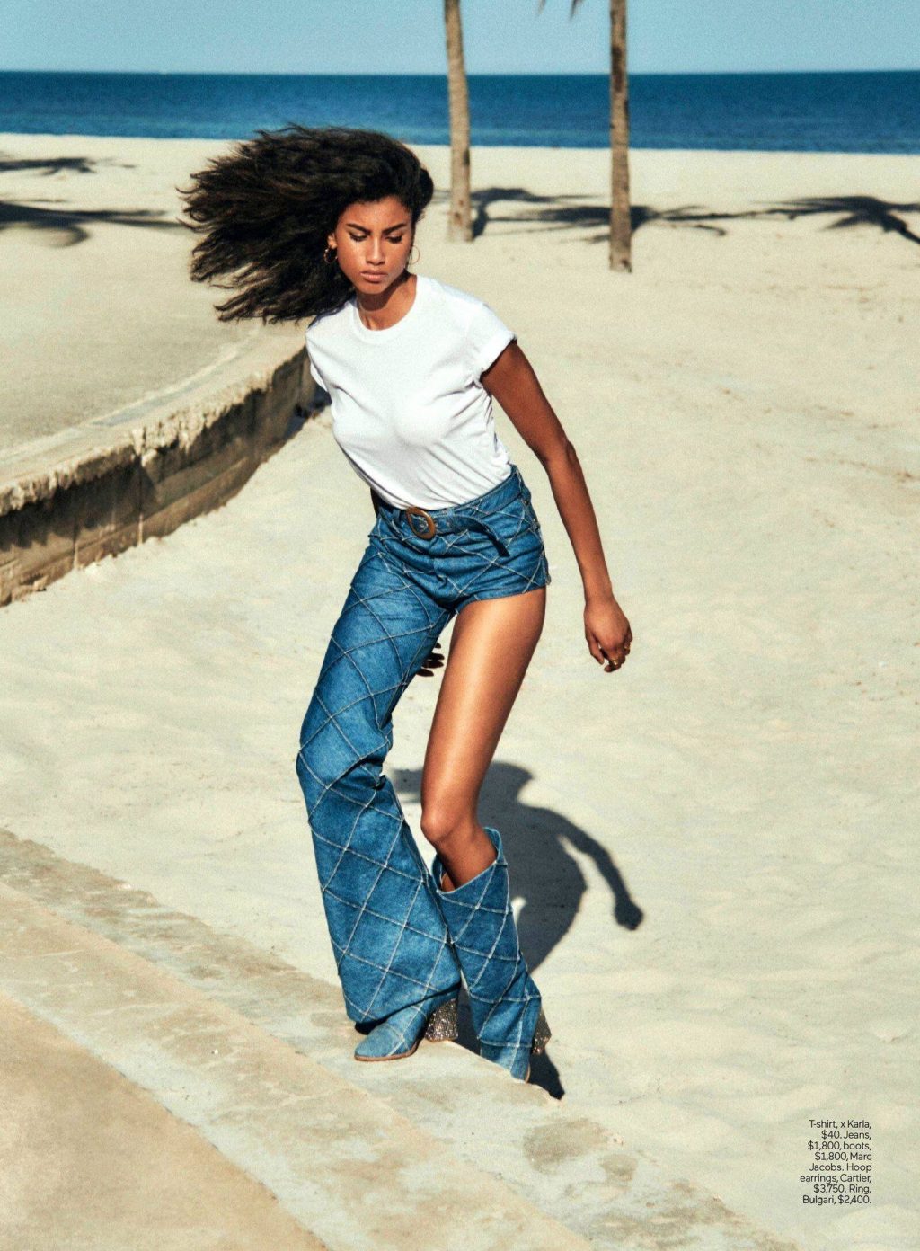 A modelo holandesa de origem egípcia e marroquina Imaan Hammam exibe sua figura sexy, pernas esbeltas e um pouco de decote enquanto posa para um ensaio fotográfico deslumbrante para a edição de maio de 2020 da revista Elle.