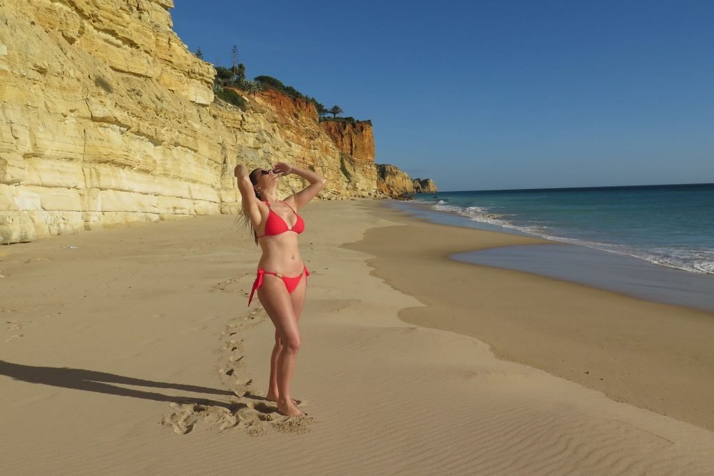 Imogen Thomas colhe os frutos do seu trabalho ao exibir seu incrível corpo de biquíni em um biquíni vermelho Chasing Summer após participar de uma semana exaustiva de fitness e dieta no Prestige Bootcamp em Portugal, 25/01/2019.